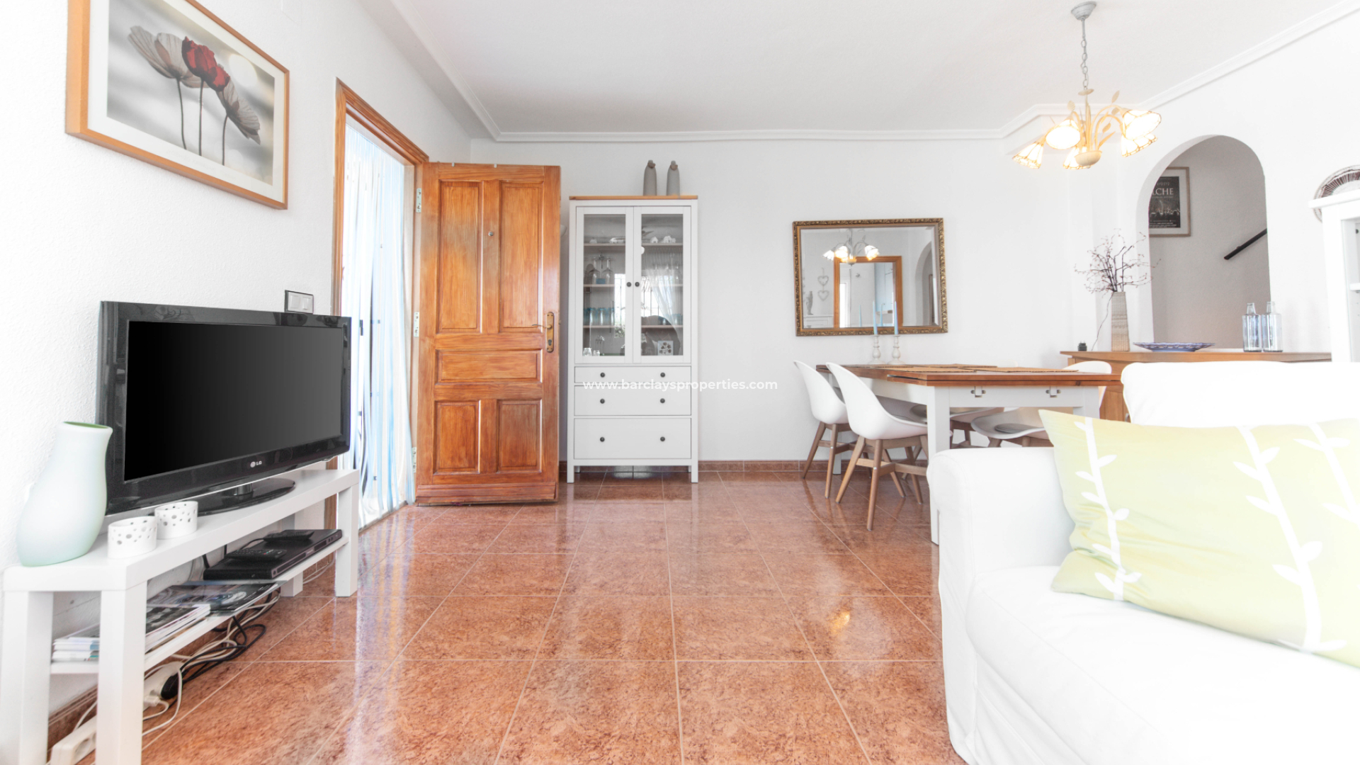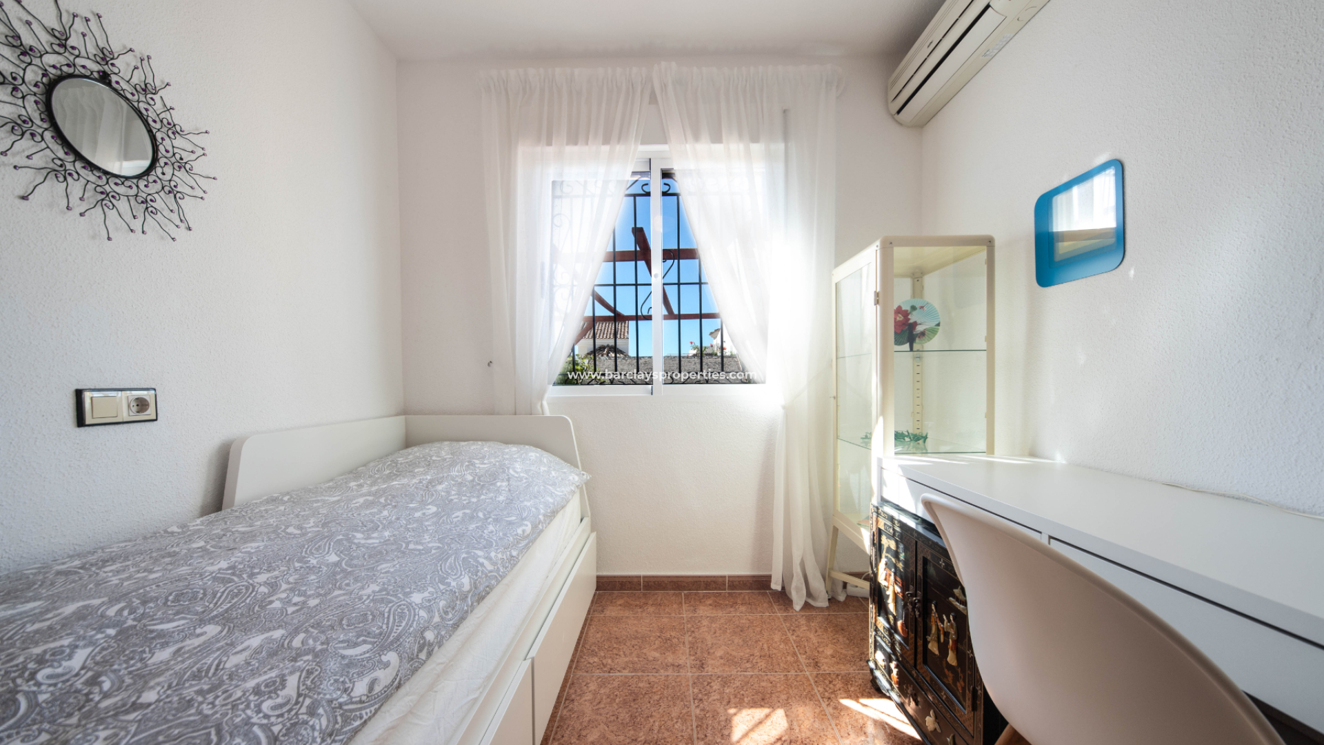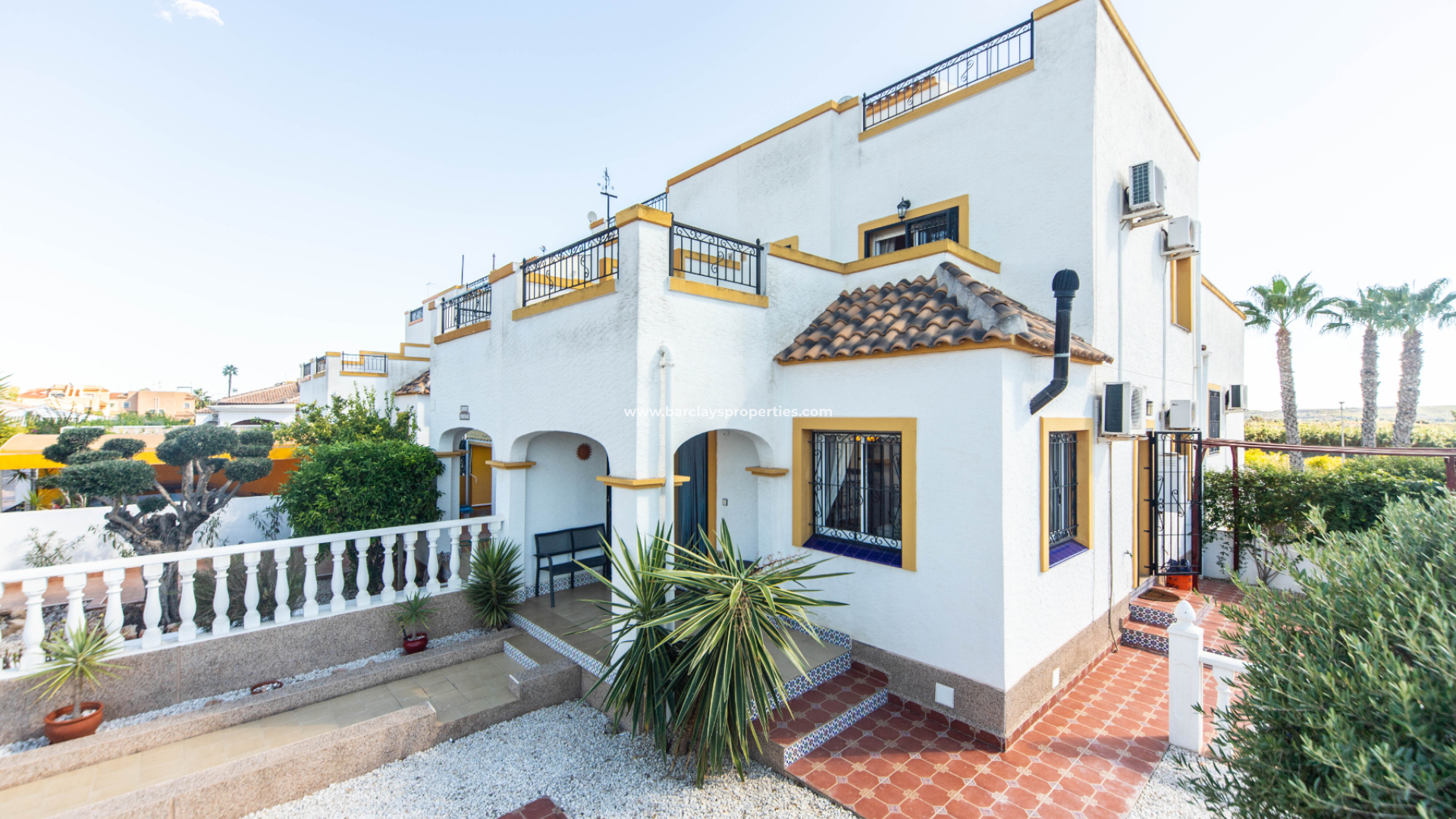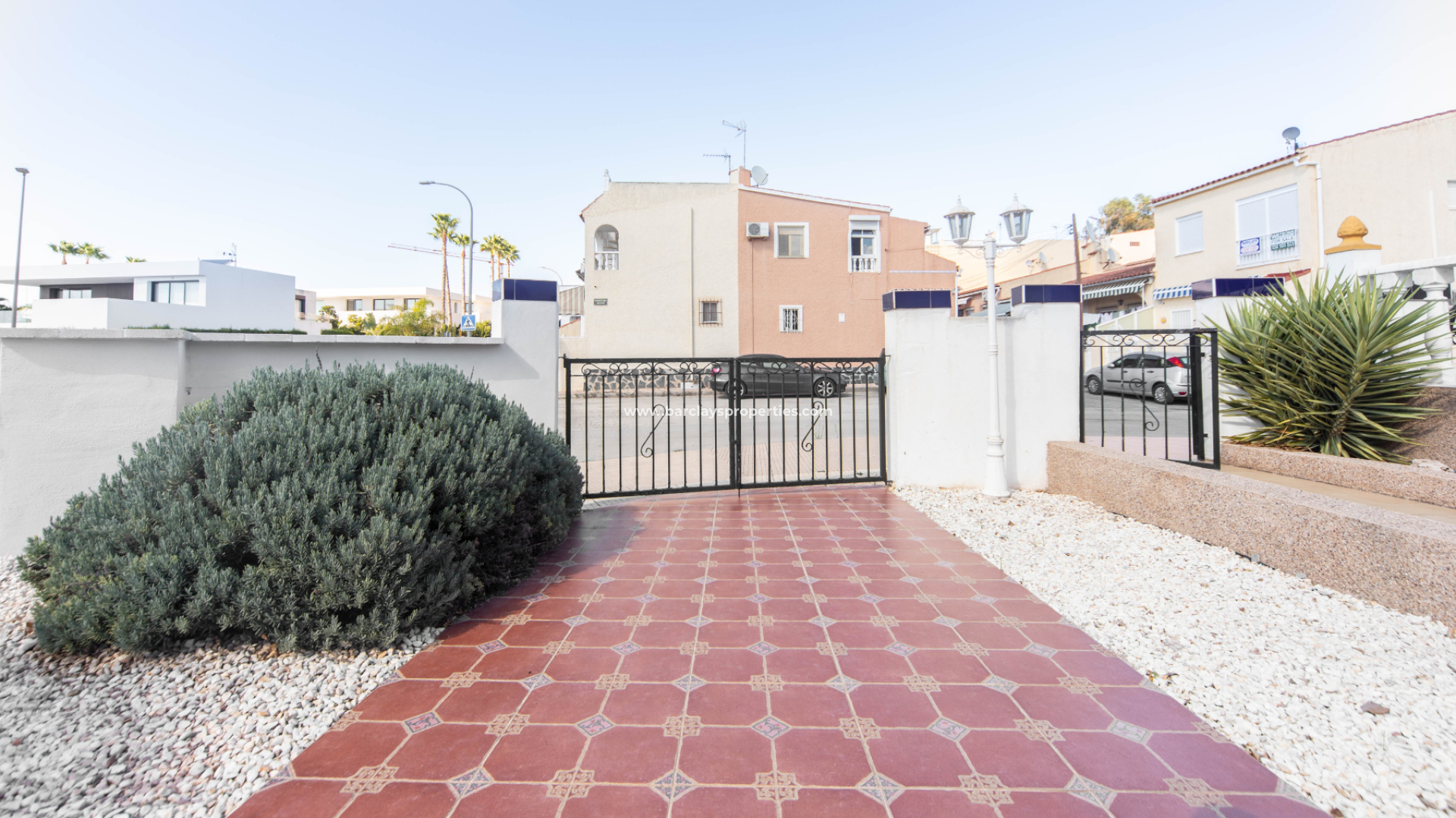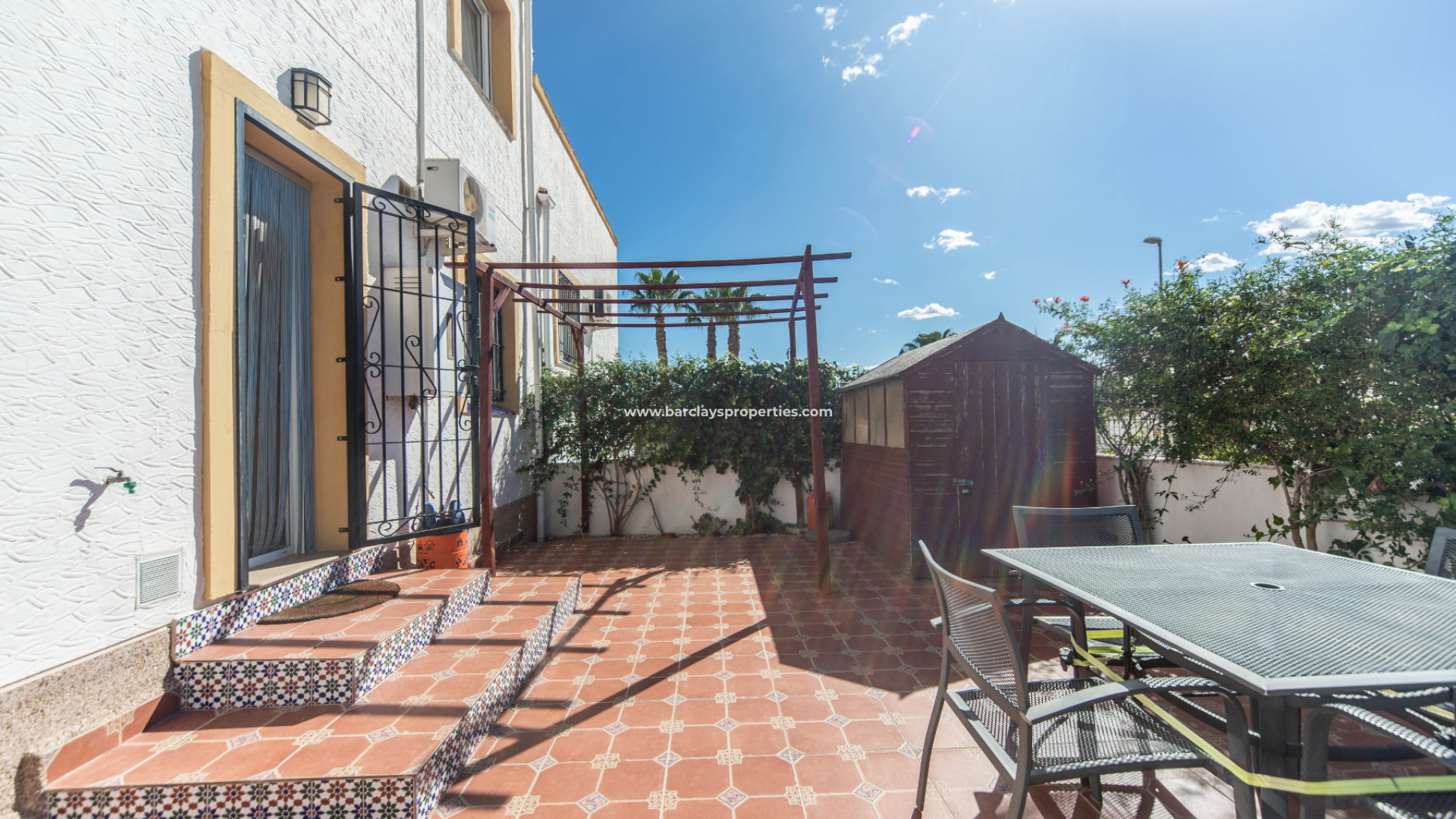 Ubicada en una zona tranquila de la Urbanización La Marina en una espaciosa parcela de esquina de 96 m², esta villa cuádruple, modelo “Isabel”, bellamente mantenida, ofrece 3 dormitorios, 2 baños y 72 m² de superficie construida en dos niveles. La propiedad forma parte de una comunidad privada ➡️ con acceso a una hermosa piscina comunitaria y zonas verdes, a la vez que ofrece espacio para construir una piscina privada si se desea. El exterior cuenta con aparcamiento fuera de la carretera, un cobertizo de jardín y amplias terrazas, incluyendo ➡️ un solárium privado en la azotea con impresionantes vistas al campo y a la montaña. En el interior, la vivienda se entrega ➡️ totalmente amueblada e incluye una cocina independiente equipada, aire acondicionado en toda la casa, ventiladores de techo, armarios empotrados y electrodomésticos. La sala de estar cuenta con una estufa de leña y conduce a un porche delantero cubierto, mientras que el dormitorio principal tiene acceso directo a una terraza. ➡️ Idealmente ubicada a solo 750 metros de los servicios, a 3 km de la playa y a 25 km del aeropuerto de Alicante, esta propiedad es perfecta para vivir de forma permanente o como retiro vacacional.