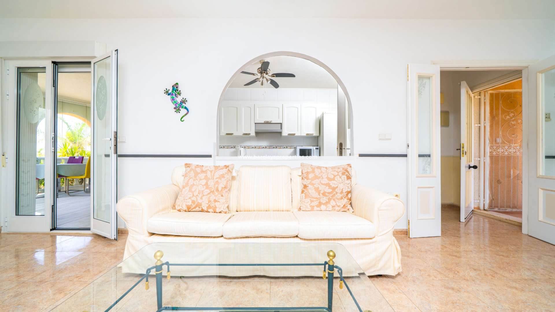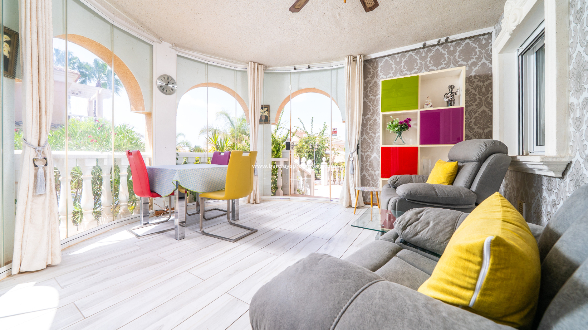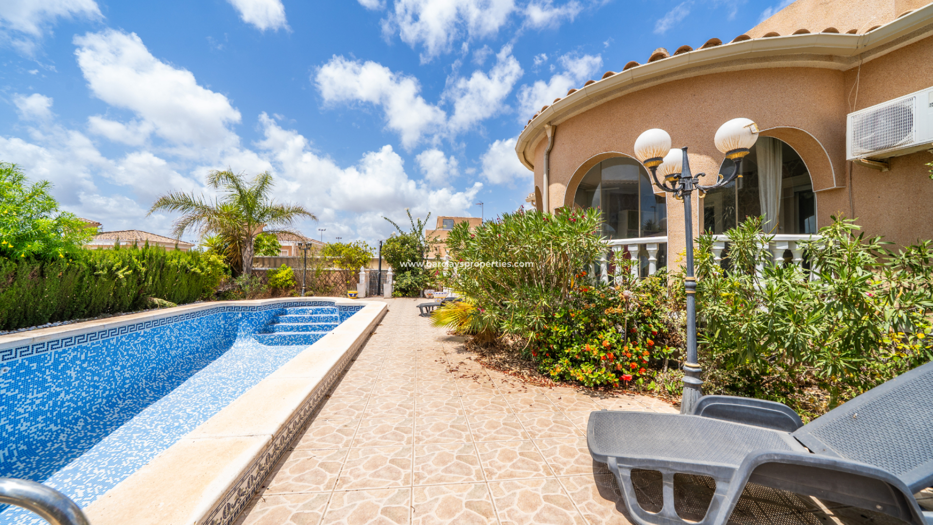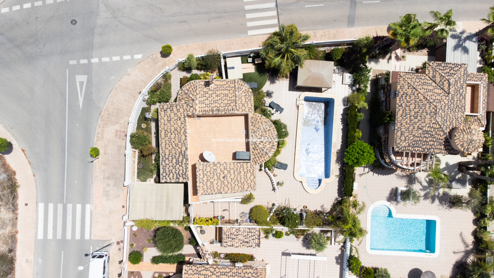 Nos complace presentar esta hermosa villa independiente en venta en la codiciada Urbanización La Marina. Esta espaciosa propiedad de ➡️ una sola planta se asienta sobre una generosa parcela de 503 m² y ofrece 156 m² de superficie habitable construida. La villa consta de tres dormitorios luminosos y cómodos de buen tamaño, dos baños (incluido uno en suite con ducha de pared a pared), ➡️ una cocina semiabierta totalmente equipada con electrodomésticos, y un acogedor salón con acceso directo a una terraza acristalada cubierta que da a ➡️ la piscina privada de 35 m² y al jardín paisajístico.