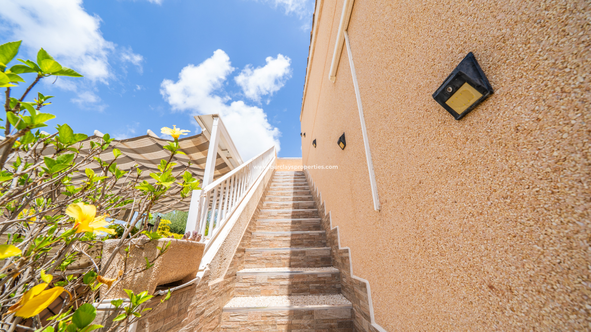 El jardín está consolidado con varios arbustos y plantas, algunos de los cuales están entrenados para crecer en bonitos arcos de celosía, proporcionando una hermosa variedad de colores para admirar. El espacio exterior incluye una zona de barbacoa, caseta de jardín, ducha exterior y una cochera privada, junto con un solárium en la azotea que ofrece vistas panorámicas del campo y las montañas. ¡Los afortunados propietarios tendrán mucho donde elegir, ya que hay muchos espacios soleados y sombreados para disfrutar de la vida al aire libre con esta fantástica villa!