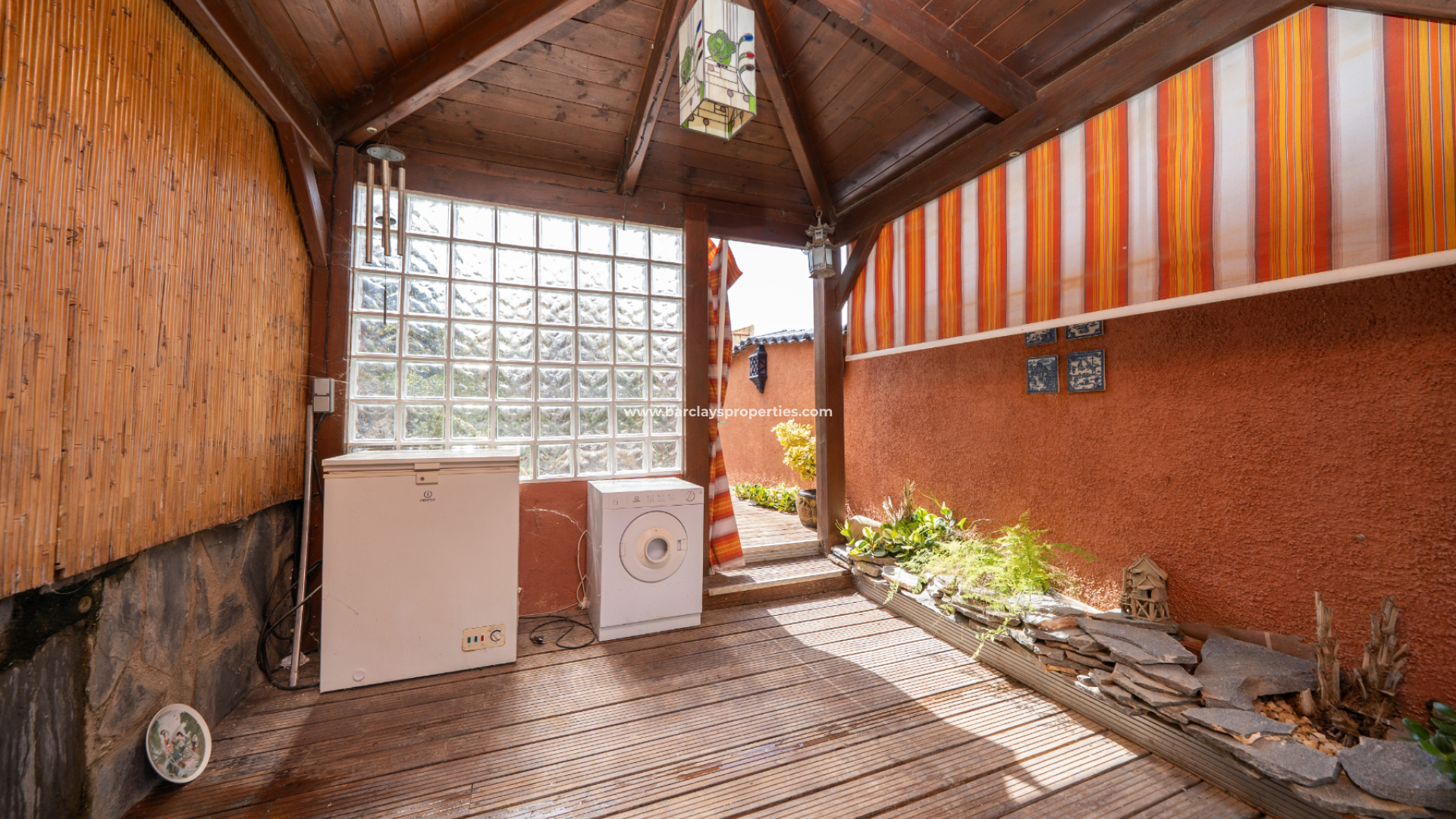 En el exterior, la propiedad ofrece un sereno jardín de estilo japonés y una espaciosa terraza trasera cubierta con ✅vistas abiertas a la zona verde y hacia las montañas de la Sierra de Callosa —un lugar perfecto para relajarse o disfrutar con invitados mientras se contempla el entorno natural. También cuenta con una ducha exterior decorada con bloques de vidrio y una zona de lavadero cubierta.Además, esta ✅propiedad ofrece la posibilidad de instalar una piscina privada si así lo desea el nuevo propietario.