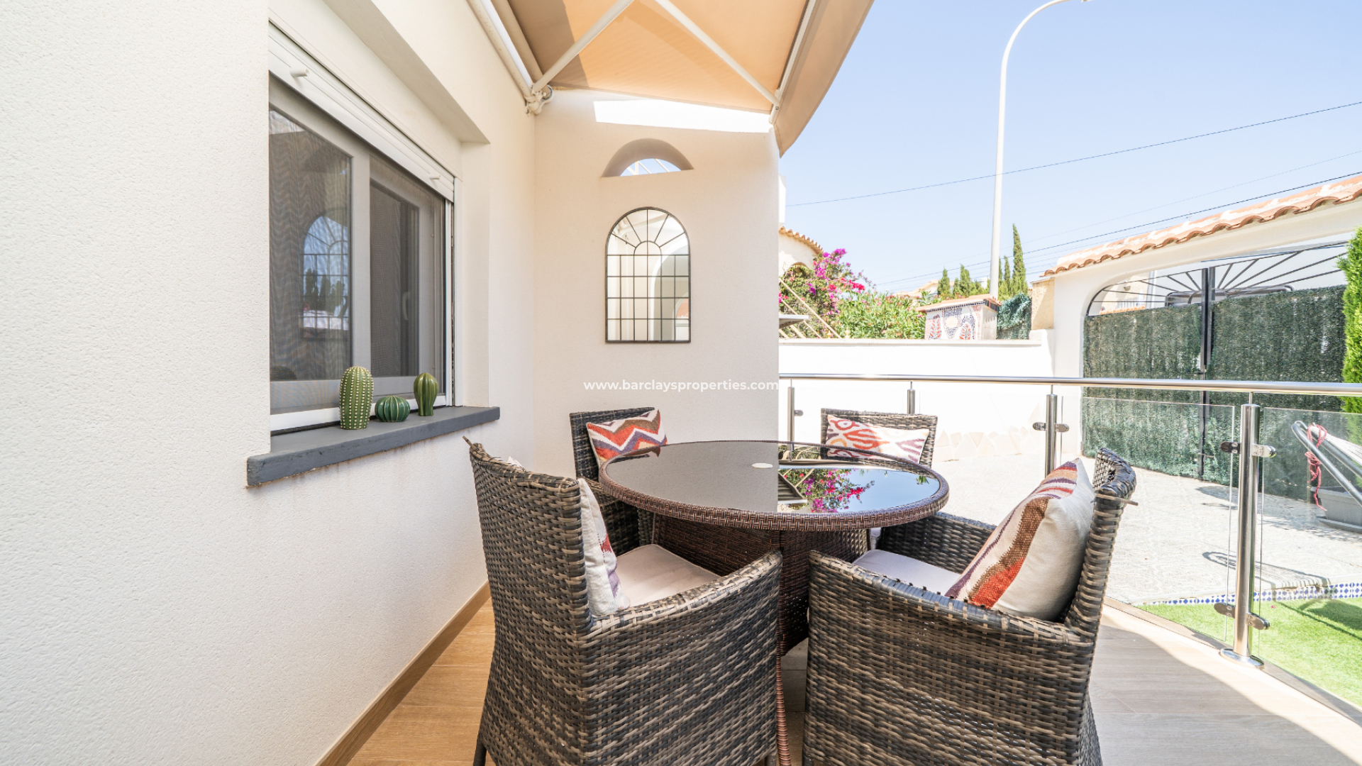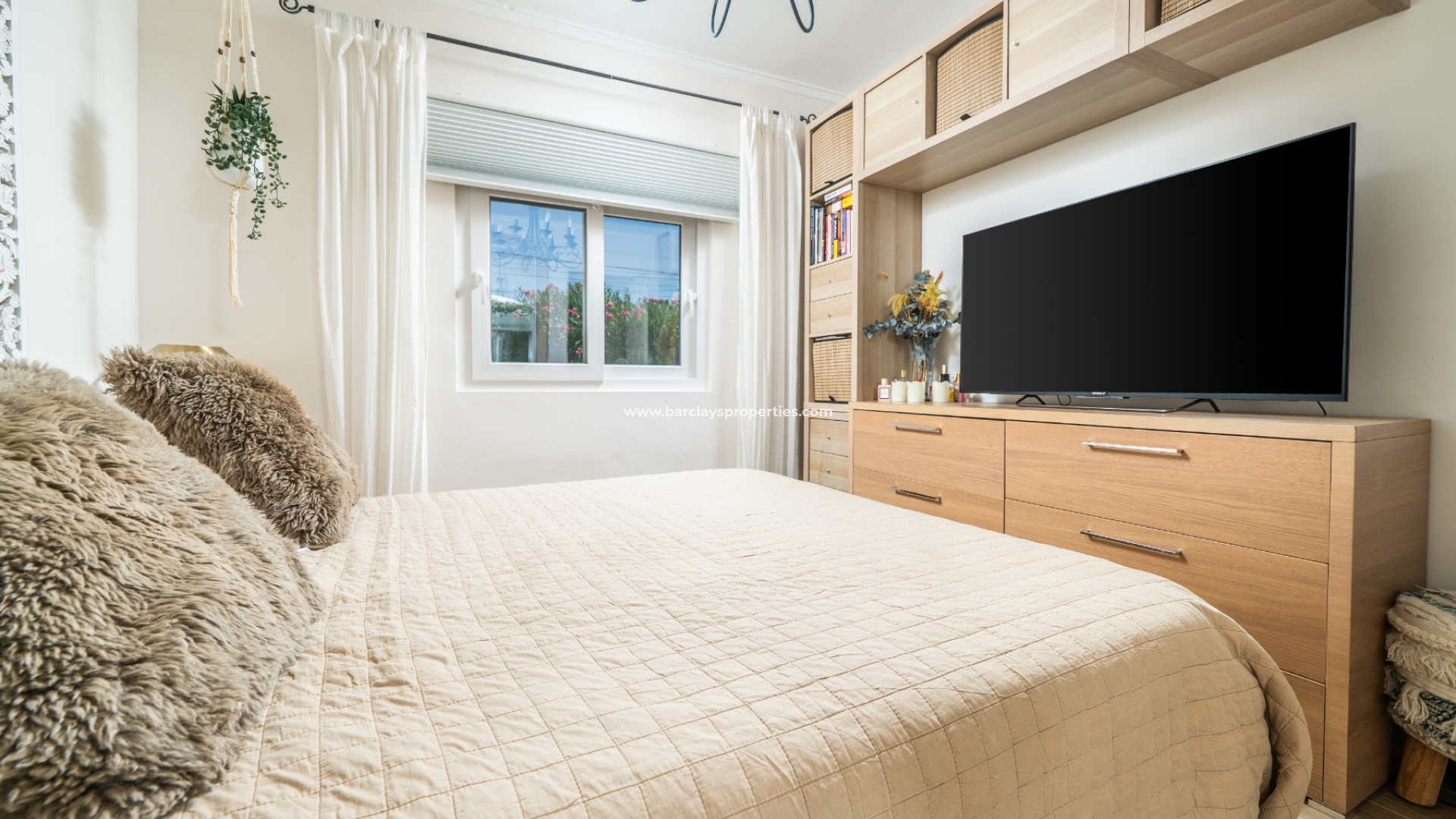 En la parte trasera, un balcón le permite disfrutar de hermosas vistas abiertas a través del campo y hacia la cercana ciudad de Guardamar del Segura.