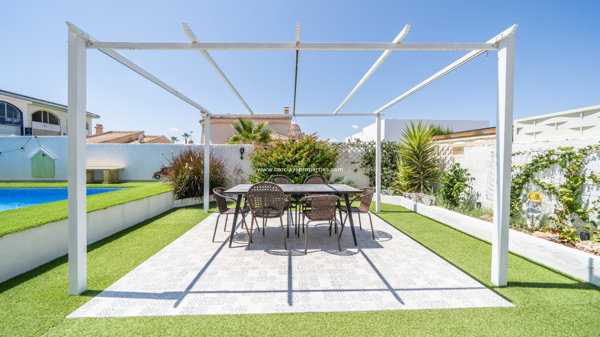Esta encantadora villa independiente, modelo “Villagolf II”, está ubicada en la popular urbanización de Rojales Hill, a pocos pasos de una variedad de bares, cafeterías y restaurantes, y a poca distancia a pie del centro de Benijófar, donde le esperan todas las comodidades. La propiedad combina confort, conveniencia y disfrute al aire libre, por lo que es ideal para vivir todo el año o como casa de vacaciones.