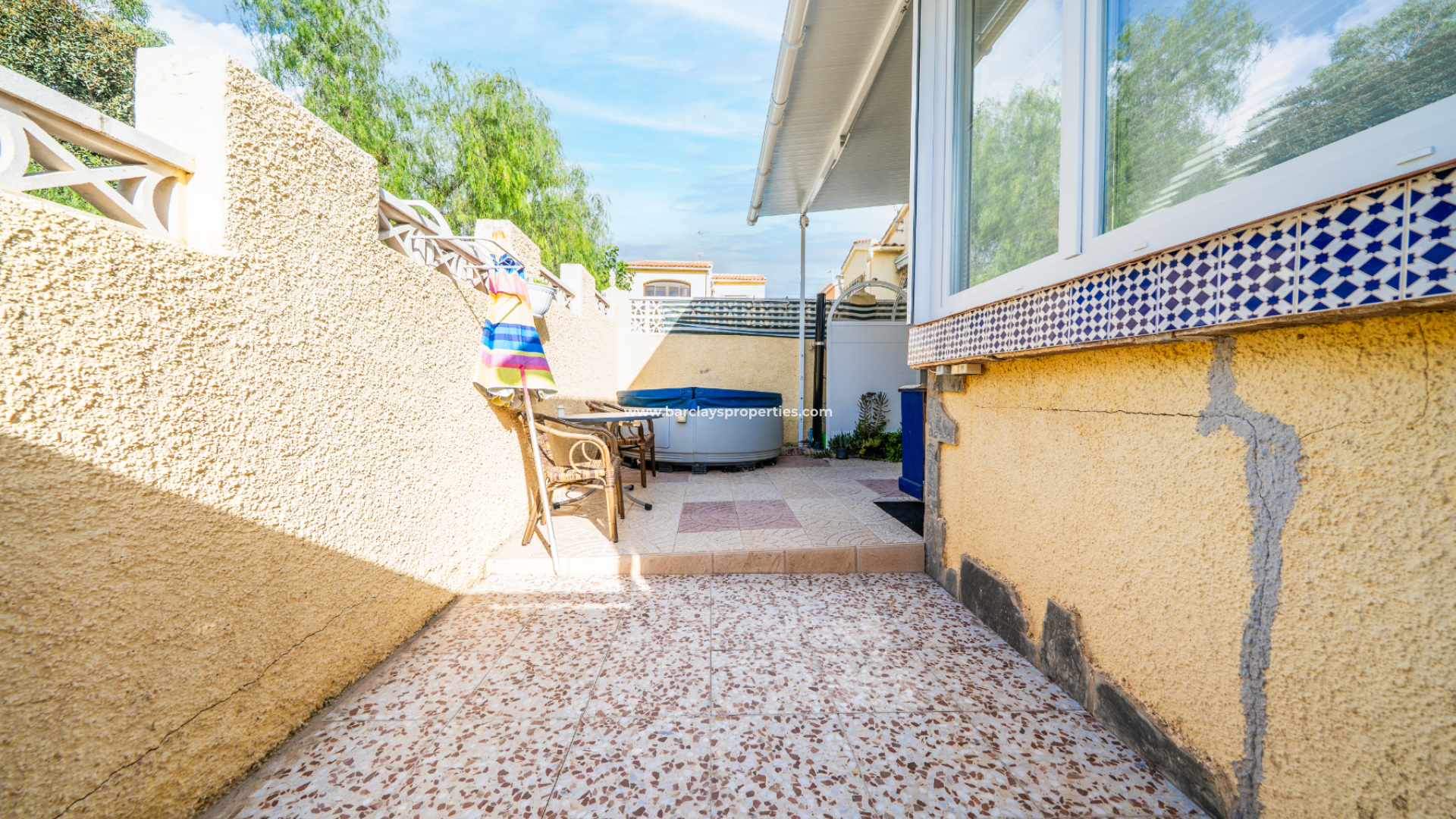 Este hermoso chalet independiente, modelo “Rosa”, está escondido en un tranquilo cul-de-sac, ofreciendo tanto privacidad como conveniencia. A pocos pasos de tiendas y servicios locales, la propiedad se encuentra a solo cinco minutos en coche de las doradas arenas de "Playas de La Marina", a quince minutos del campo de golf más cercano y a veinticinco minutos del aeropuerto de Alicante.