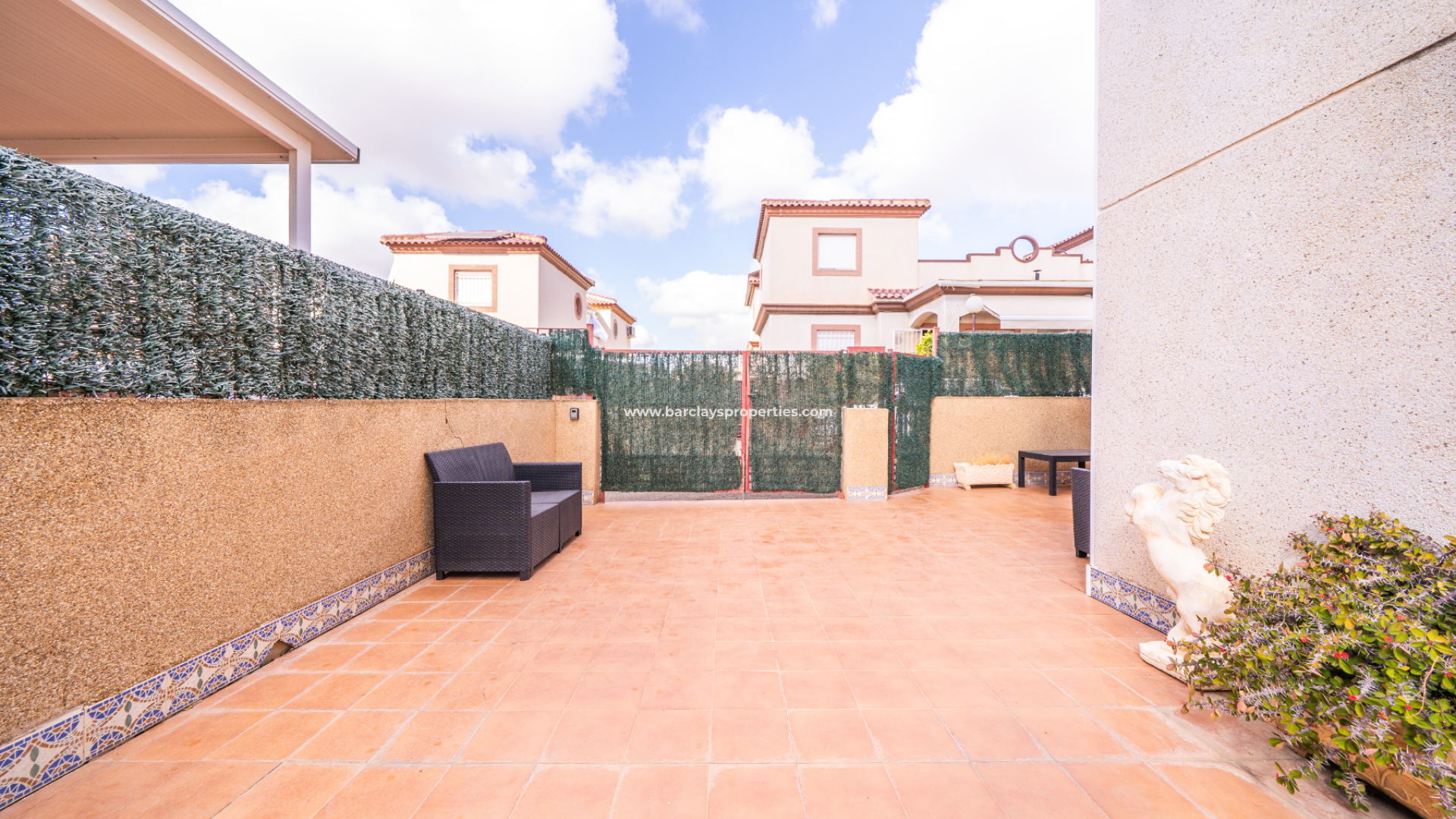 Presentamos este encantador hogar estilo cuádruple, modelo "Elena", situado en una zona tranquila pero conveniente de la urbanización con ➡️ acceso a una piscina comunitaria muy bien cuidada. La propiedad está a pocos pasos de una popular zona comercial que ofrece una amplia selección de bares, restaurantes, supermercados, tiendas y más. Las playas de arena dorada de La Marina y El Pinet están a solo cinco minutos en coche, mientras que el aeropuerto de Alicante-Elche se puede alcanzar en solo veinte minutos.