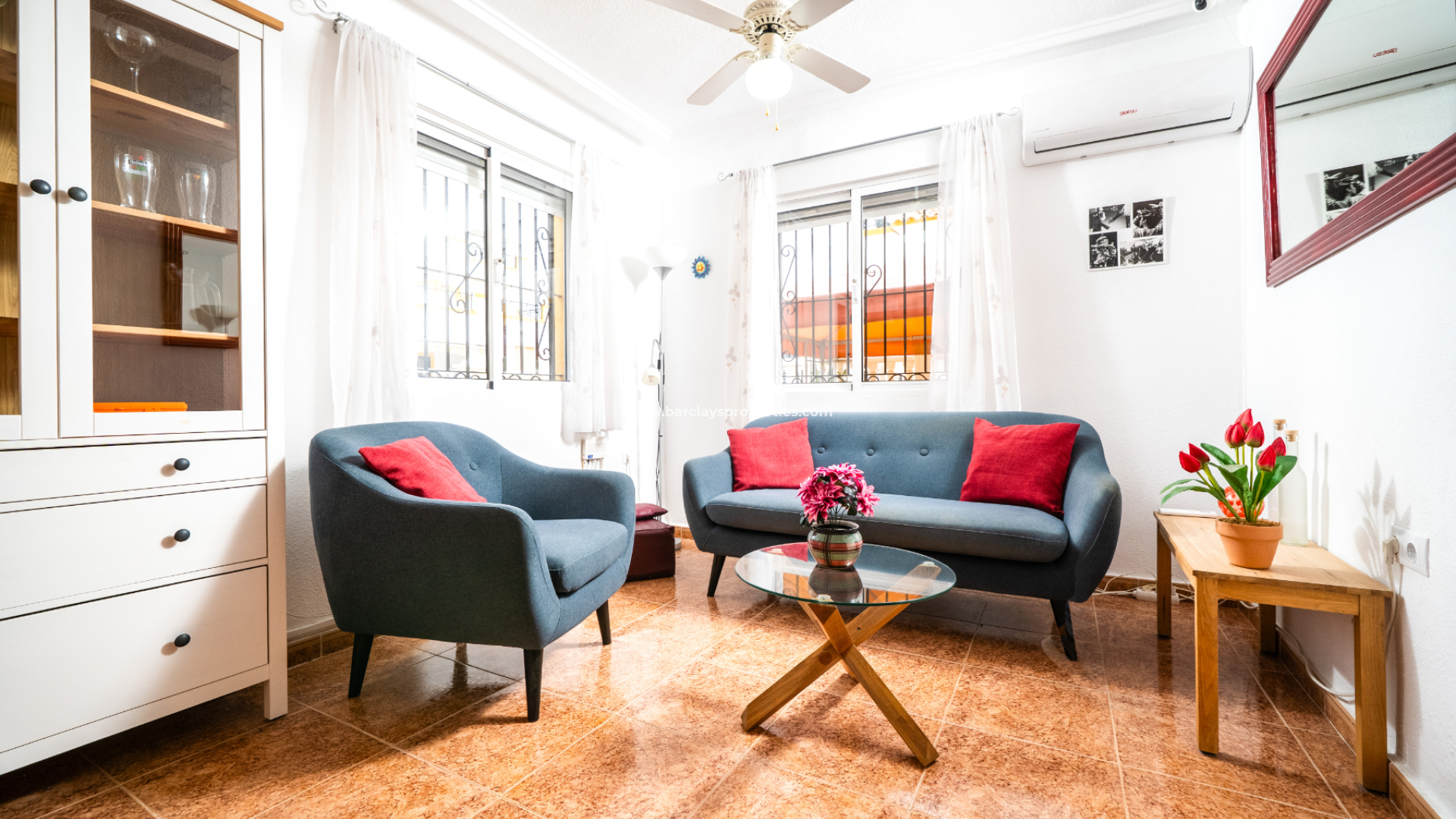 Este quad completamente amueblado en La Marina cuenta con 3 dormitorios y 2 baños distribuidos en 83 m² de espacio habitable sobre una parcela de 72 m². Con una cocina renovada, aire acondicionado, ventanas de doble acristalamiento, ventiladores de techo y electrodomésticos incluidos, la propiedad también ofrece un solárium en la azotea, una zona de barbacoa y acceso a una piscina comunitaria. Situada a solo 3 km de la playa, 25 km del aeropuerto, 10 km de campos de golf cercanos y a solo 150 metros de servicios locales, ofrece hermosas vistas y un entorno tranquilo, además de un excelente potencial de alquiler.