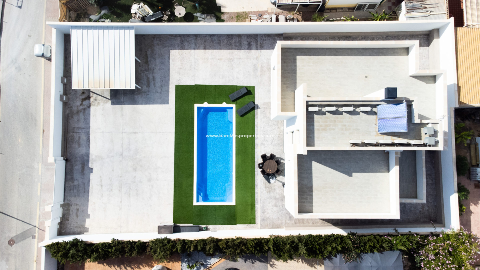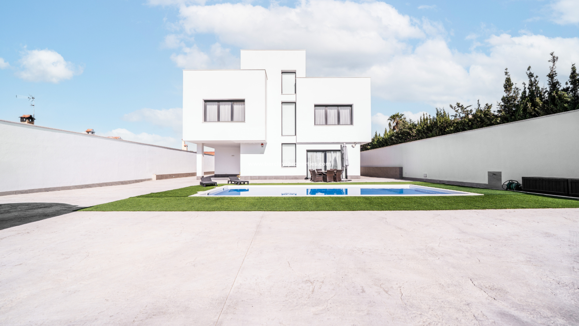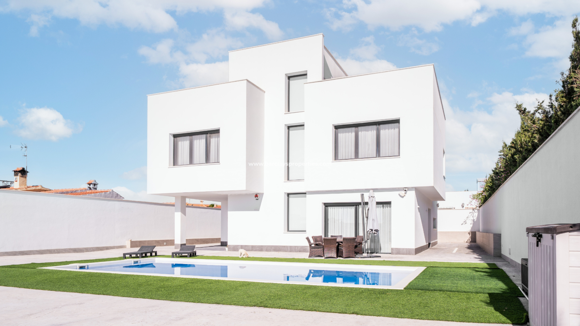 Esta llamativa villa contemporánea en la Urbanización La Escuera, San Fulgencio, ofrece la combinación perfecta de diseño moderno, espacio y confort, a tan solo tres minutos en coche de la playa de La Marina y a veinticinco minutos del Aeropuerto Alicante-Elche. ✅Construida en 2021 sobre una parcela de 826m², cuenta con una impresionante superficie habitable de 404m² y una piscina de 10 x 4,25 metros rodeada de césped artificial de bajo mantenimiento, ideal para relajarse y disfrutar de reuniones al aire libre.