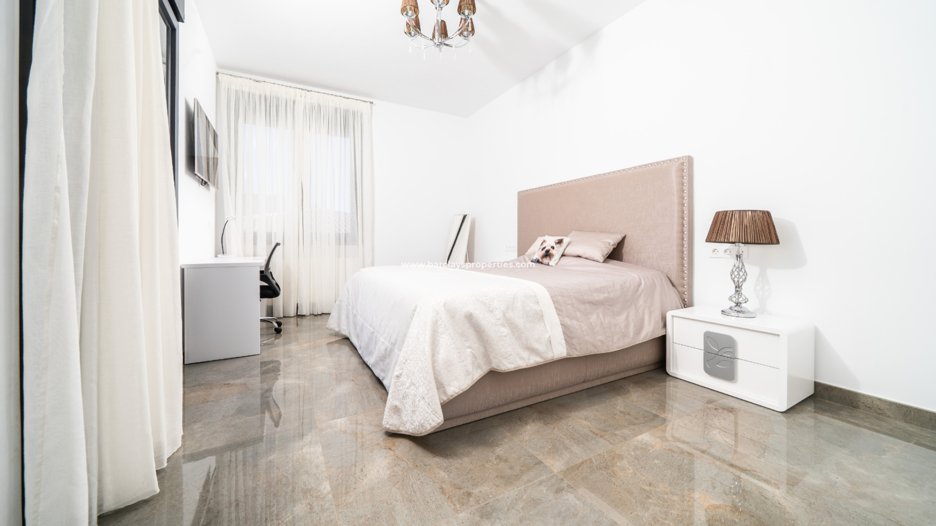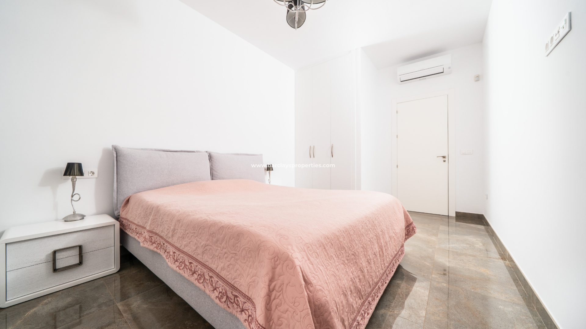 Un tercer dormitorio doble muy espacioso dispone de armarios empotrados, aire acondicionado y una terraza privada.