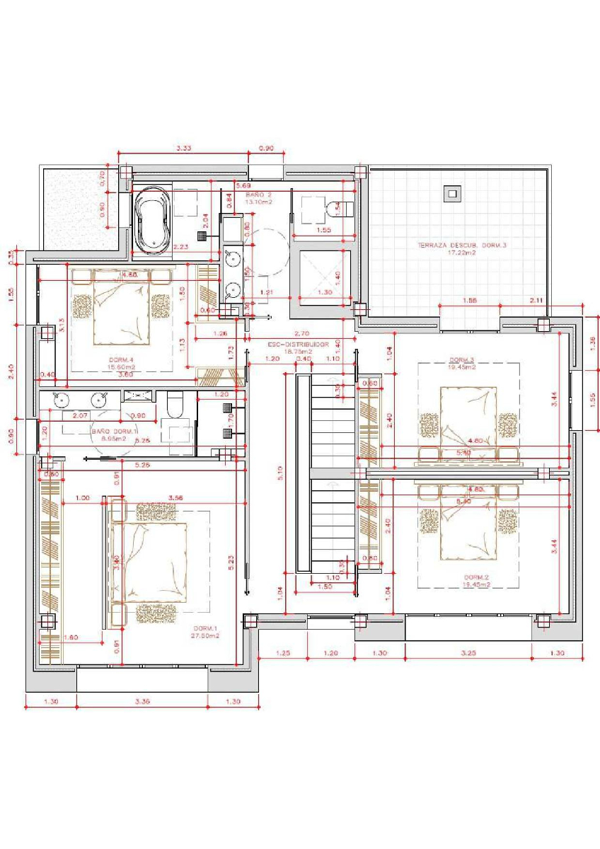 Además, hay un cuarto dormitorio doble con camas individuales, armarios empotrados y aire acondicionado, completando así la excelente distribución de este nivel.