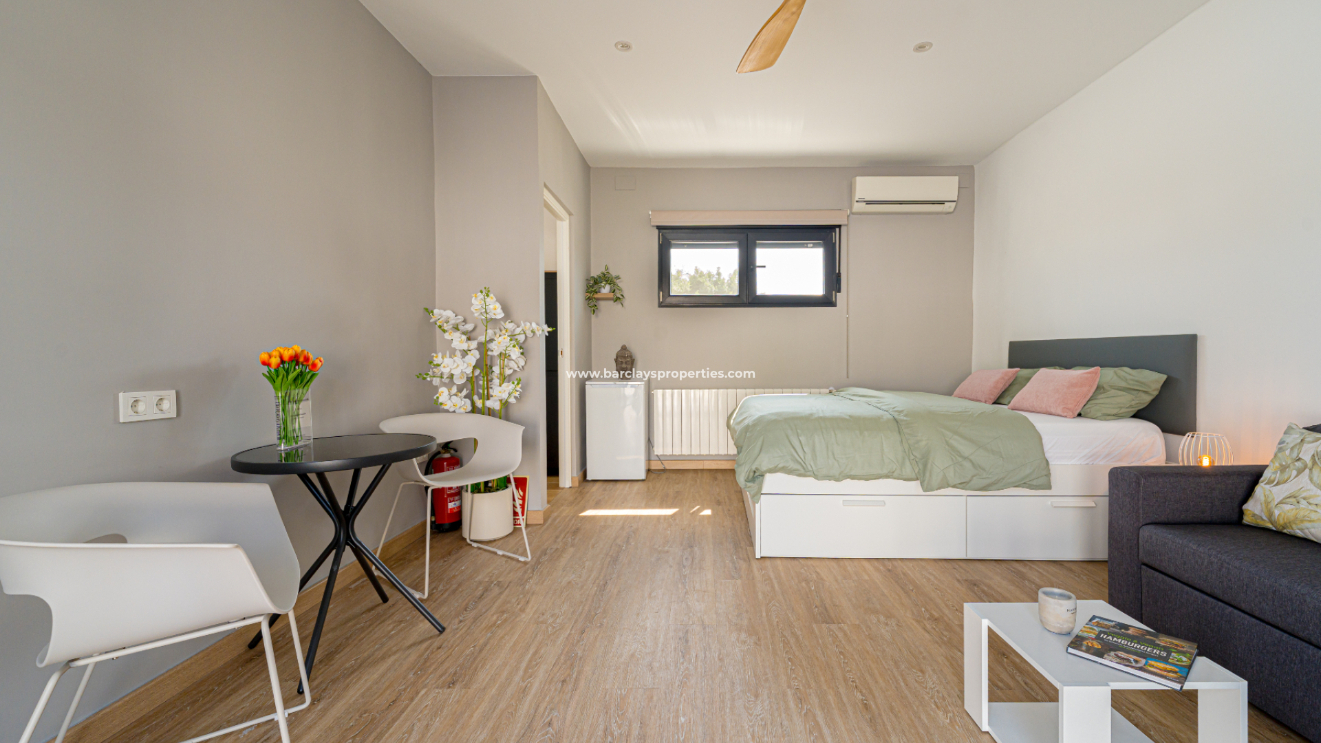 ➡️ Una sección de la villa se compone de dos dormitorios y un baño con su propia entrada privada, actualmente organizada como un apartamento de 38 m² que es perfecto para alojamiento de invitados, una oficina en casa o un espacio de trabajo privado.