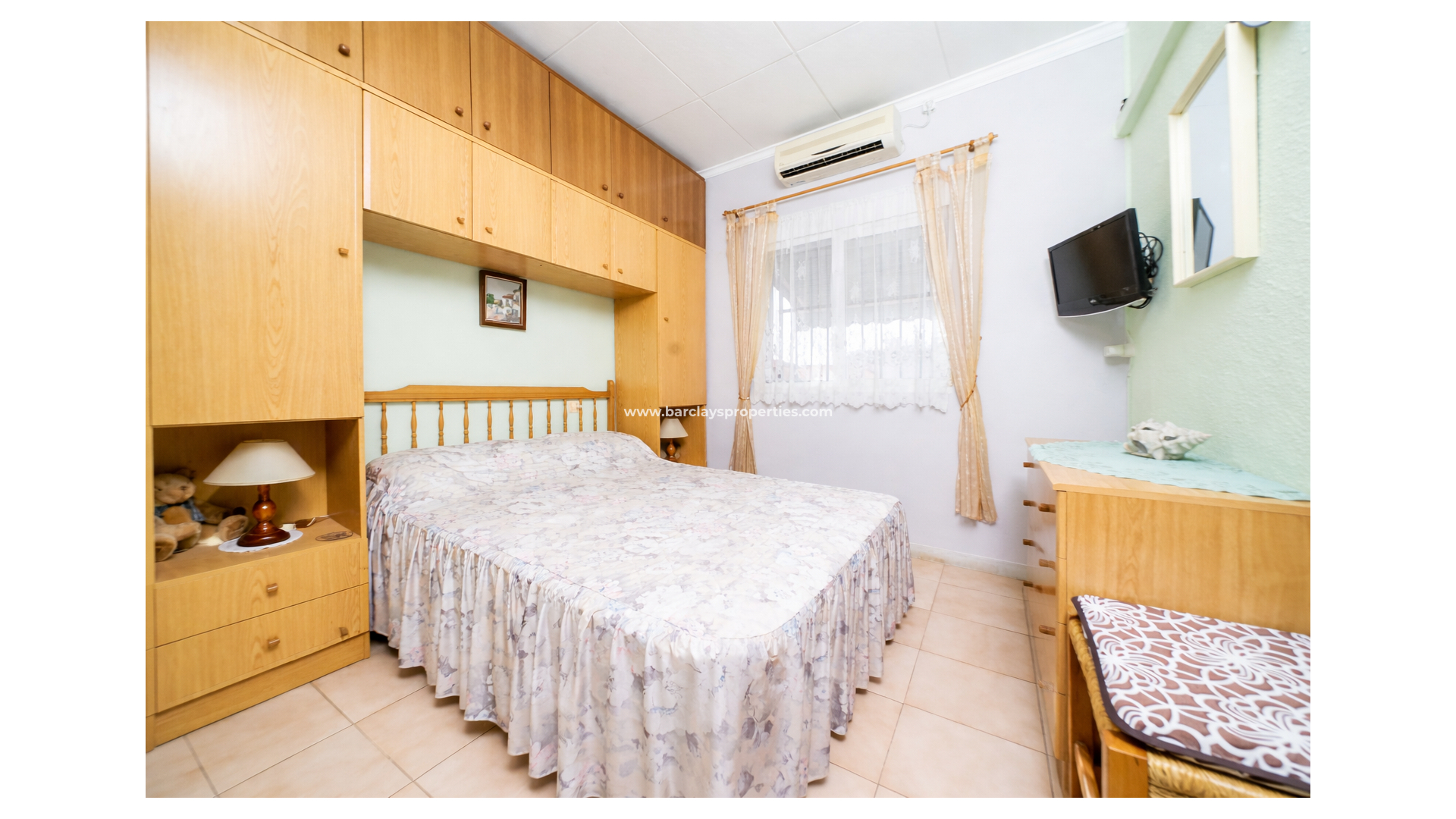 Hay tres dormitorios en total. El primero es una habitación con dos camas individuales, aire acondicionado y ventilador de techo; el segundo es un dormitorio doble también con aire acondicionado y ventilador de techo; y el dormitorio principal se beneficia de orientación sur, armarios empotrados, aire acondicionado, ventilador de techo y un baño en suite. El baño en suite incluye una ducha grande, bidé, inodoro, mueble de tocador y un pequeño calefactor. El baño principal cuenta con una ducha de pared a pared, lavabo e inodoro.