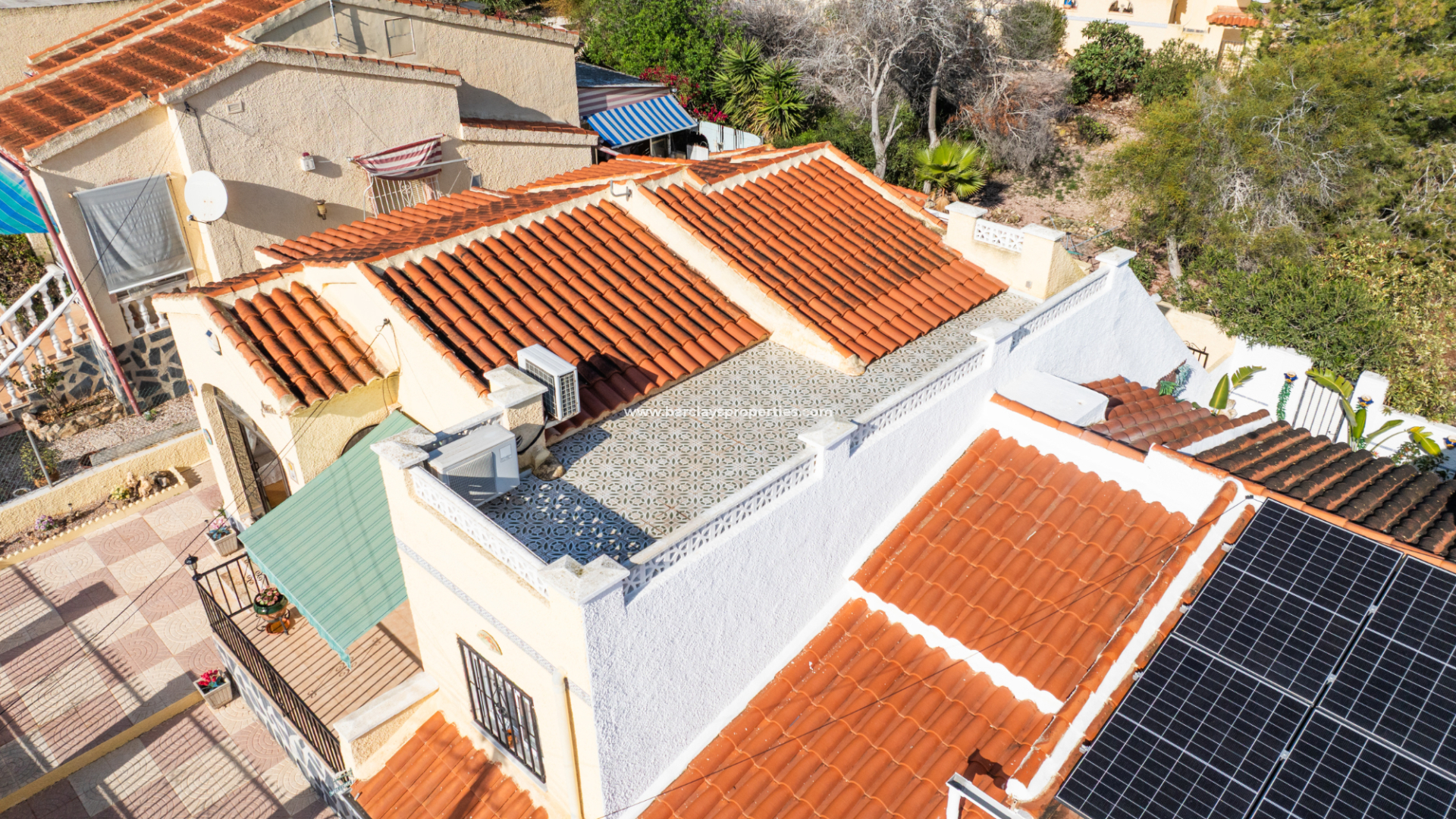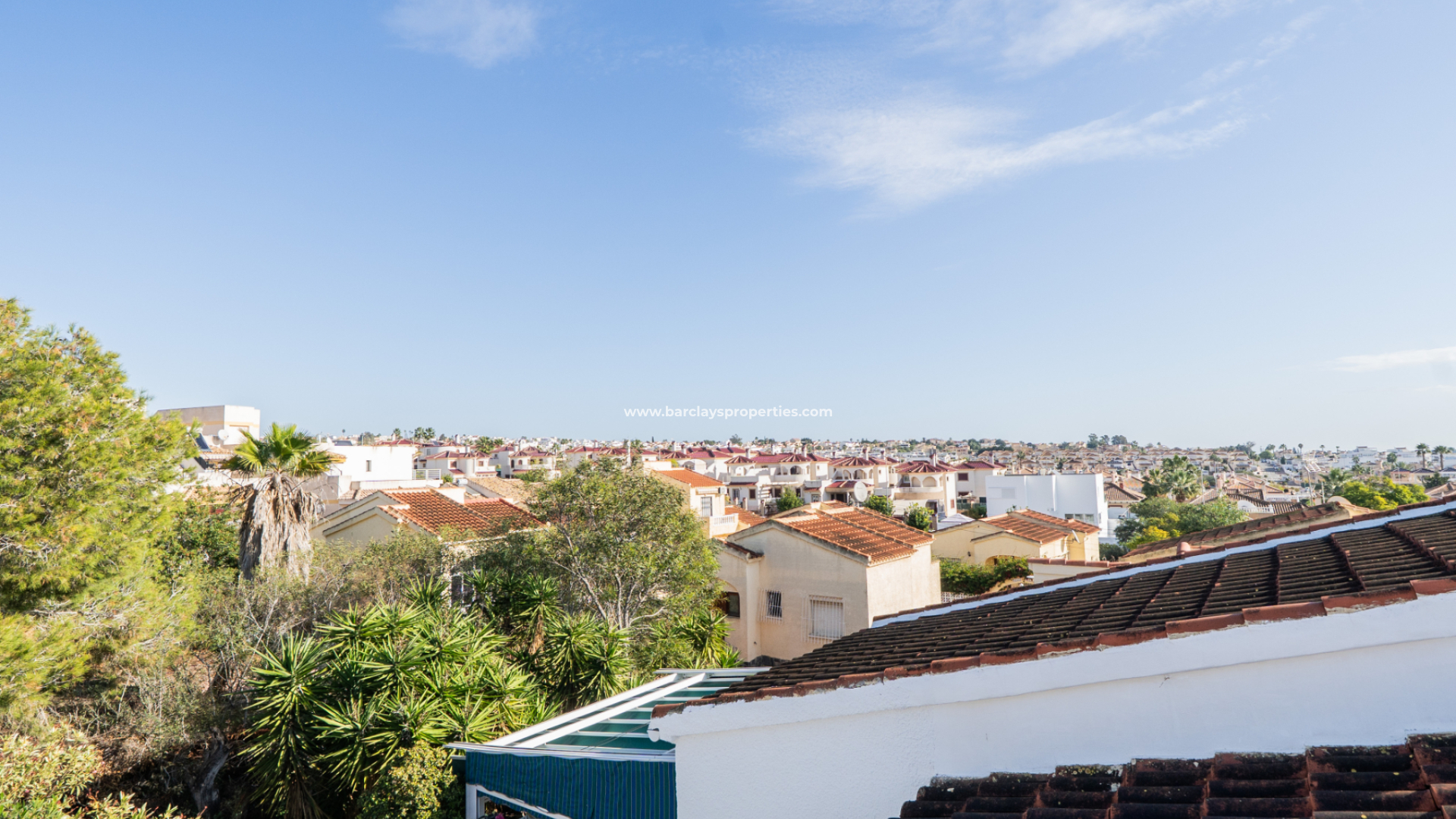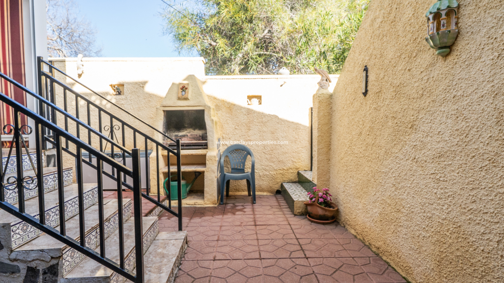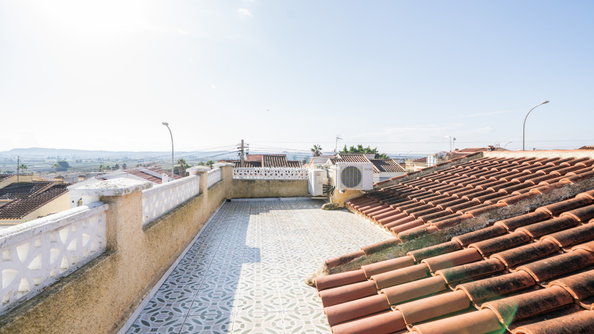En el exterior, la propiedad ofrece una generosa terraza con toldo, zona de barbacoa y una ducha exterior, ideal para disfrutar del clima español. ➡️ Una puerta trasera proporciona acceso directo a la zona verde situada detrás de la propiedad. Unas escaleras conducen al solárium en la azotea, que goza de vistas hacia Guardamar, el campo circundante y las montañas. Esta villa bien mantenida ofrece un excelente espacio de vida interior y exterior en una ubicación inmejorable.