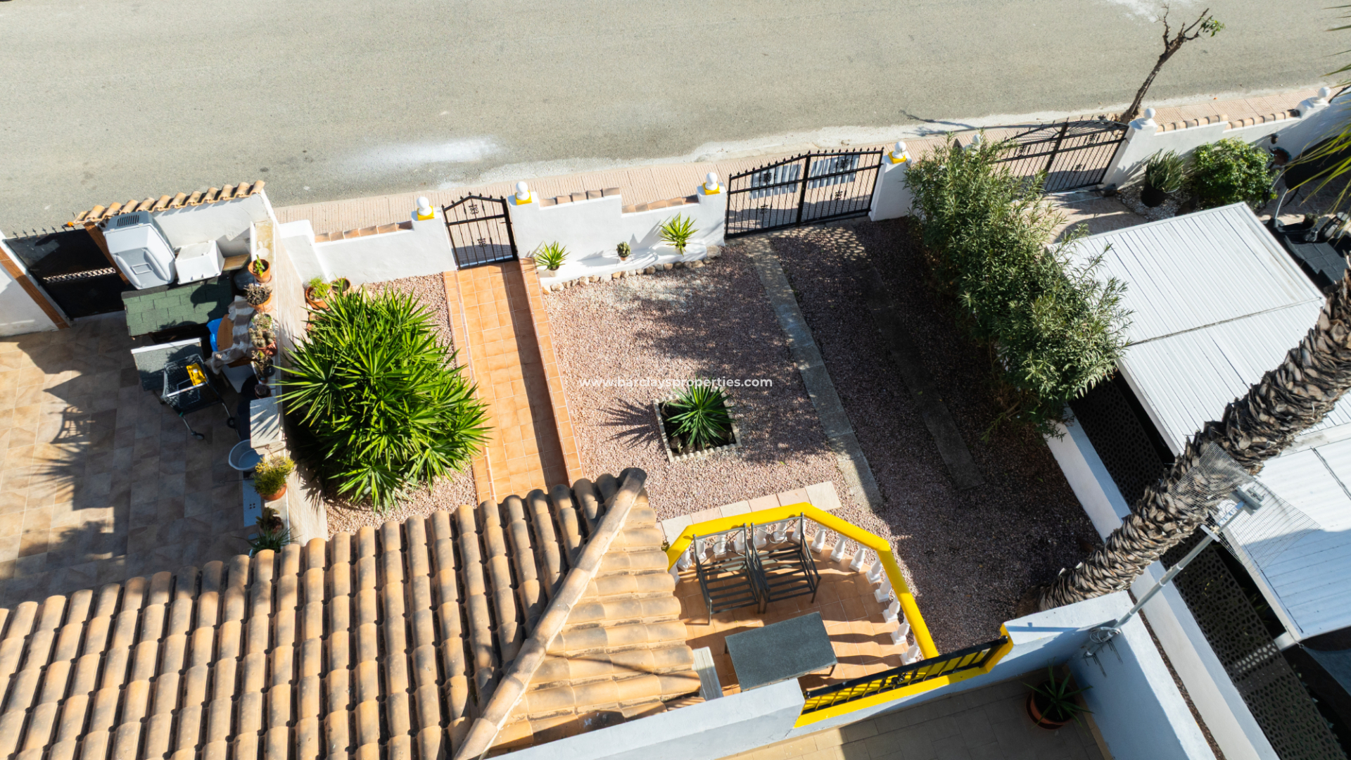 El jardín de la propiedad está pavimentado y principalmente cubierto de grava, conduciendo a un porche cubierto, y cuenta con una terraza lateral que proporciona un espacio exterior útil para relajarse o cenar. En el interior, el salón es luminoso y confortable e incluye un ventilador de techo y una zona de comedor asignada. La distribución fluye bien hacia el resto de la casa, lo que la hace práctica tanto para estancias vacacionales como para una vida a largo plazo.