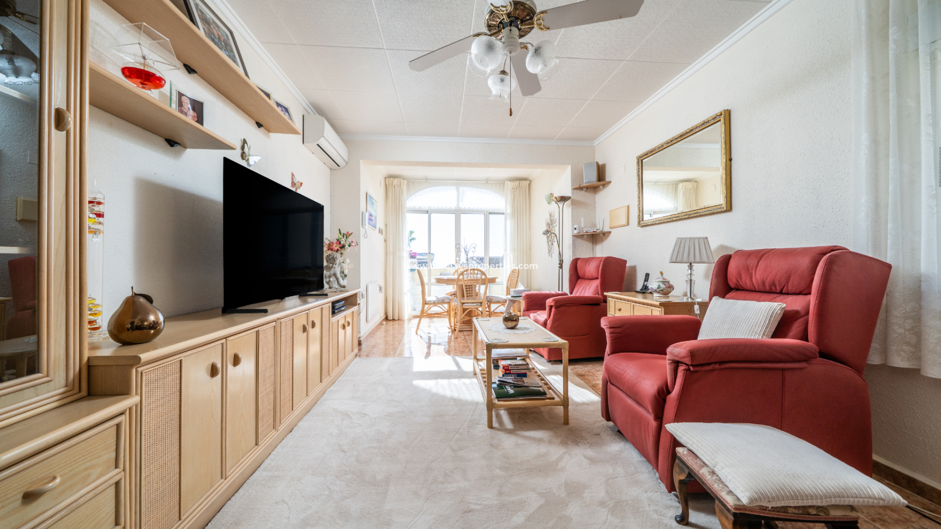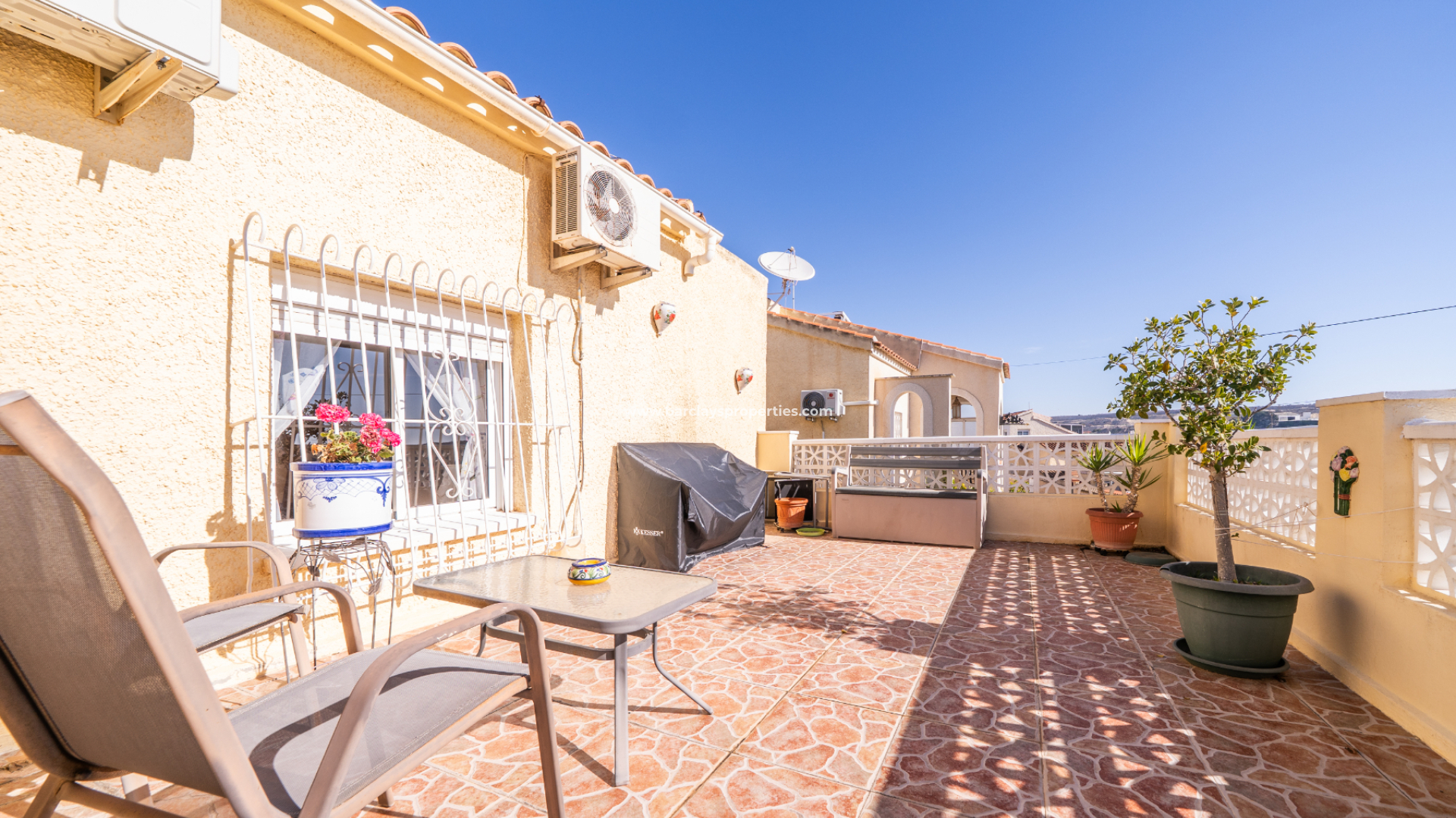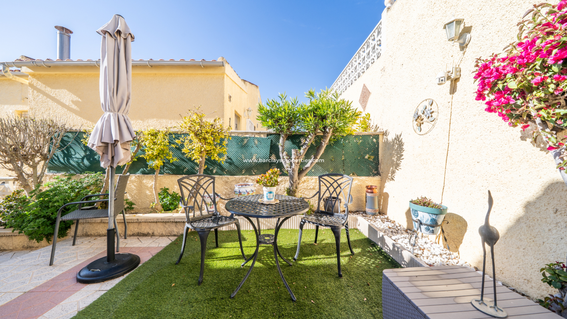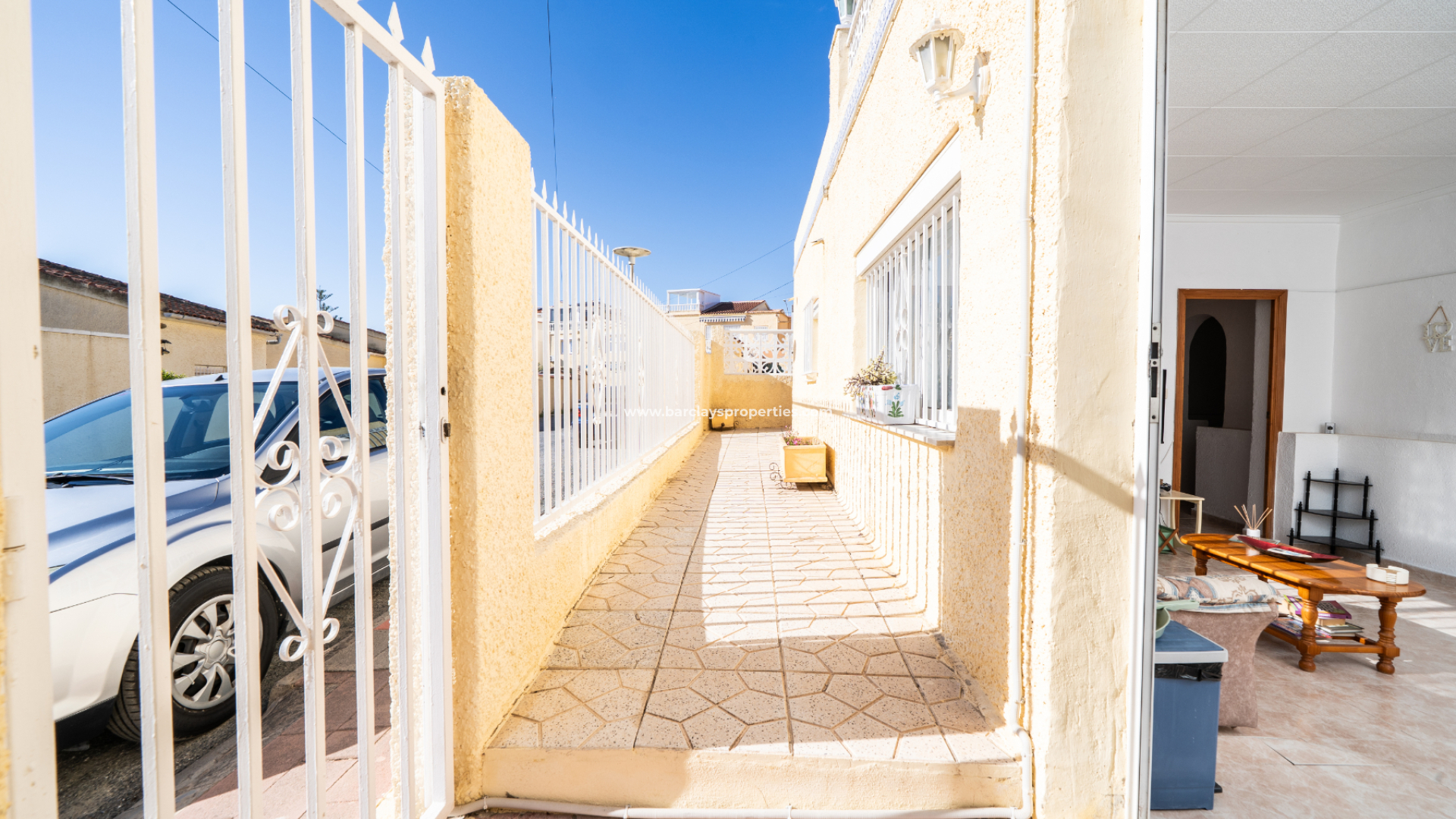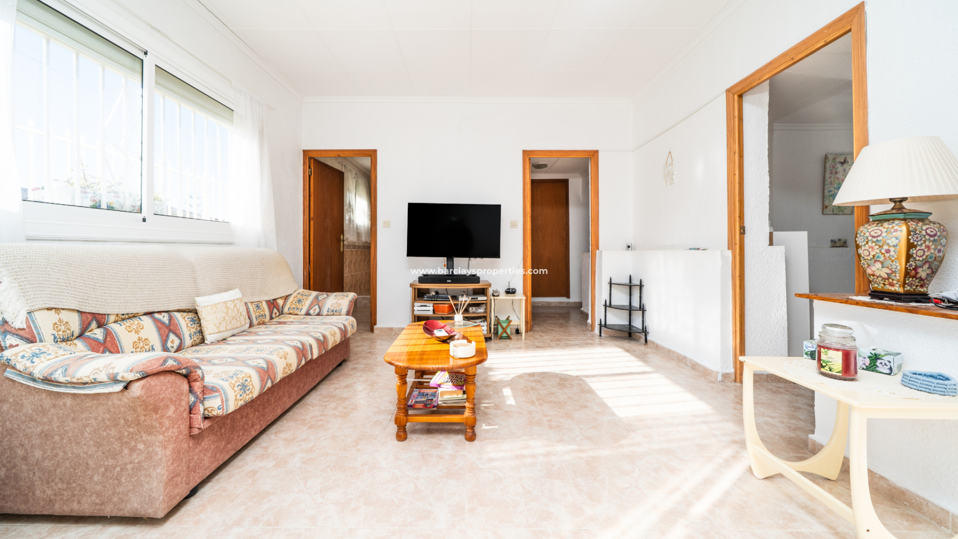 La casa principal cuenta con una gran terraza delantera para tomar el sol con vistas despejadas hacia la vecina ciudad de Guardamar del Segura, creando el lugar perfecto para relajarse o recibir invitados. En el interior, hay un amplio salón con ventilador de techo, que conduce a dos dormitorios bien proporcionados. El dormitorio principal es una habitación muy amplia y luminosa con armarios empotrados y aire acondicionado. El segundo dormitorio es un doble cómodo, también con armarios empotrados y aire acondicionado. El baño principal ha sido actualizado para incluir una gran ducha a ras de suelo, inodoro y mueble de tocador.