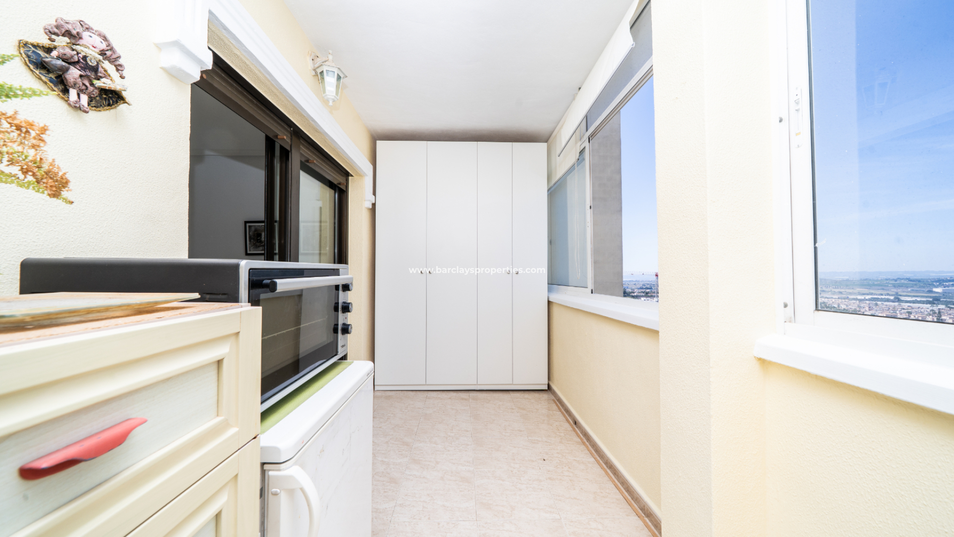 Se accede a la propiedad a través de un acogedor vestíbulo que conduce a una cocina independiente equipada de buen tamaño. Un baño en la planta baja incluye ducha, WC y lavabo. También hay un útil espacio de almacenamiento bajo la escalera, con instalación para lavadora. El salón es de un tamaño confortable y se abre a un balcón acristalado, proporcionando espacio útil adicional junto con ➡️ vistas ininterrumpidas a la Vega Baja y a las montañas circundantes.