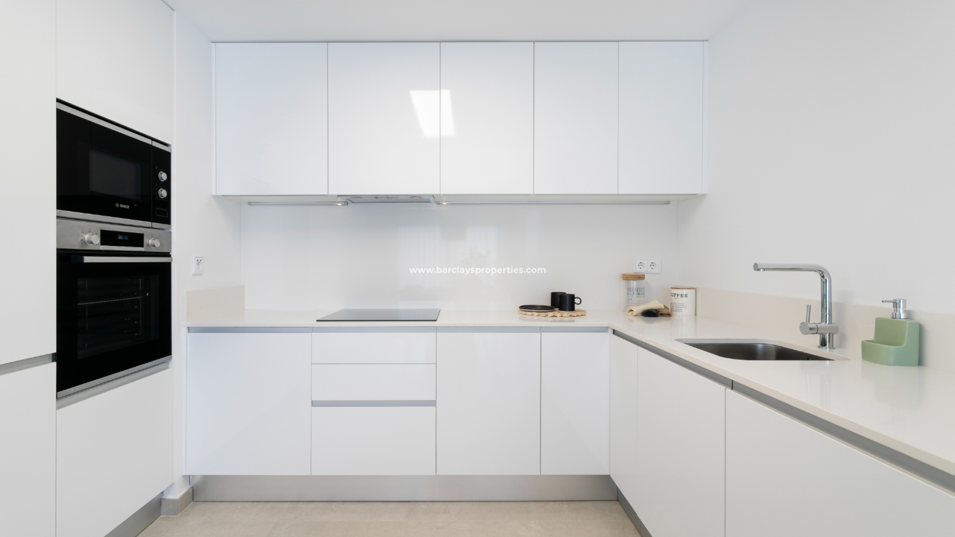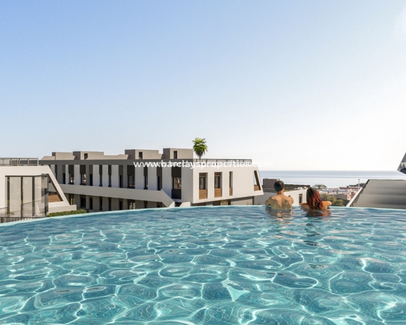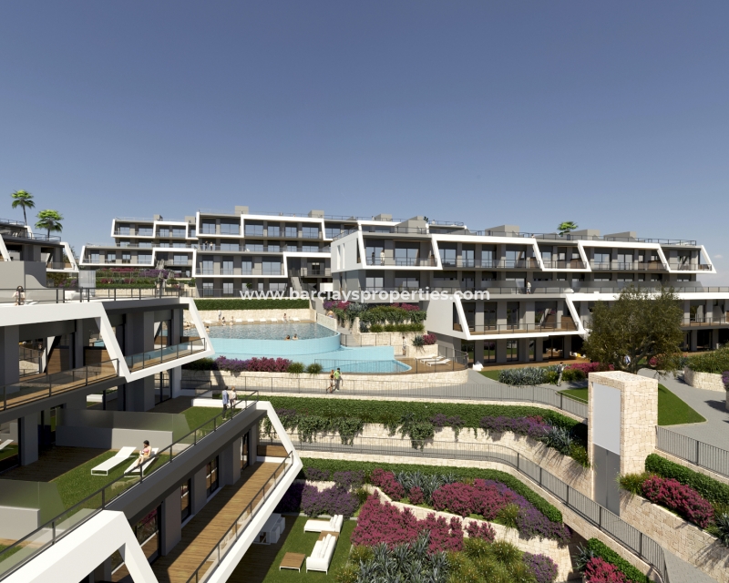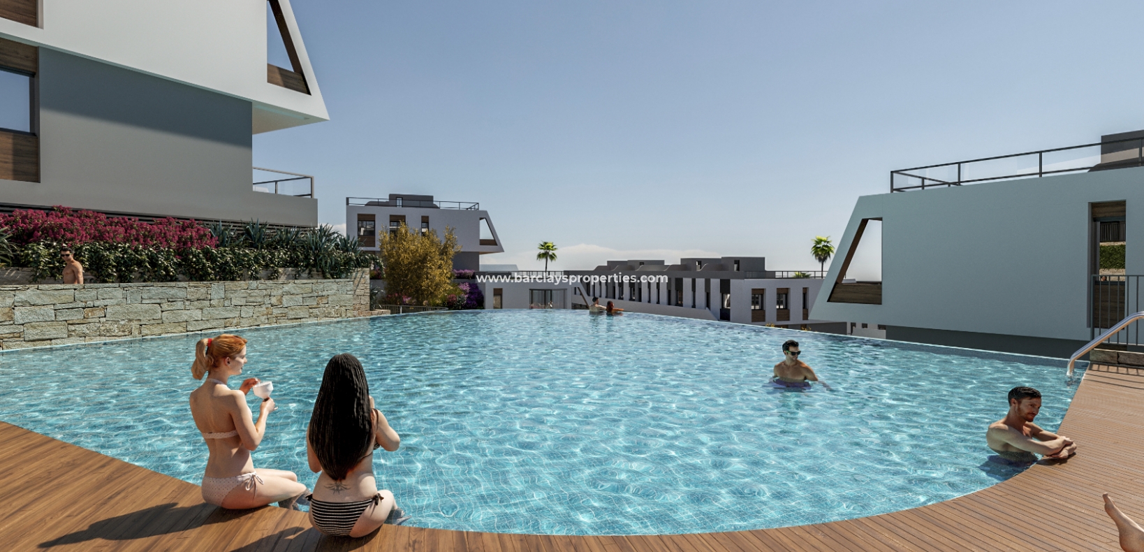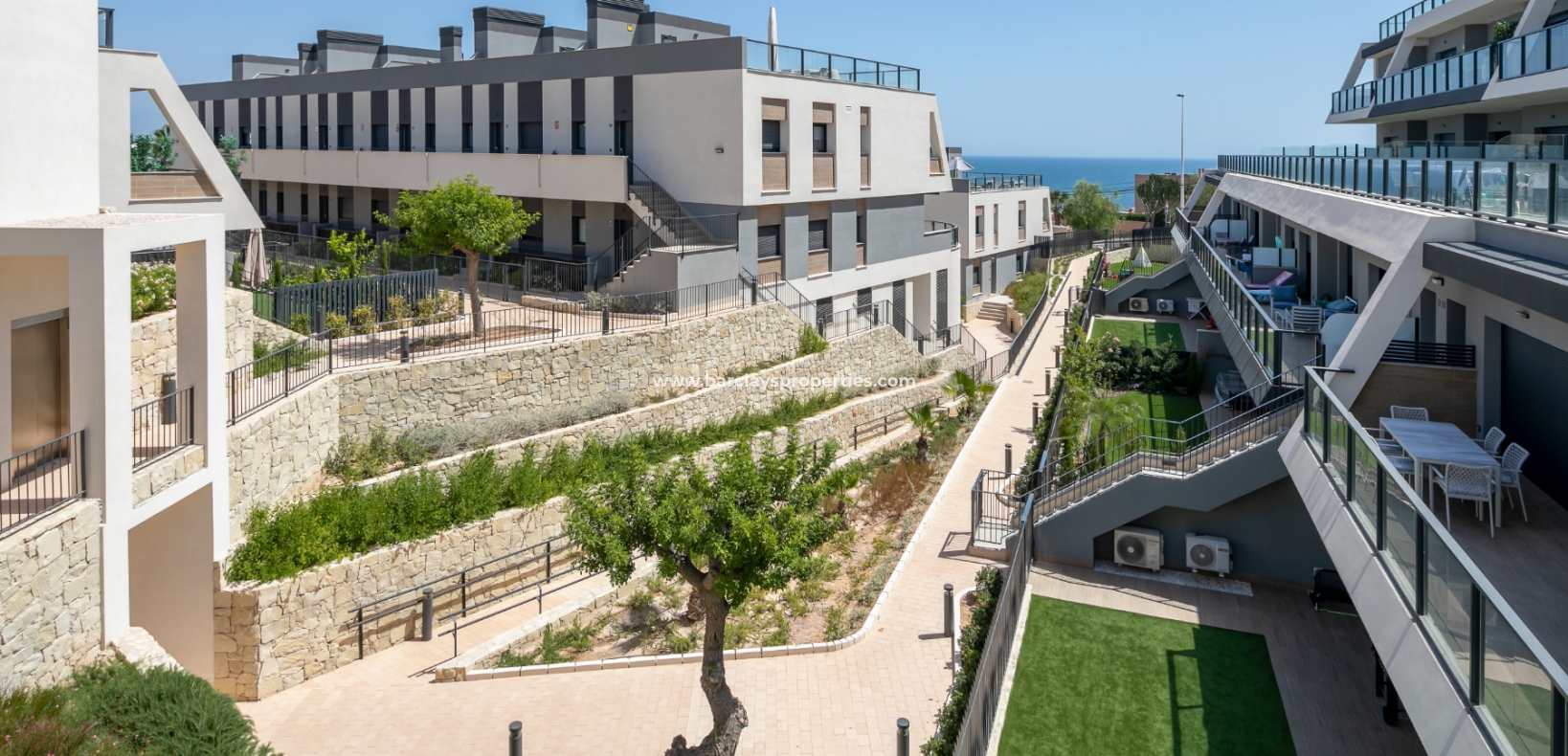 Apartamentos de dos y tres dormitorios situados en una urbanización de 170 viviendas, con vistas al hermoso mar azul del Mediterráneo. Estos apartamentos se encuentran dentro de una comunidad privada cerrada con muchas instalaciones en el sitio, tales como piscina, jacuzzi, parque infantil, áreas de gimnasio exterior, aparcamiento para bicicletas, etc.
