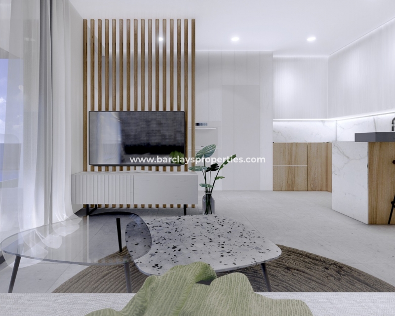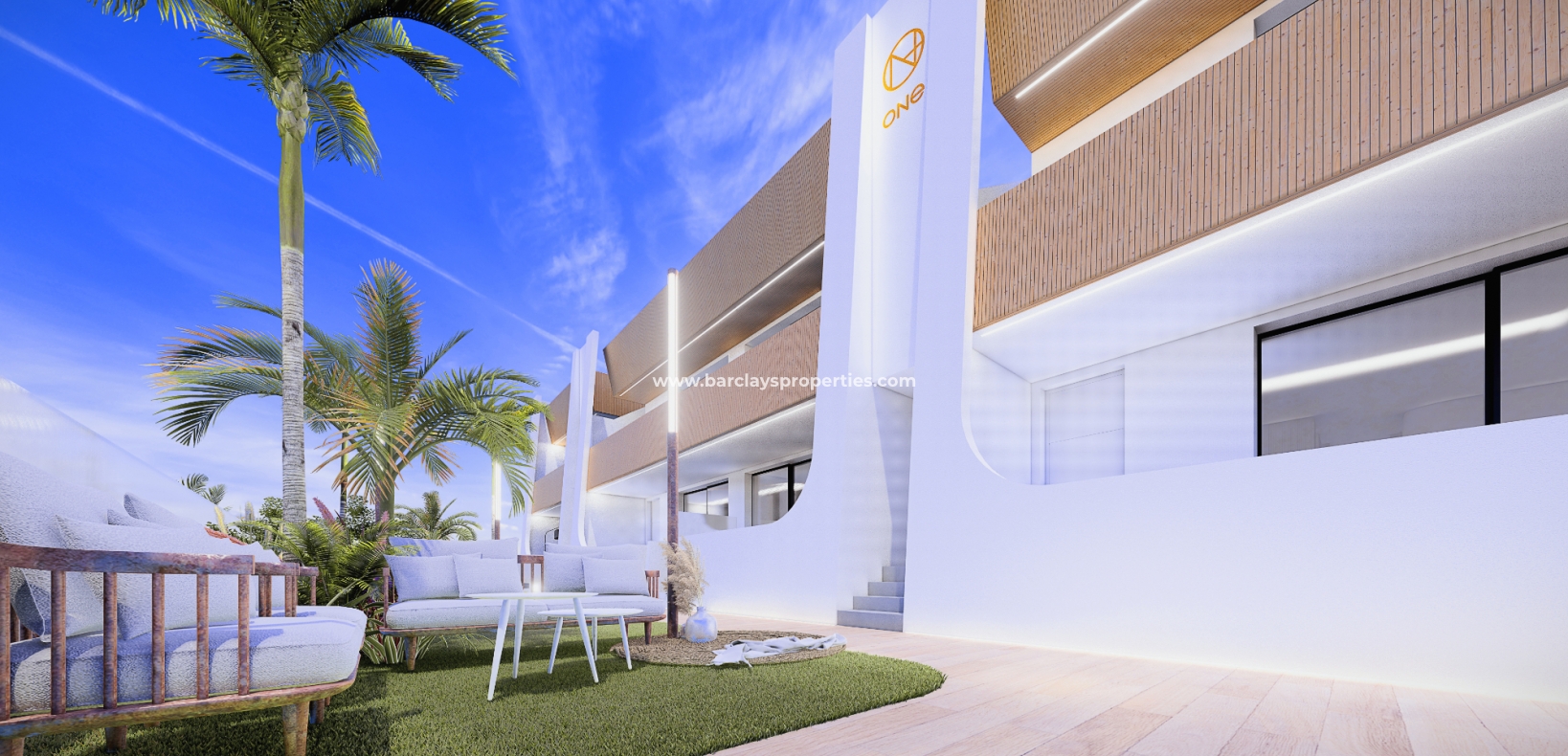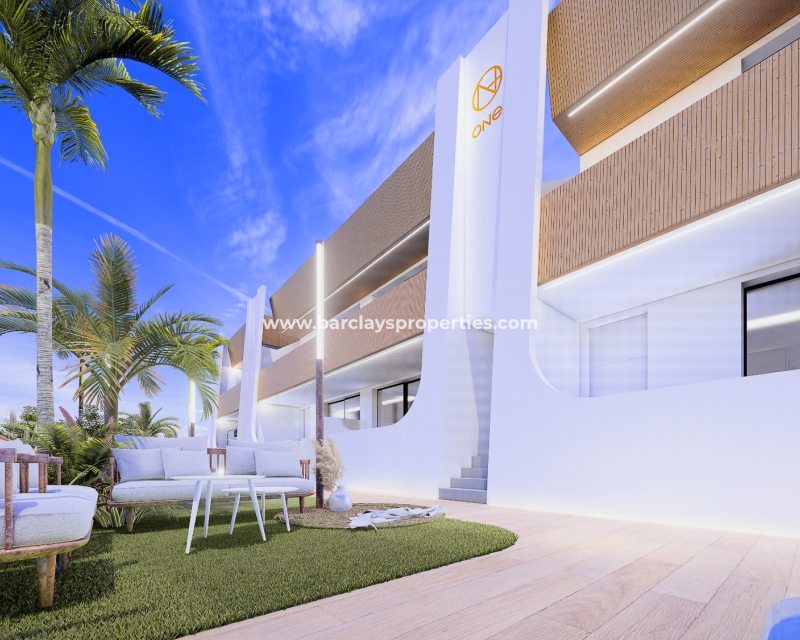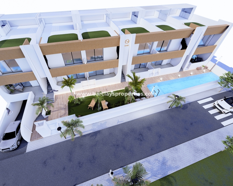 Promoción de sólo 12 apartamentos a poca distancia de todos los servicios y de la playa. Plantas bajas y áticos disponibles con enormes solariums y terrazas delanteras y traseras. Villas de playa de dos dormitorios y dos baños, diseñadas y construidas por reconocidos arquitectos y promotores, apartamentos luminosos y espaciosos que ofrecen todo lo que necesita para esa casa de vacaciones especial.