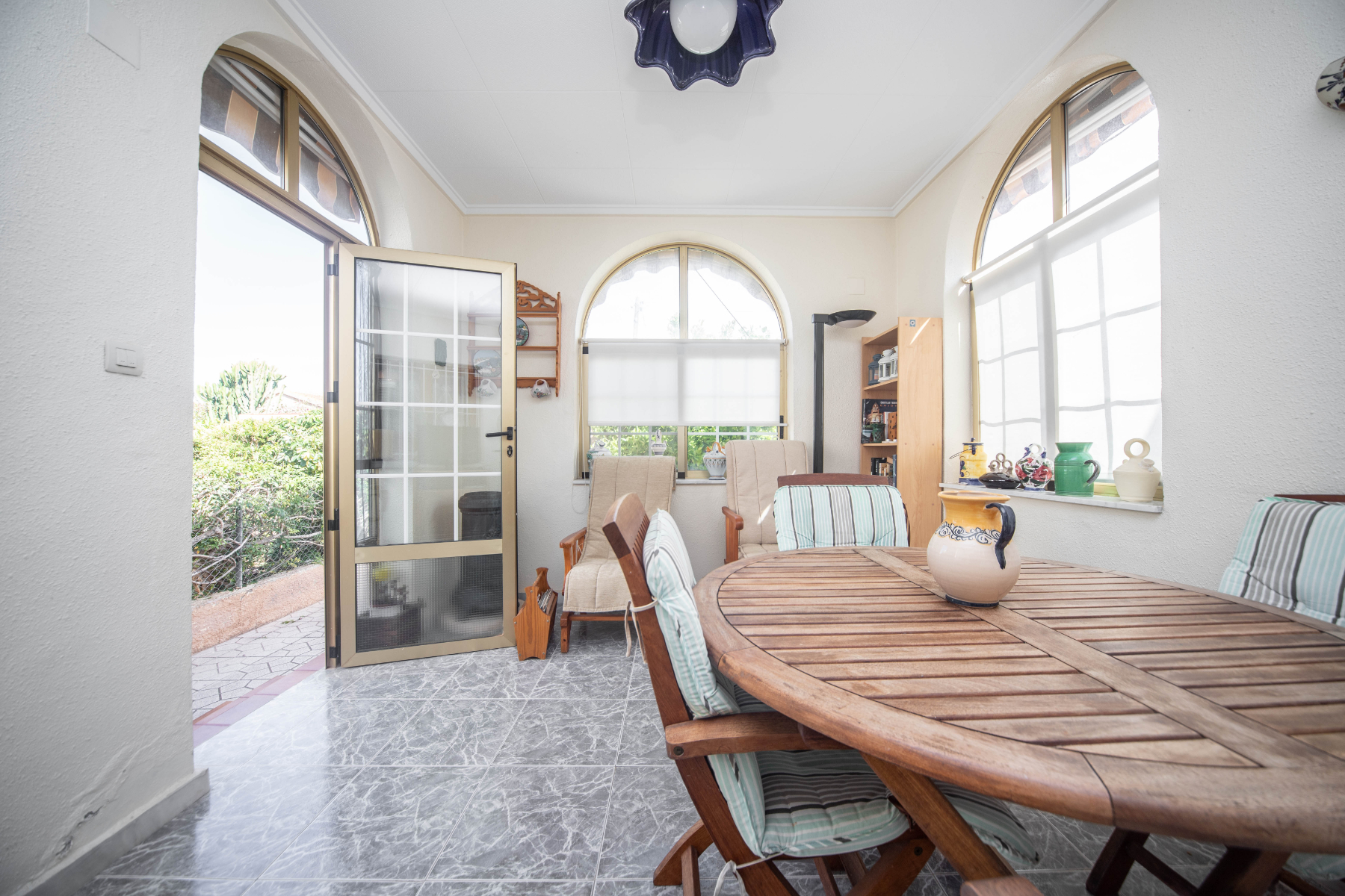 En entrant dans la propriété, vous êtes accueillis par un grand porche vitré, qui offre un espace fantastique pour se détendre et profiter des vues sur le jardin. Le porche ajoute une touche d'élégance à la villa et sert d'espace polyvalent pouvant être utilisé comme salle d'été ou jardin d'hiver.