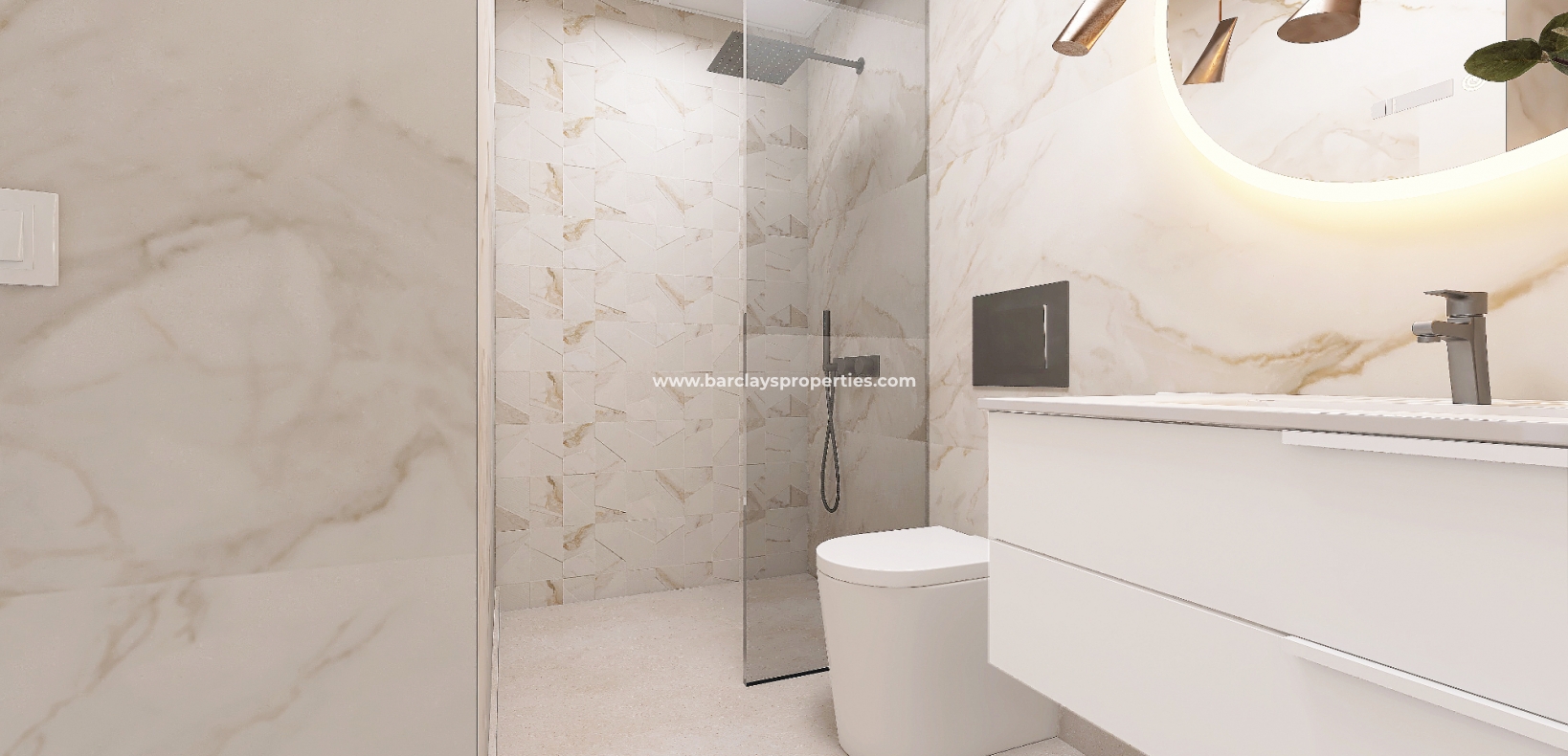 Chaque appartement dispose de trois chambres et de deux salles de bains, offrant un espace généreux pour les familles et les invités. La disposition bien pensée assure une circulation fluide dans tout l'espace, créant une atmosphère d'élégance et de détente.