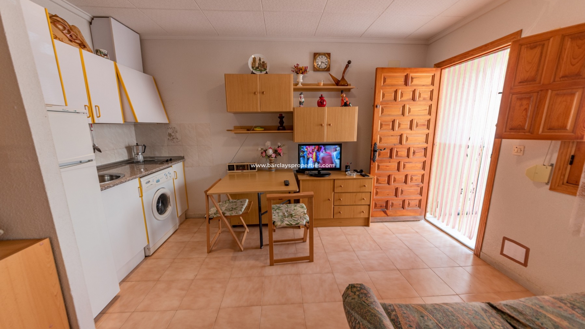 Nous entrons dans cette charmante maison de ville par sa grande terrasse ouverte, qui a une salle de stockage de bonne taille et beaucoup d'espace pour un coin salon extérieur. À l'intérieur, nous trouvons un salon/salle à manger avec une cuisine ouverte entièrement équipée. Il y a une grande chambre à coucher double pleine de lumière naturelle qui entre par les fenêtres, qui ont des vues sur la terrasse privée. Nous trouvons également une salle de bains entièrement équipée.