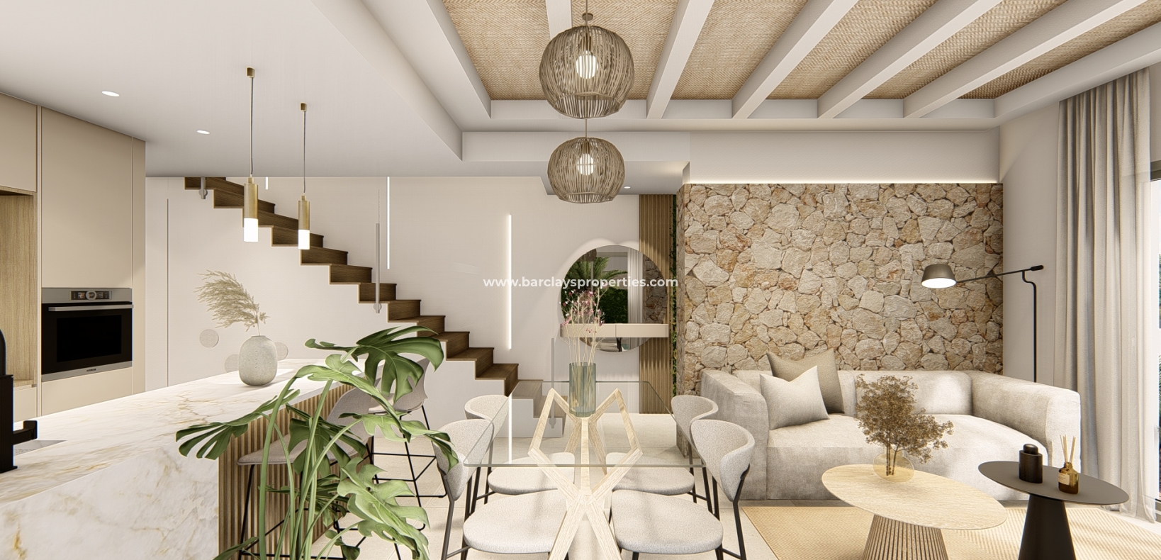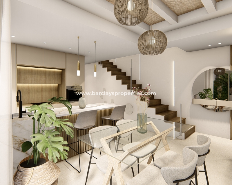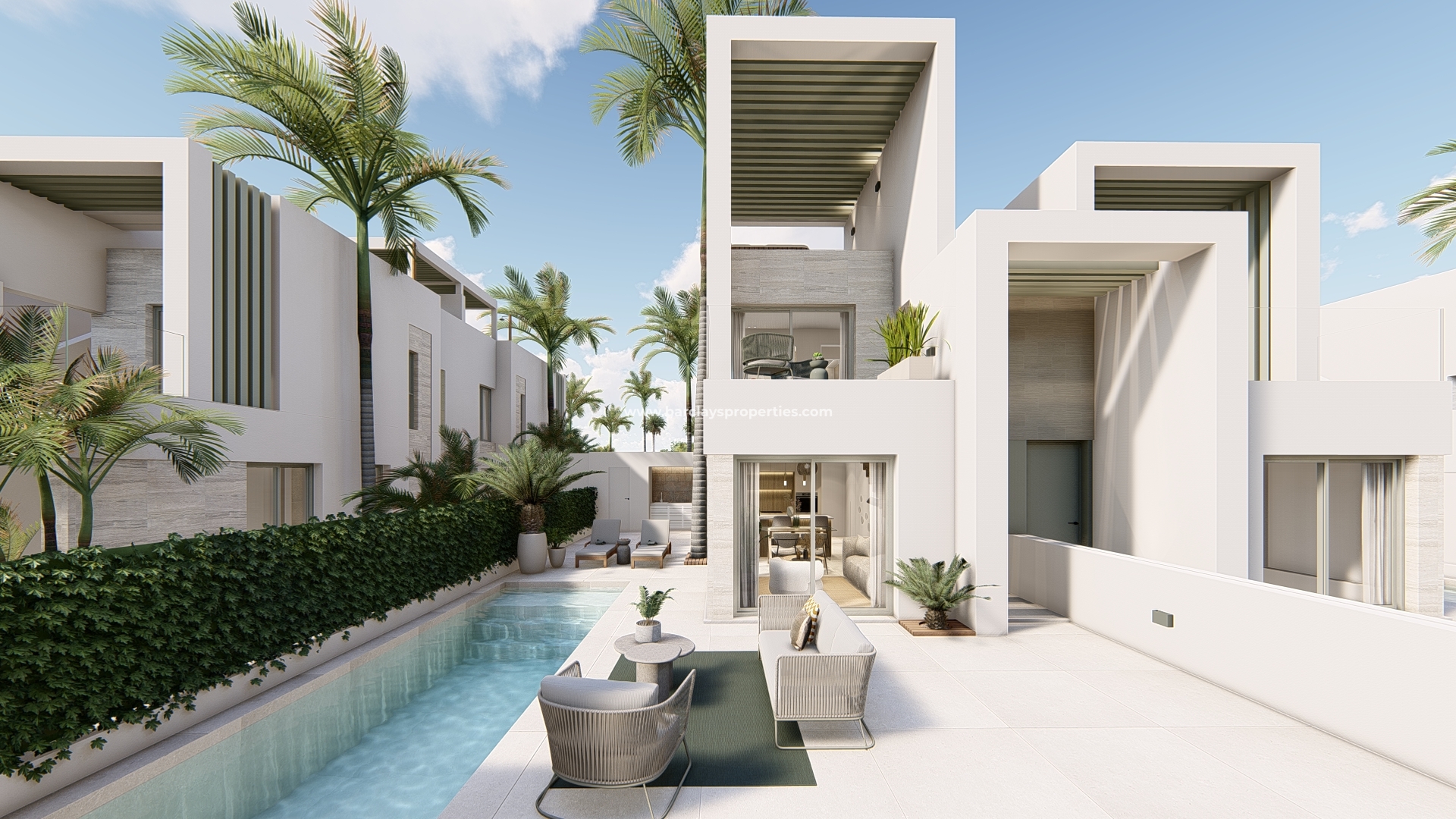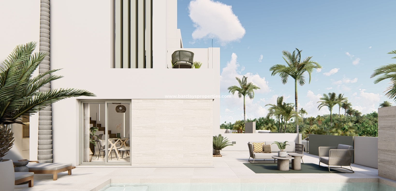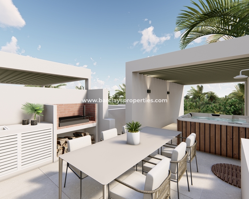 Ces villas neuves à deux étages à Ciudad Quesada offrent un mélange parfait de style et de commodité. Avec 93 m² d’espace de vie, elles disposent de 3 chambres, 2 salles de bains et une cuisine ouverte. Le jardin privé comprend une piscine, une douche extérieure et une place de parking. Situées à seulement 500 mètres des commodités et à 8 km de la plage, ces maisons sont équipées de caractéristiques haut de gamme : portes de sécurité renforcées, volets électriques, fenêtres à double vitrage, climatisation et garantie de 10 ans. Le système de chauffage de l’eau par aérothermie assure une efficacité énergétique, tandis que l'emplacement paisible et accessible en fait un excellent investissement locatif.