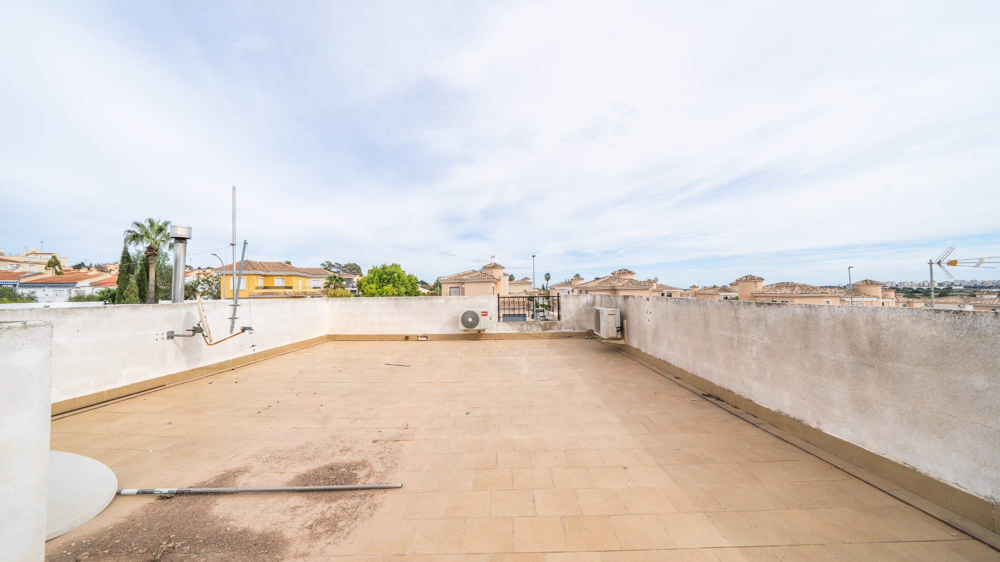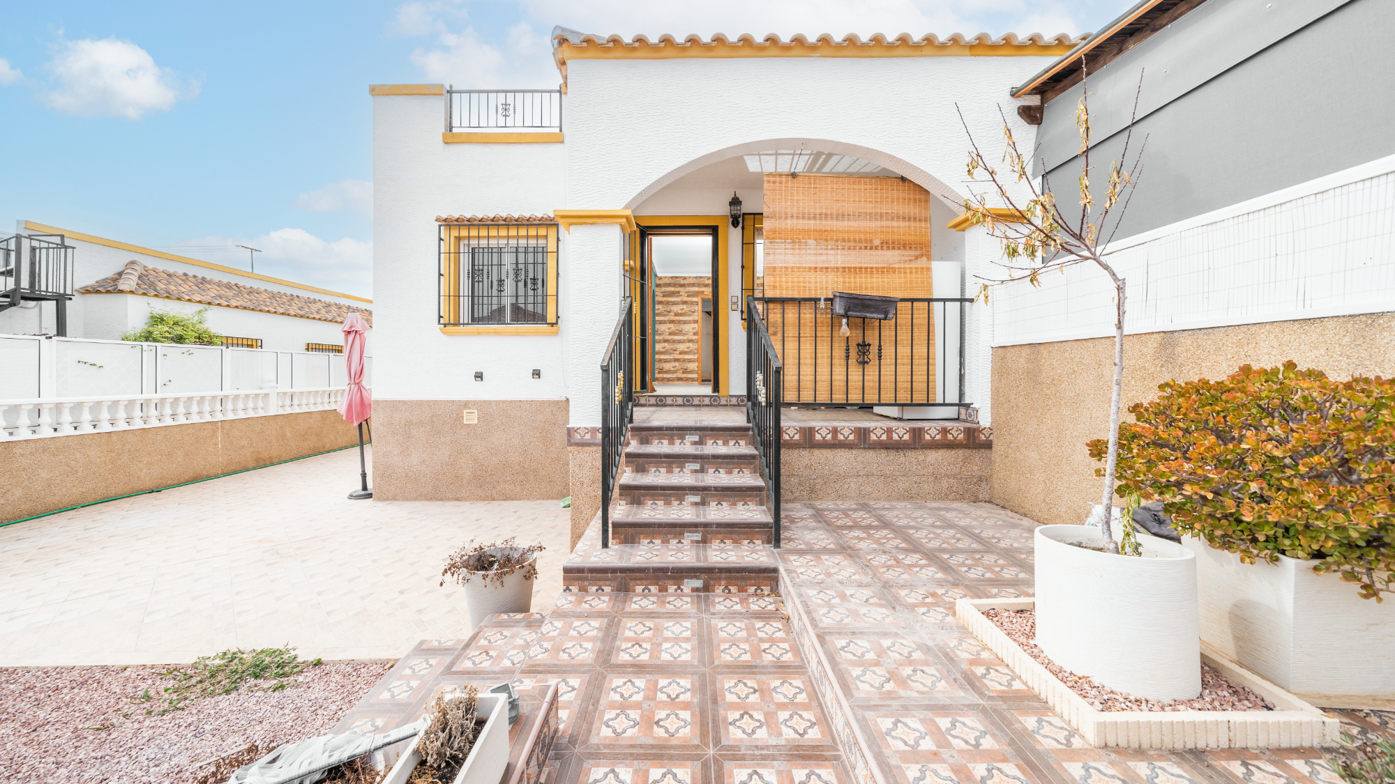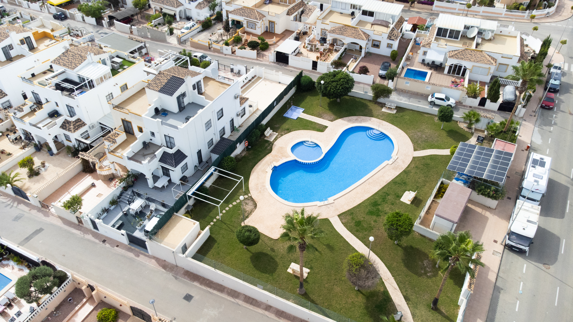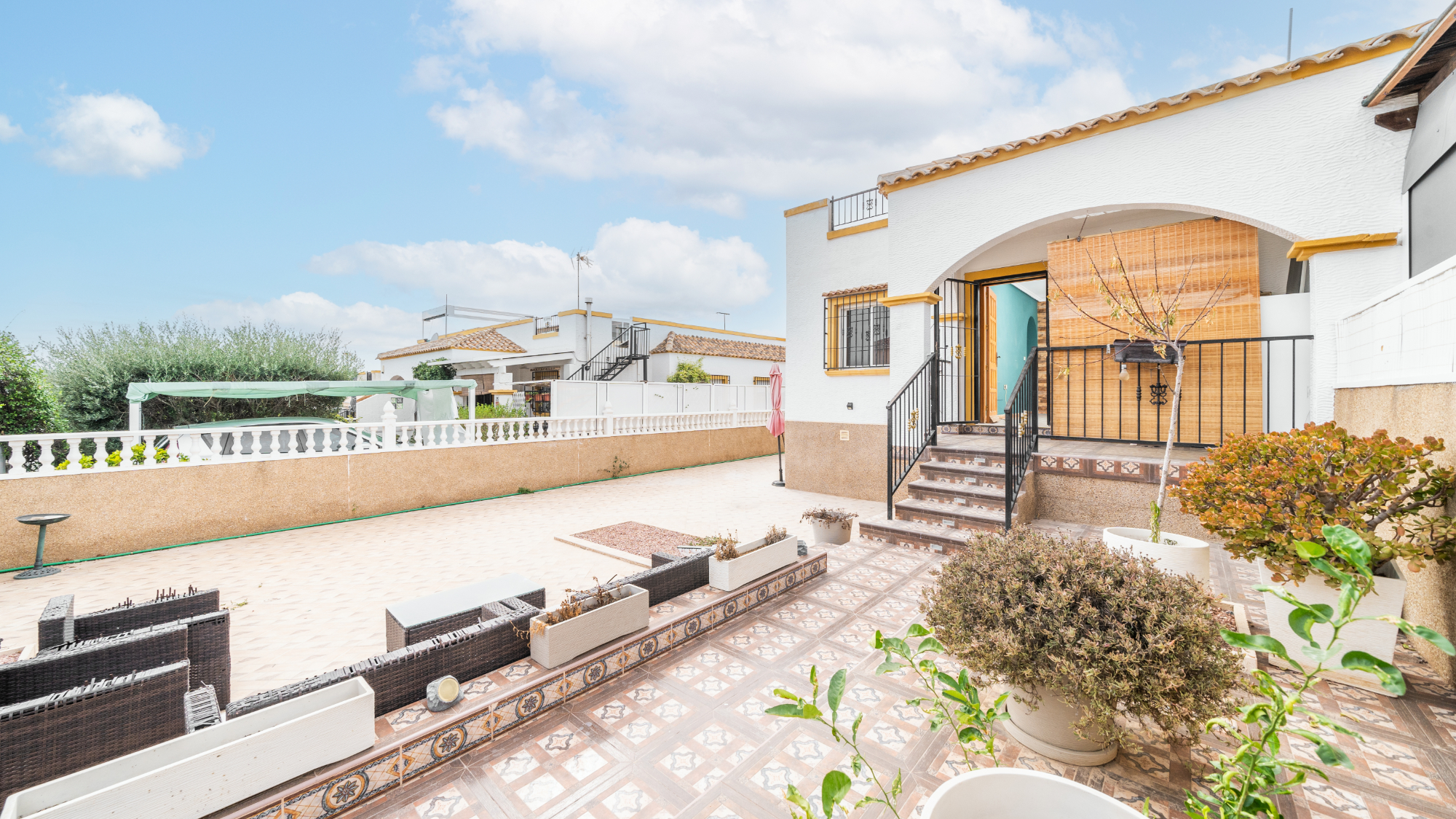 Cette charmante villa quad dans l'urbanisation La Marina est idéalement située à seulement 5 minutes en voiture de la plage du village de La Marina, offrant à la fois commodité et potentiel locatif. Ce quad modèle « Julia » est parfaitement situé à seulement 10 minutes à pied de la populaire zone commerciale « Consum Square » qui propose des supermarchés et une variété de bars, cafés et restaurants pour tous les goûts, à deux pas de la piscine communautaire bien entretenue et des jardins.