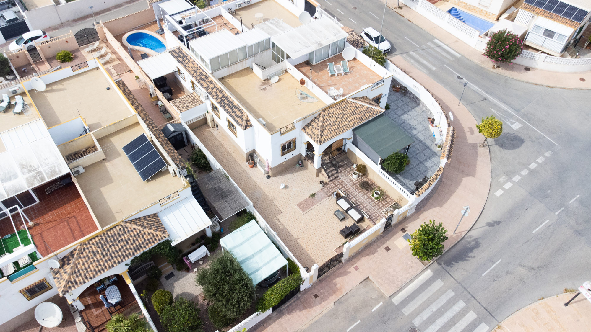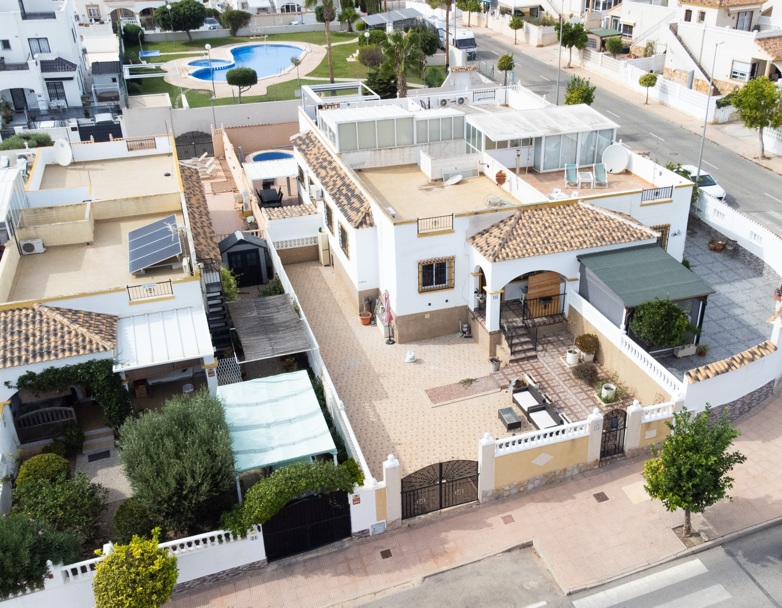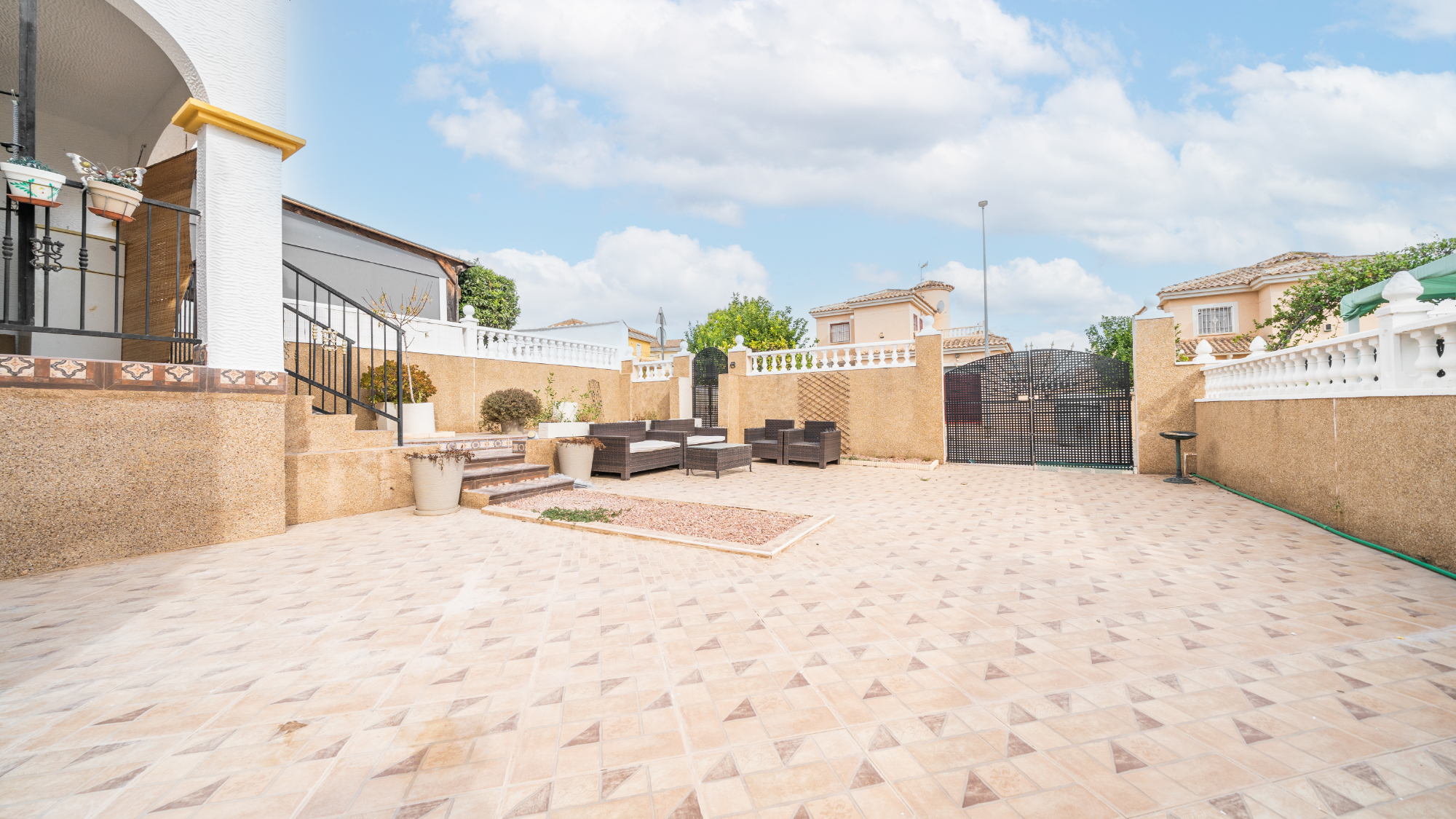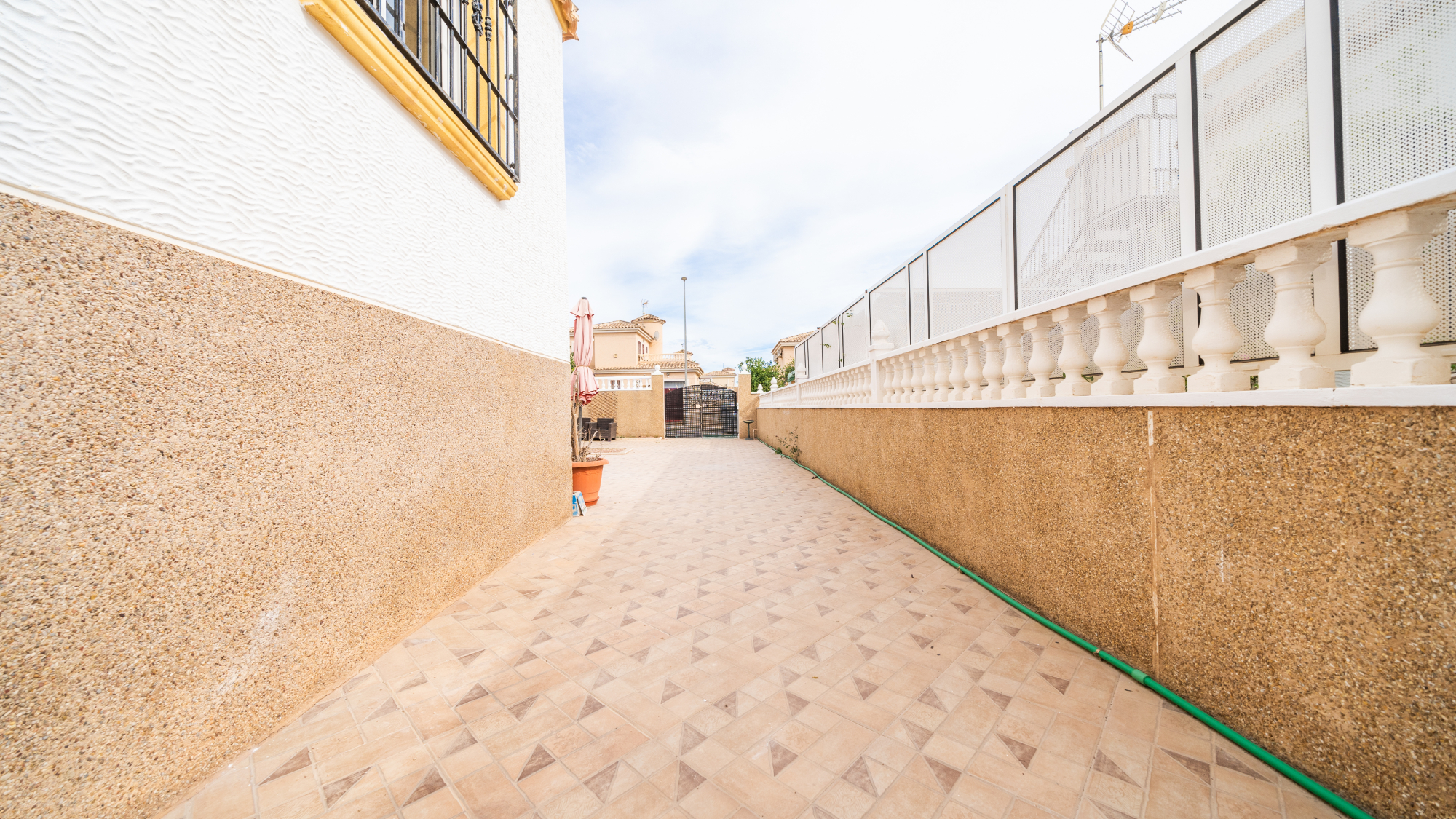 Cette charmante villa quad dans l'urbanisation La Marina est idéalement située à seulement 5 minutes en voiture de la plage du village de La Marina, offrant à la fois commodité et potentiel locatif. Ce quad modèle « Julia » est parfaitement situé à seulement 10 minutes à pied de la populaire zone commerciale « Consum Square » qui propose des supermarchés et une variété de bars, cafés et restaurants pour tous les goûts, à deux pas de la piscine communautaire bien entretenue et des jardins.