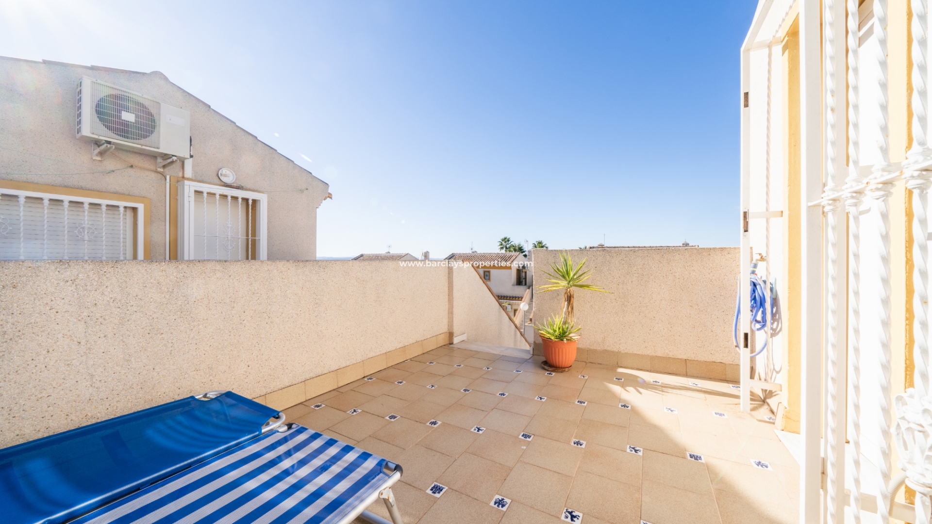 Située dans ✅une communauté privée de 16 propriétés, les résidents peuvent profiter des avantages d'une piscine commune, idéale pour se détendre et socialiser. Avec une place de parking pratique avec portail coulissant, un emplacement calme à seulement 7 minutes à pied des magasins, restaurants, banques, supermarchés, opticiens, cabinet médical et toutes les commodités, ainsi que des terrasses avant et arrière pour un ensoleillement toute la journée, cette maison offre à la fois confort et praticité. Idéalement située, la plage locale est à seulement 5 minutes en voiture et l'aéroport le plus proche pour les vols nationaux et internationaux se trouve à 25 minutes en voiture (Alicante-Elche).