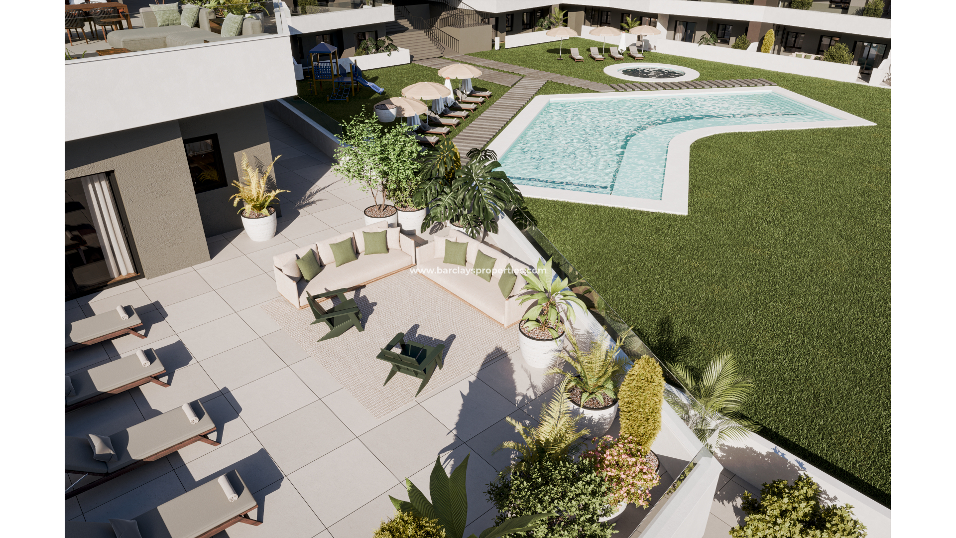 Découvrez ces superbes appartements neufs sur la Costa Blanca, offrant un design moderne et un confort exceptionnel. Choisissez entre des agencements de 2 ou 3 chambres avec 2 salles de bains, construits sur un seul niveau, avec des surfaces allant de 65m² à 96m² et des terrasses jusqu'à 126m². Profitez d'une cuisine ouverte, de fenêtres à double vitrage, de la climatisation préinstallée et du chauffage de l'eau par système aérothermique. Détendez-vous dans la piscine commune ou laissez les enfants s'amuser dans la pataugeoire et l'aire de jeux. Chaque unité comprend un parking souterrain, et l'immeuble dispose d'un ascenseur pour plus de commodité. Situés à seulement 300 mètres des commodités, à 10 km de la plage et à proximité de plusieurs terrains de golf, ces appartements sont idéaux pour vivre ou investir. Les prix commencent à 174 900 € et incluent une garantie de 10 ans, des électroménagers et un excellent potentiel locatif !