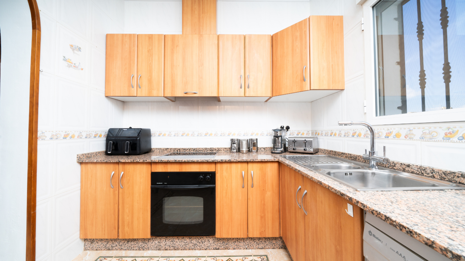 La cuisine indépendante bien équipée comprend une plaque de cuisson, un four et des plans de travail en granit.