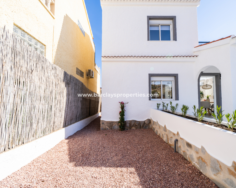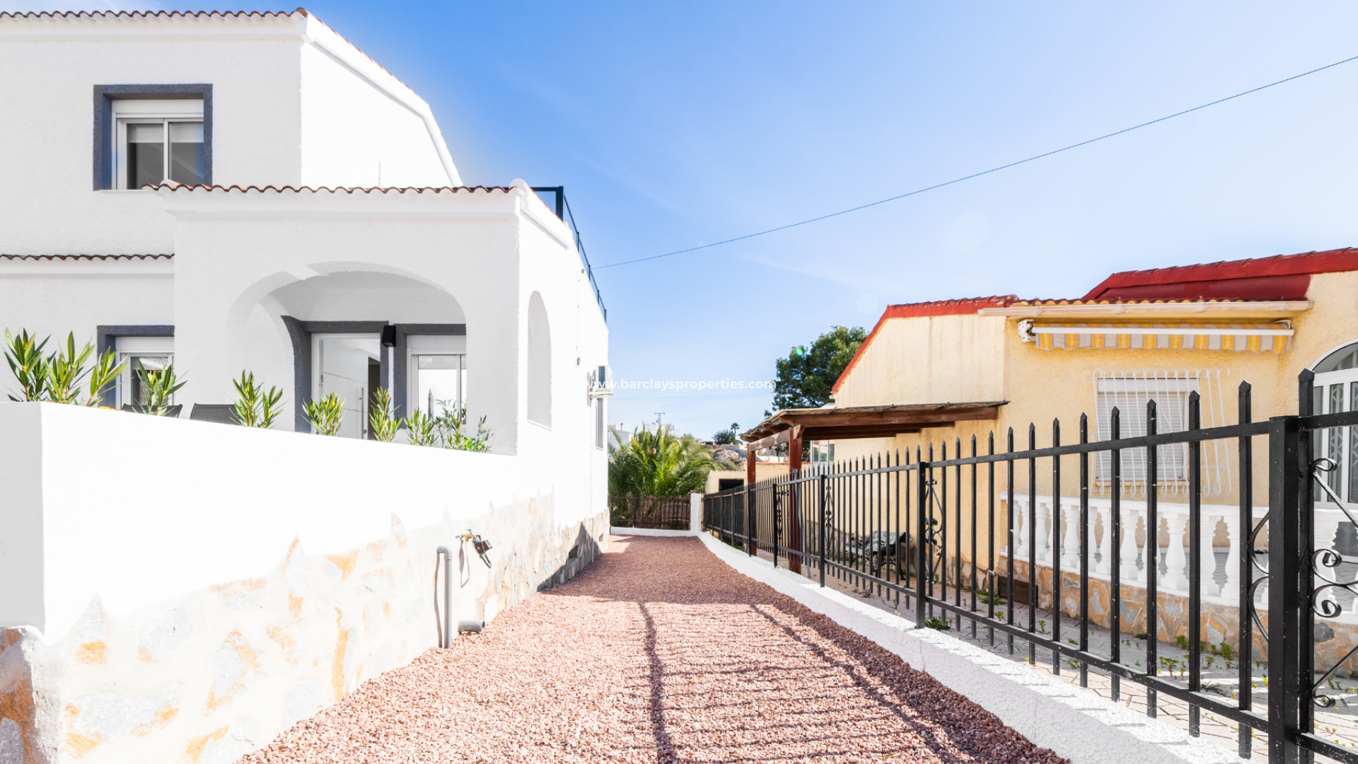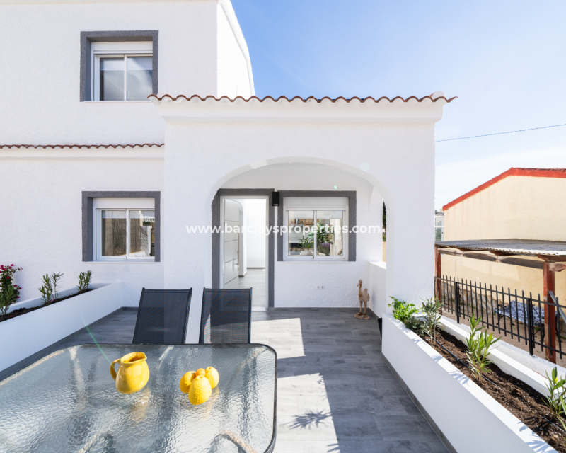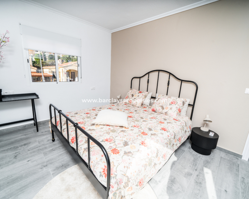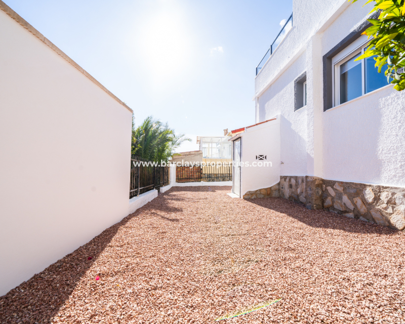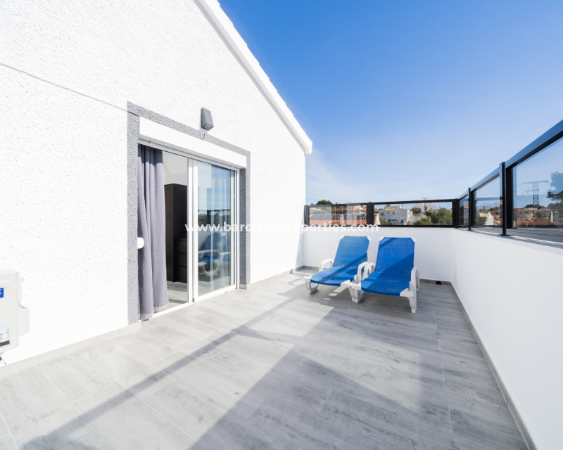 Les espaces extérieurs sont tout aussi impressionnants, avec des terrasses récemment carrelées, un système d'irrigation du jardin et beaucoup d'intimité. Le jardin arrière donne un accès direct à une zone verte sereine et offre une vue imprenable sur la ville voisine de Guardamar del Segura.