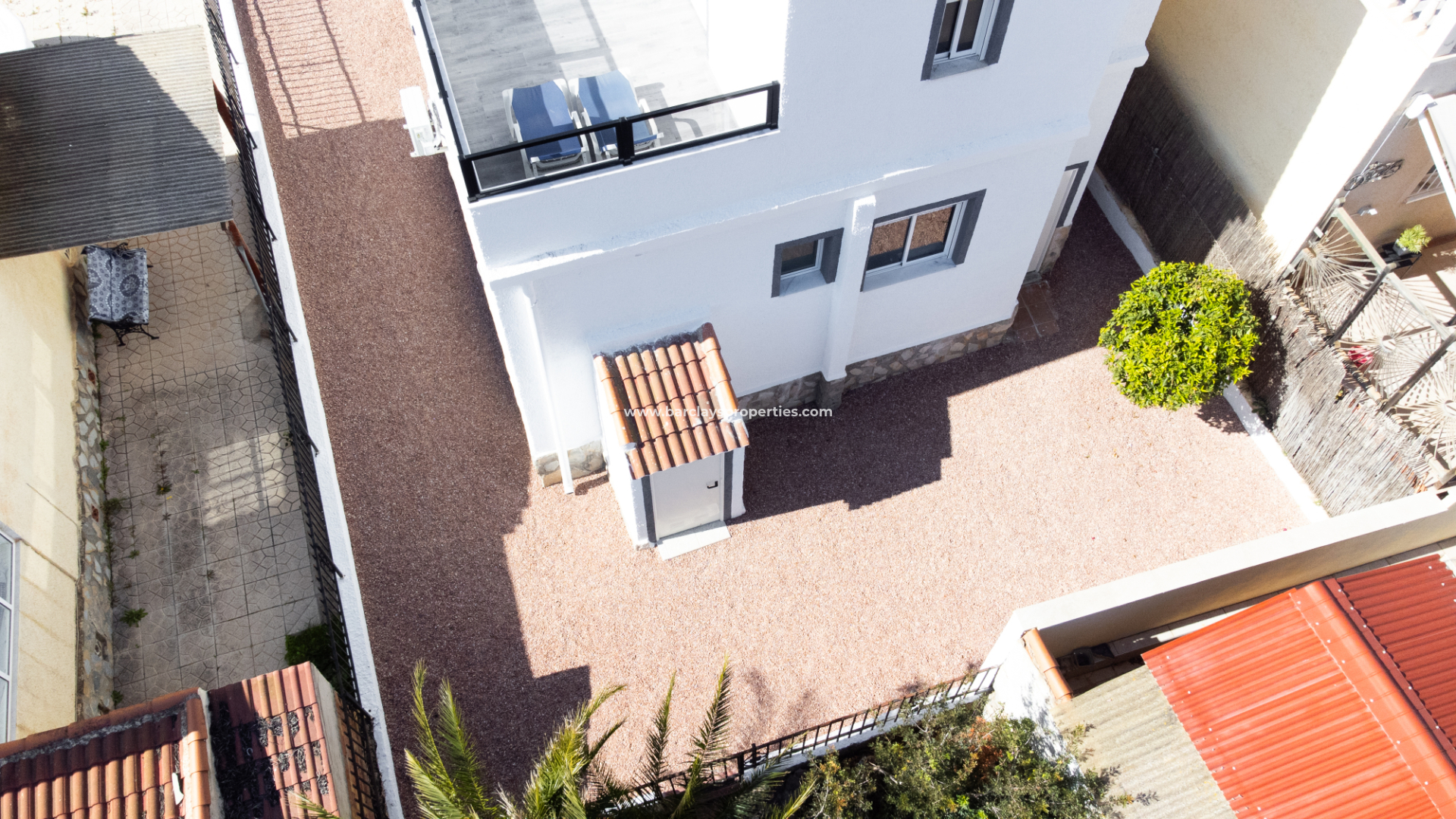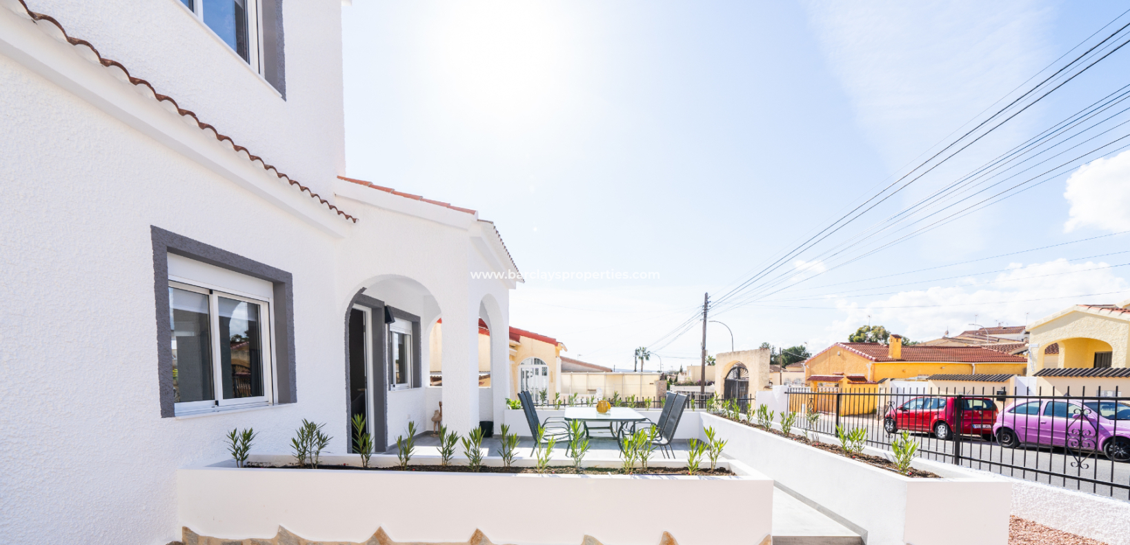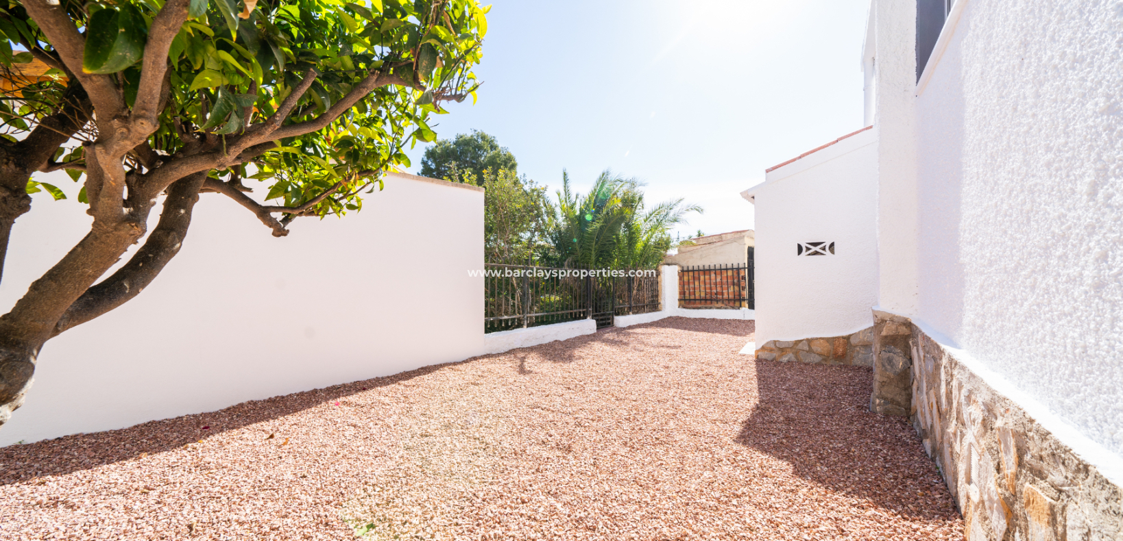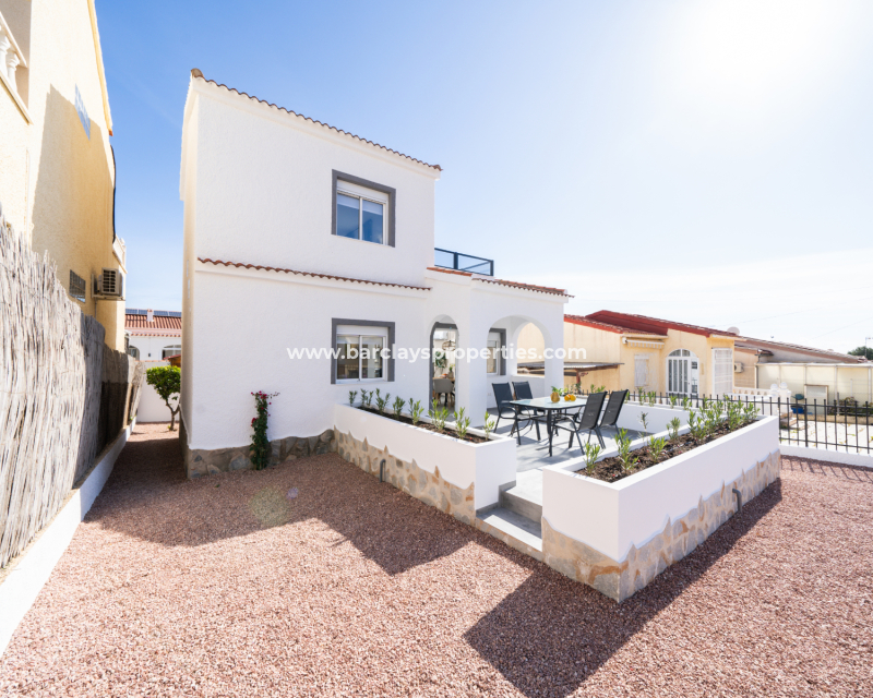 Les espaces extérieurs sont tout aussi impressionnants, avec des terrasses récemment carrelées, un système d'irrigation du jardin et beaucoup d'intimité. Le jardin arrière donne un accès direct à une zone verte sereine et offre une vue imprenable sur la ville voisine de Guardamar del Segura.
