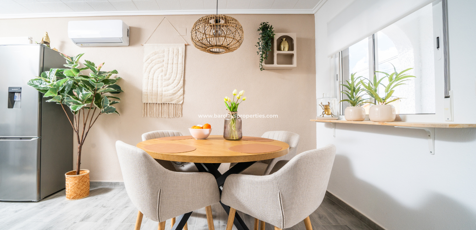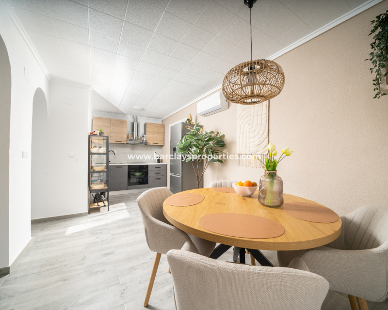 À l'intérieur, la maison dispose de deux climatiseurs neufs pour un confort tout au long de l'année. Le salon et la salle à manger s'ouvrent harmonieusement sur la cuisine ouverte, moderne, mentionnée ci-dessus. Également au rez-de-chaussée, nous trouvons une chambre double et une salle d'eau moderne avec un miroir LED.
