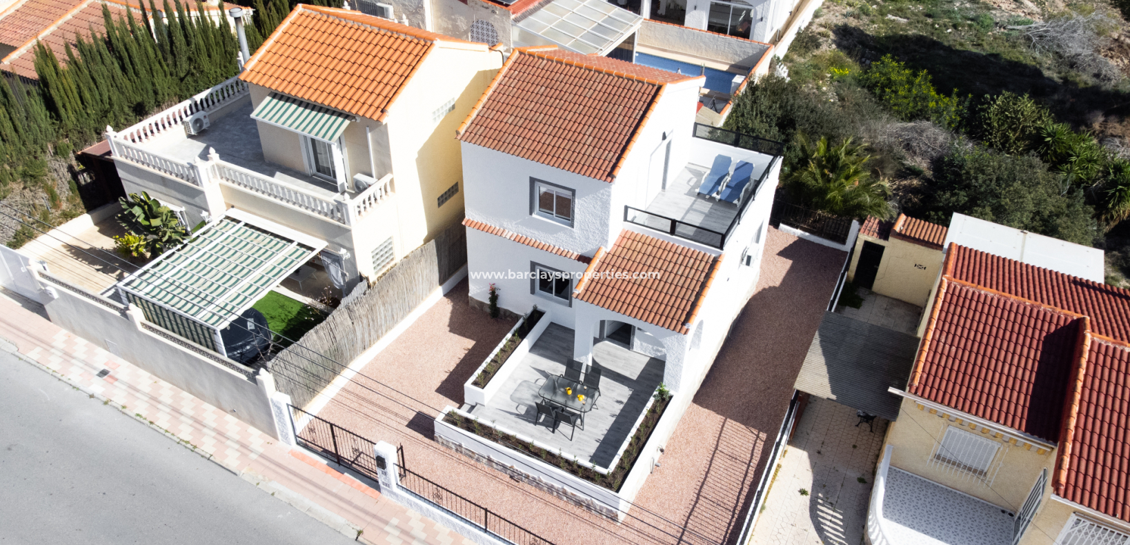 Cette villa “Lola” magnifiquement rénovée et agrandie offre une orientation à l'ouest à l'avant et à l'est à l'arrière, garantissant du soleil toute la journée et des caractéristiques exceptionnelles, ce qui en fait une propriété remarquable tant pour y vivre que pour investir. Située à proximité de la plage de "la Marina Village" (à 5 minutes en voiture), du populaire Hillside Bar/restaurant, de la piscine extérieure et de toutes les commodités, cette maison élégante allie beauté naturelle et commodité, en faisant un véritable joyau rare.
