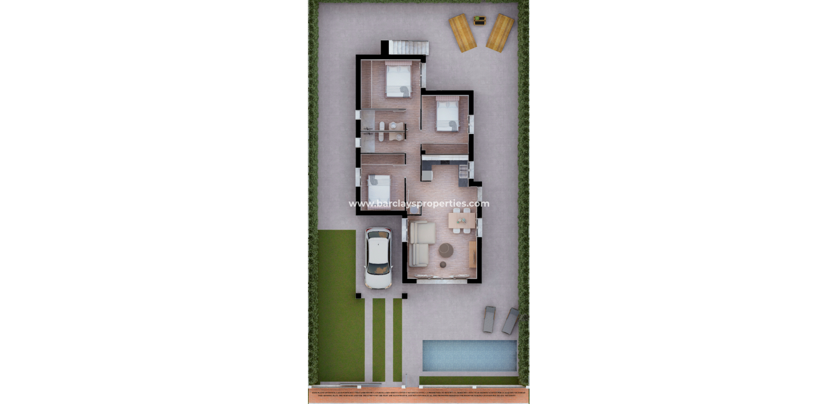 Chaque villa dispose de 3 chambres spacieuses et de 2 salles de bains modernes, idéales pour les familles ou ceux recherchant un havre de paix. Le design ouvert permet une vie fluide, tandis que la piscine privée et le garage offrent à la fois détente et sécurité. La climatisation et les appareils électroménagers inclus garantissent un environnement de vie confortable tout au long de l'année.
