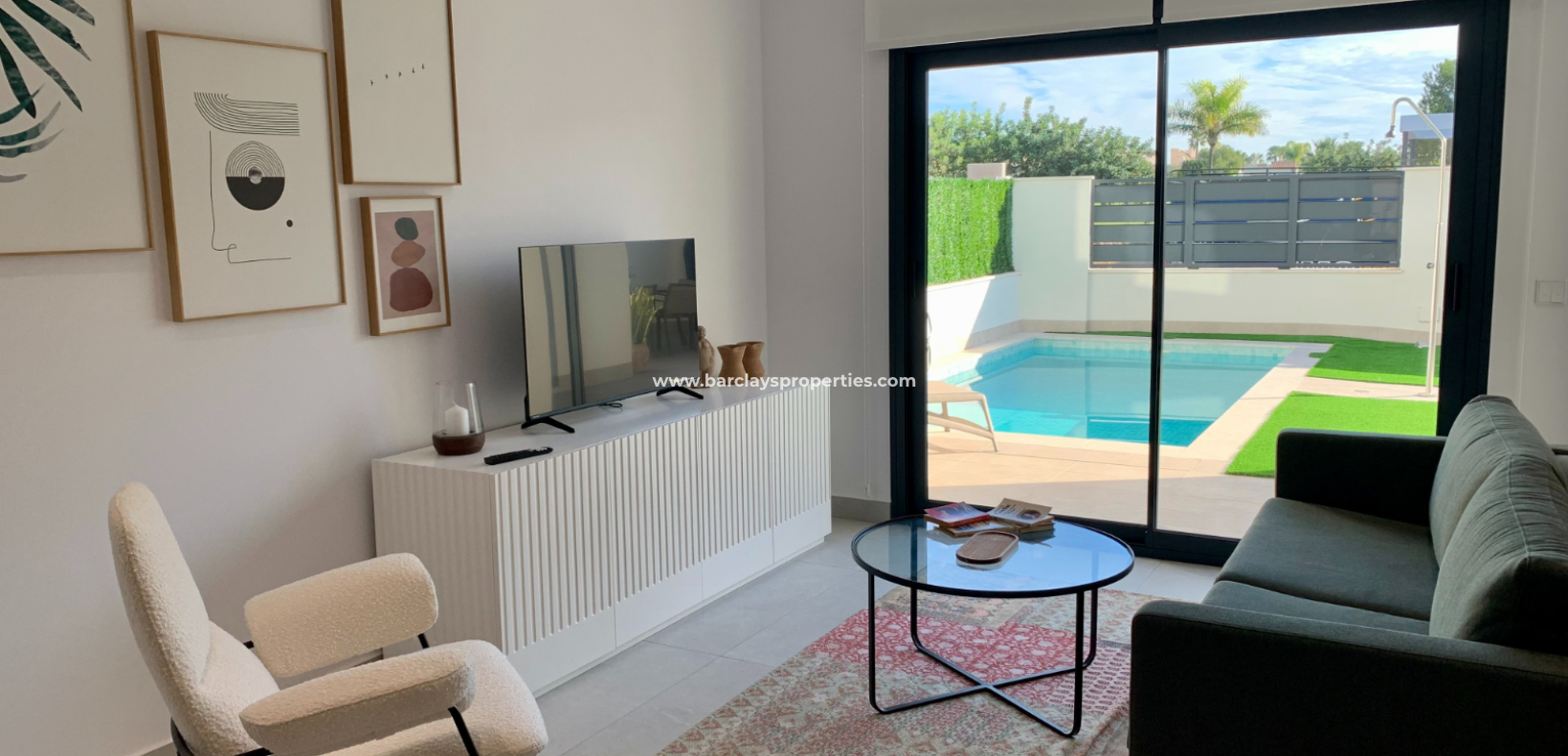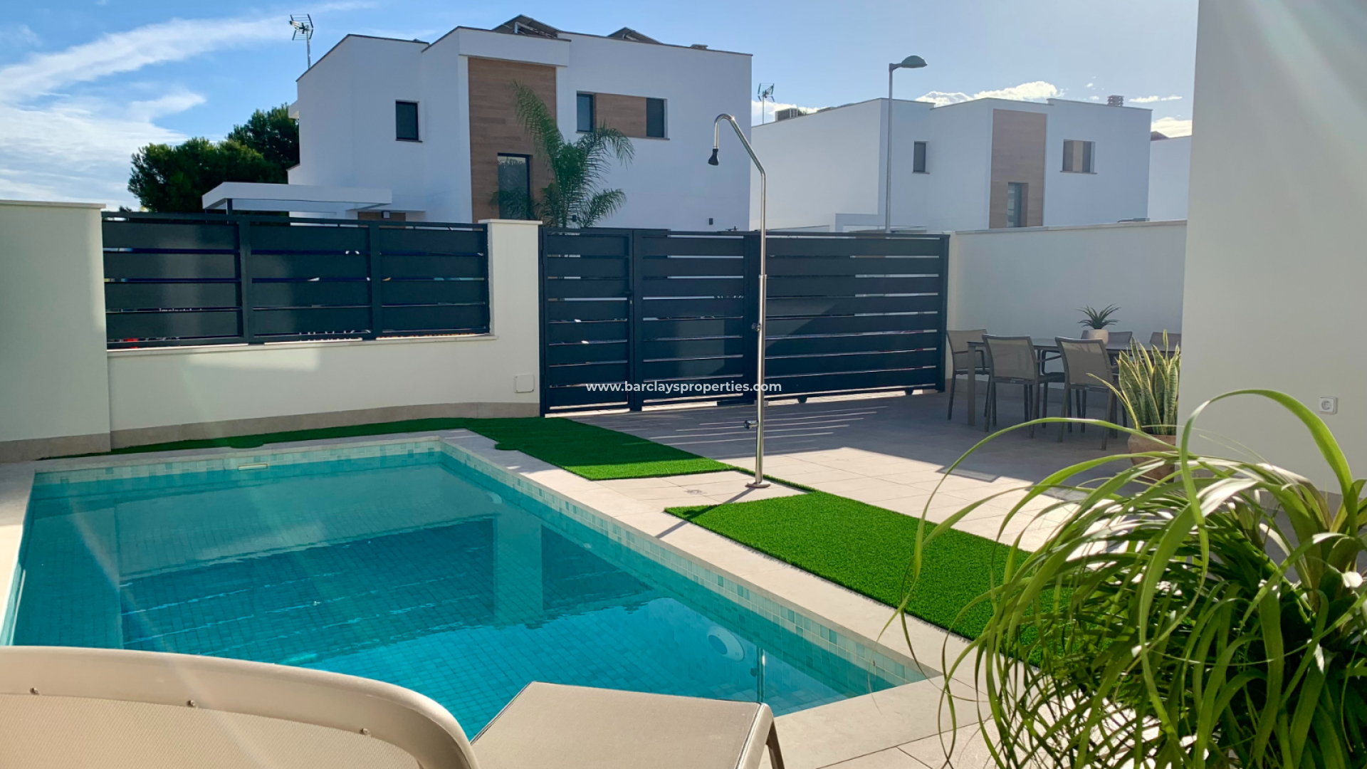 Découvrez ces superbes villas neuves situées dans le quartier prisé de Roda Golf, San Javier. ➡️ Offrant 3 chambres et 3 salles de bain sur 127 m² d’espace de vie sur un terrain de 192 m², ces maisons contemporaines sont conçues pour le confort et le style. La cuisine ouverte se connecte harmonieusement à l’espace de vie spacieux, tandis que de grandes fenêtres à double vitrage laissent entrer la lumière naturelle. ➡️ Profitez d’une piscine privée, d’un solarium sur le toit et d’une douche extérieure pour les journées estivales. Parmi les autres caractéristiques figurent des volets électriques, des électroménagers, un système de chauffage de l’eau par panneau solaire et une pré-installation pour la climatisation. Dans un cadre paisible mais bien desservi, ces villas se trouvent à seulement 3,8 km de la plage, 2,5 km des commodités et 1 km du terrain de golf. Un parking, un point de recharge pré-installé pour voitures électriques et une garantie de 10 ans complètent cette offre exceptionnelle, idéale pour vivre ou investir dans la location.