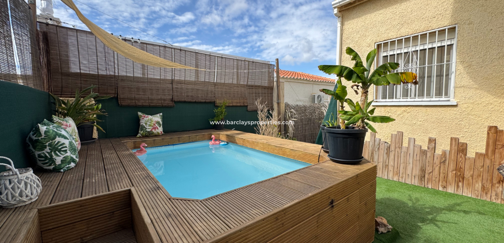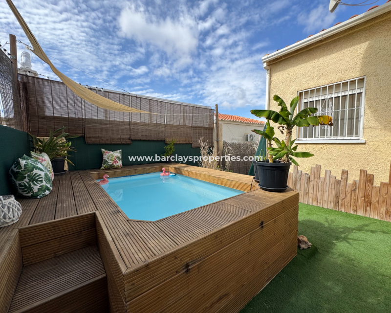 Dans le jardin arrière, vous trouverez une superbe petite piscine surélevée de type "dip pool", idéale pour se rafraîchir pendant les chaudes journées d’été.