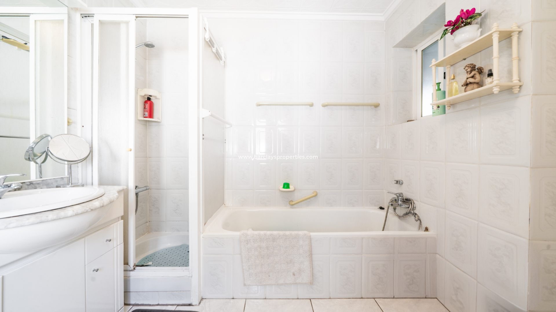 La propriété est un modèle « Lola » très apprécié, agrandie pour offrir un intérieur spacieux comprenant trois chambres doubles et deux salles de bains. Deux des chambres disposent de placards intégrés ; l’une des salles de bains est équipée d’une baignoire avec douche, et l’autre d’une douche à l’italienne pour plus de confort.