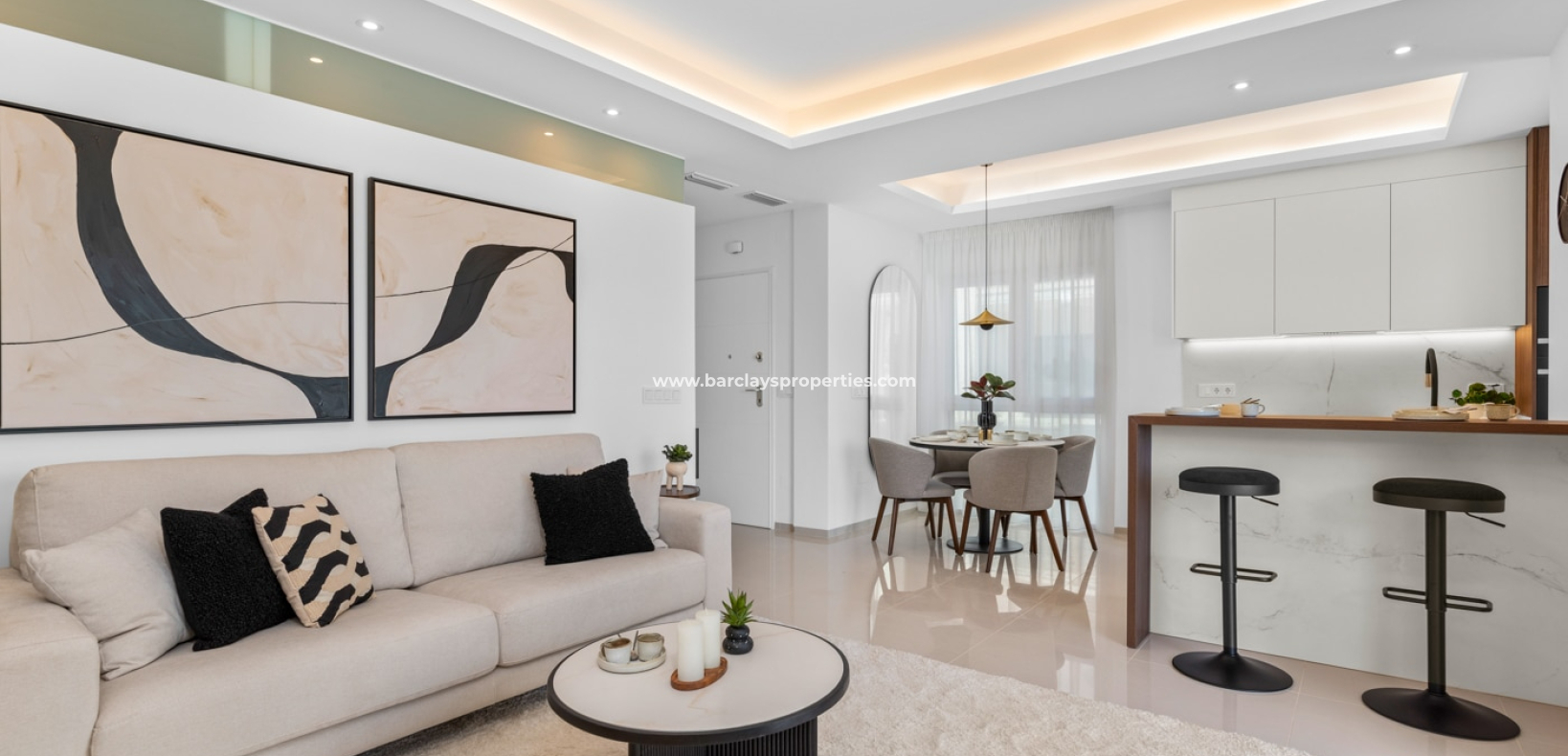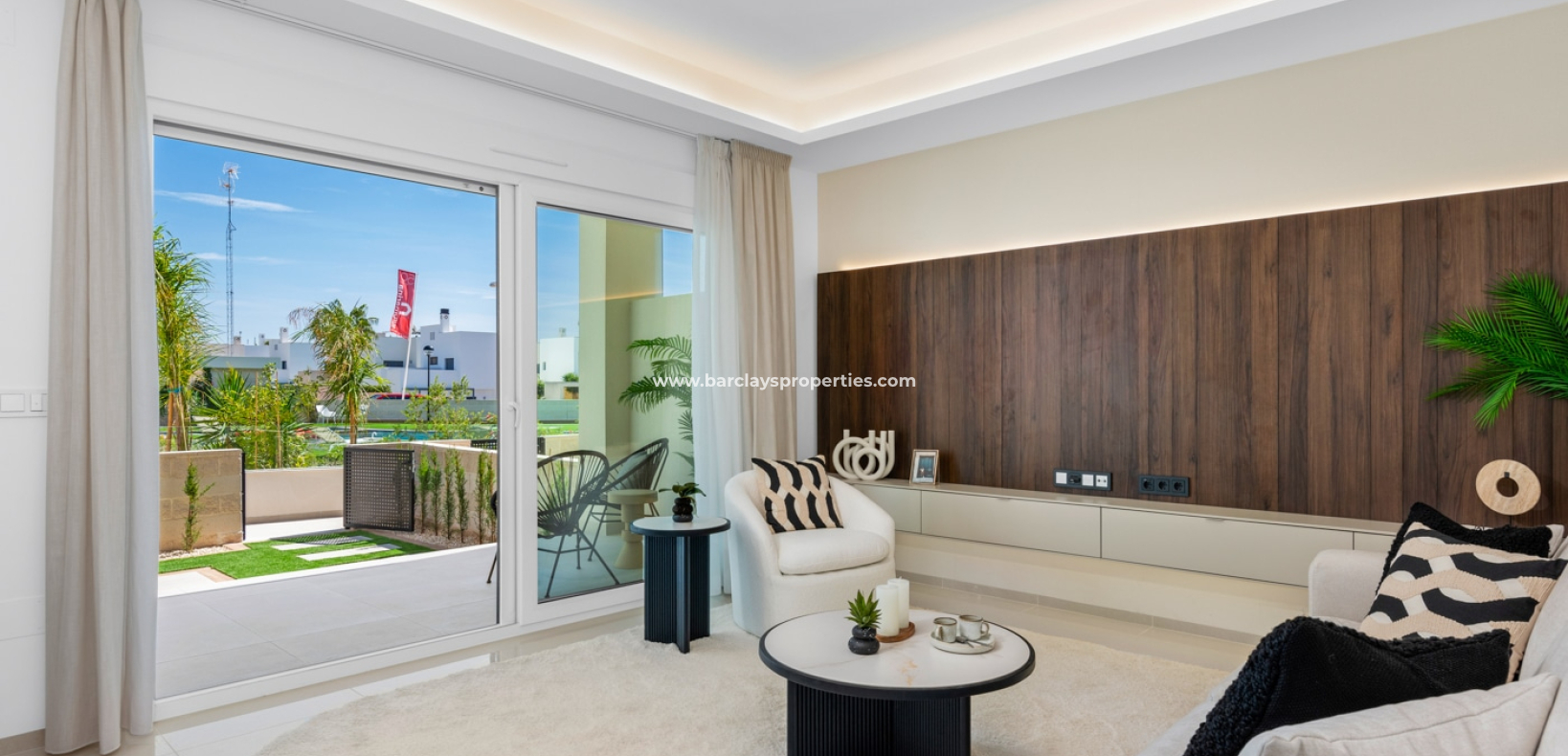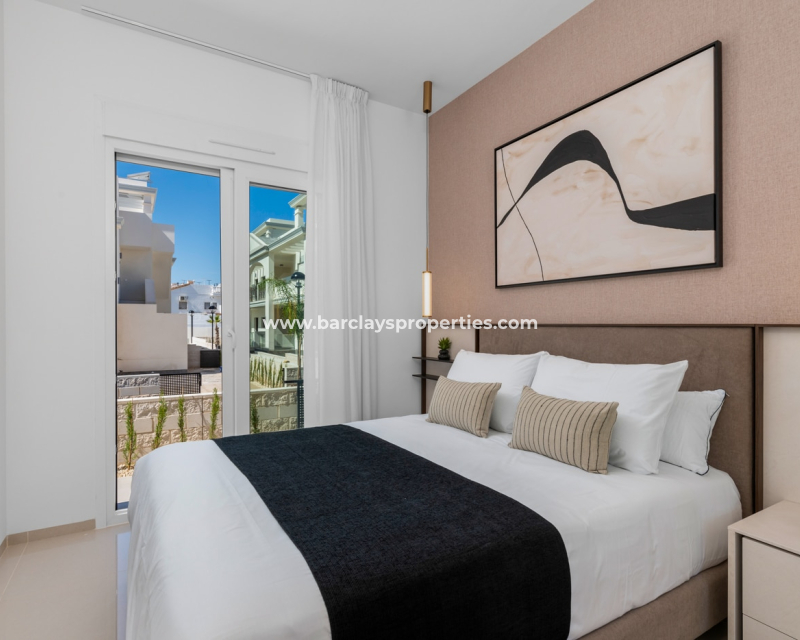 Ces élégants appartements de 2 chambres et 2 salles de bains offrent 79 m² d’espace de vie bien conçu de plain-pied, avec une cuisine ouverte, des fenêtres à double vitrage, ➡️ et un accès à une magnifique piscine commune. Situés dans une communauté privée calme mais bien reliée, à seulement 6 km de la plage, 4 km du golf, 1 km de toutes les commodités et 54 km de l’aéroport. ➡️ Chaque appartement comprend un parking privé et un excellent potentiel locatif. Deux agencements sont disponibles : choisissez entre 2 ou 3 chambres. Les modèles au rez-de-chaussée disposent de grands jardins privés de 90 à 155 m², tandis que les appartements à l’étage bénéficient de solariums privés sur le toit – parfaits pour profiter du climat méditerranéen.