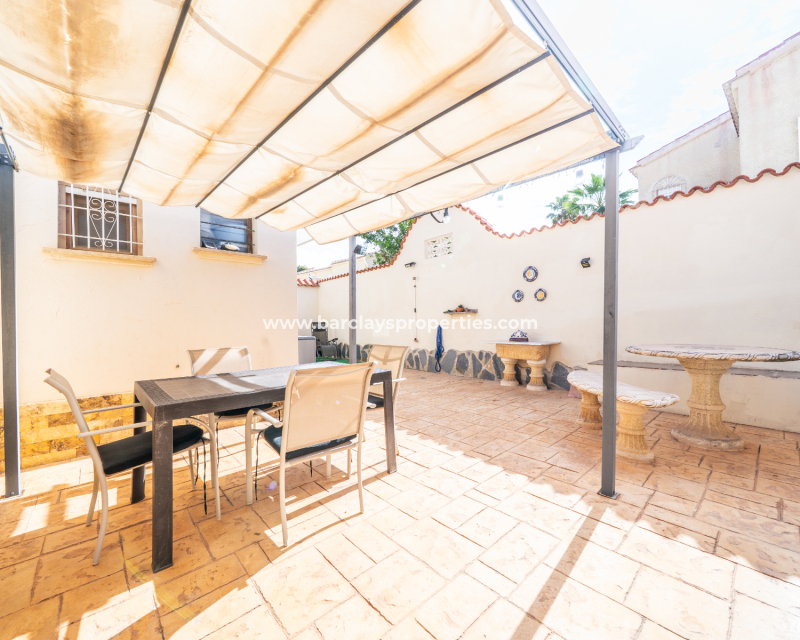 Située dans la prisée urbanisation La Marina à San Fulgencio, cette charmante maison bien entretenue offre à la fois confort et praticité. À seulement cinq minutes à pied des commodités locales, elle bénéficie d’un emplacement idéal, à quelques minutes en voiture des plages dorées de La Marina et à seulement 25 minutes de l’aéroport d’Alicante.