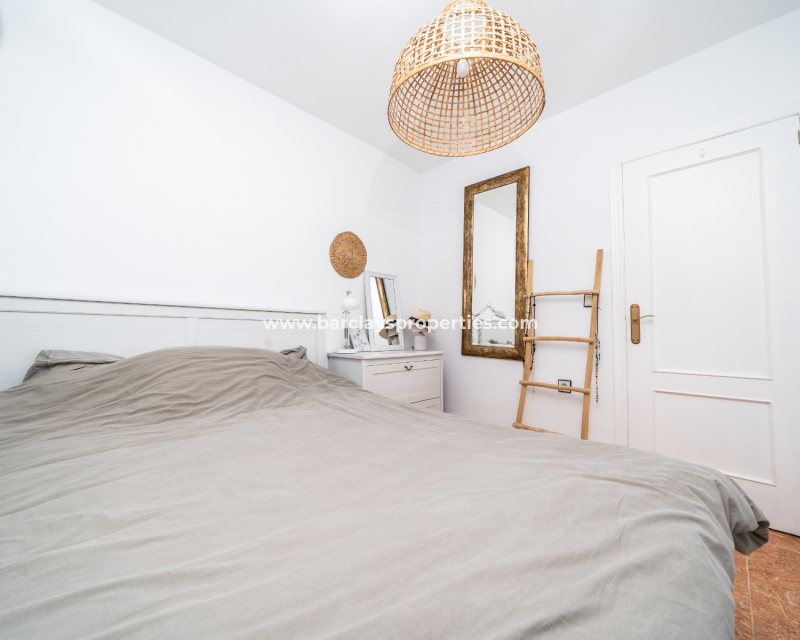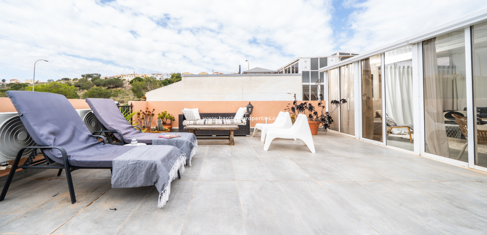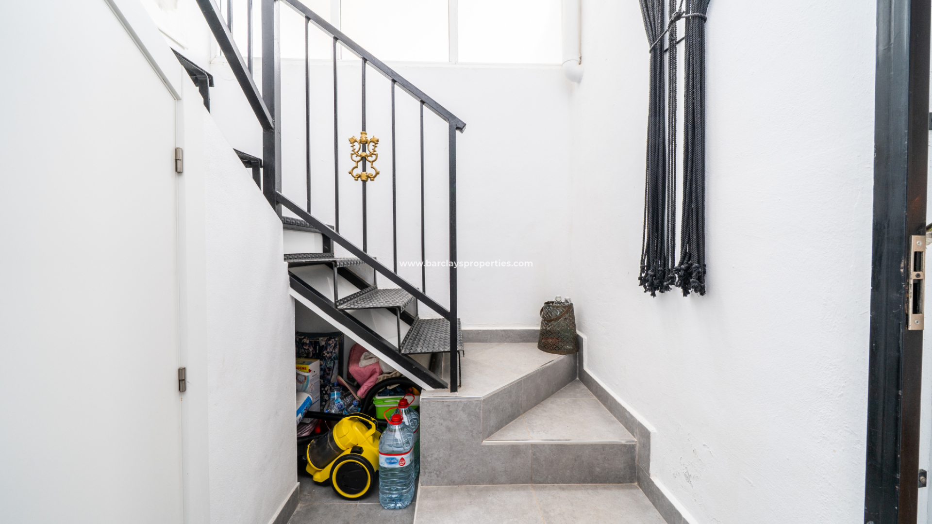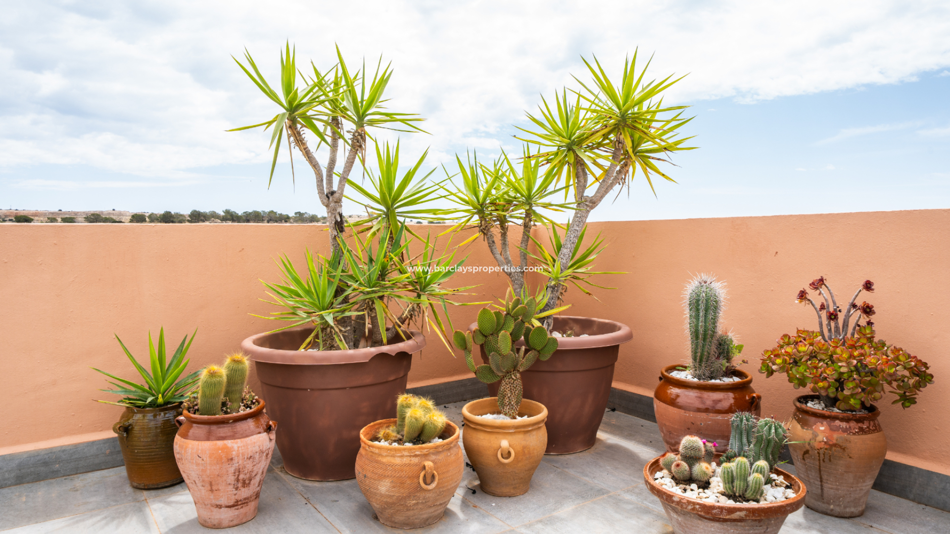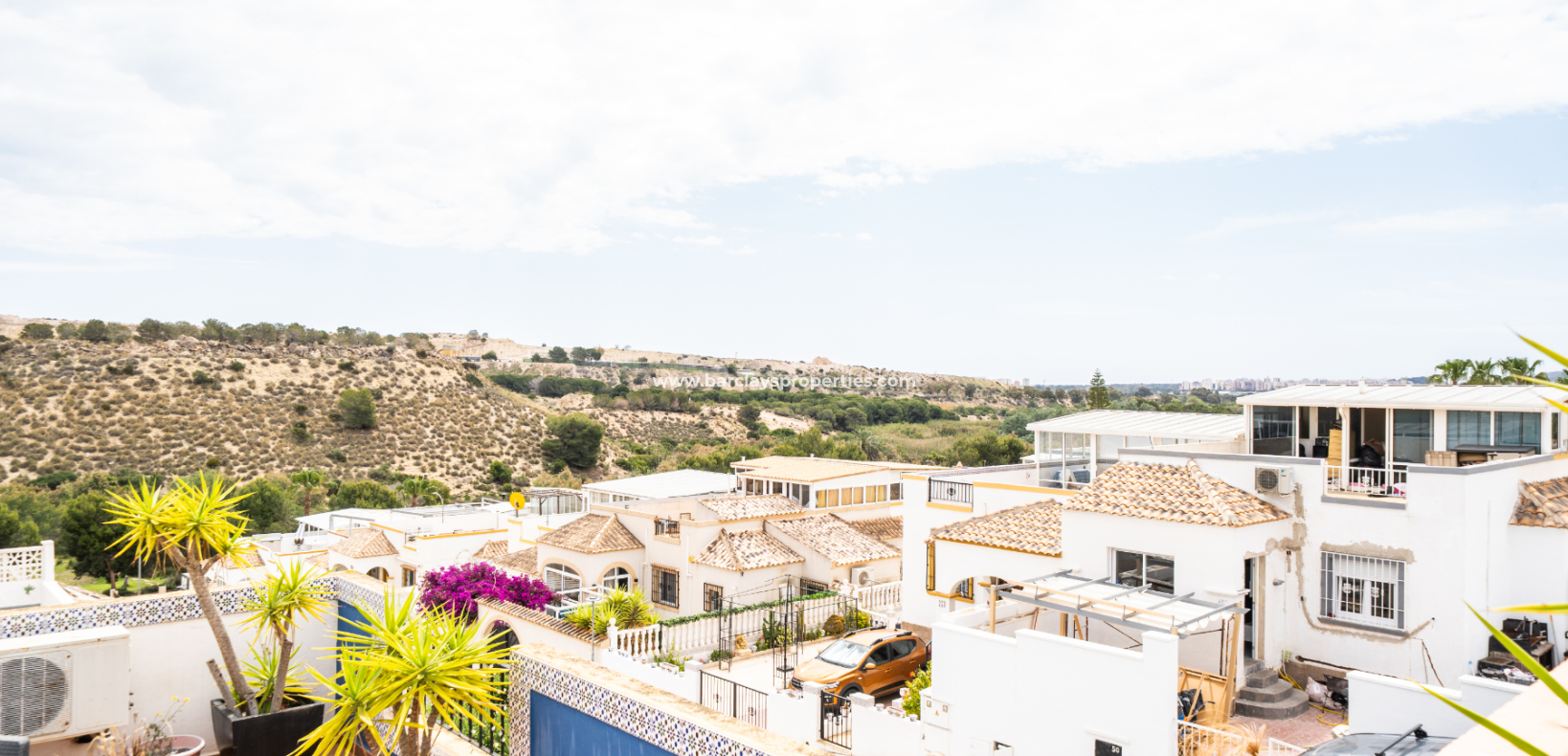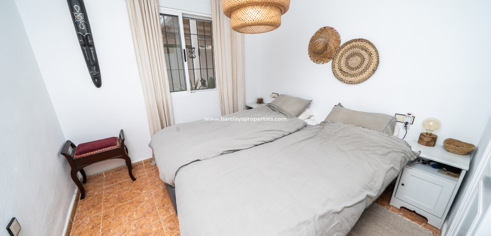 L’un des grands atouts de cette maison est la véranda spacieuse, qui a été agrandie pour offrir un espace de vie supplémentaire lumineux – idéal pour les repas, la détente ou recevoir des invités. Le solarium a été récemment carrelé et comprend un espace de rangement supplémentaire, avec une vue dégagée vers la ville voisine de Guardamar del Segura.
