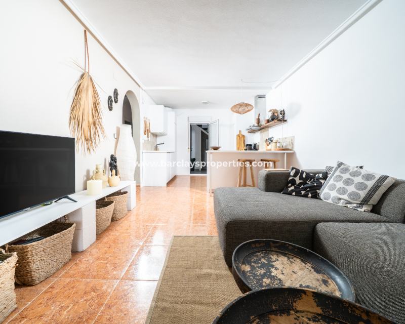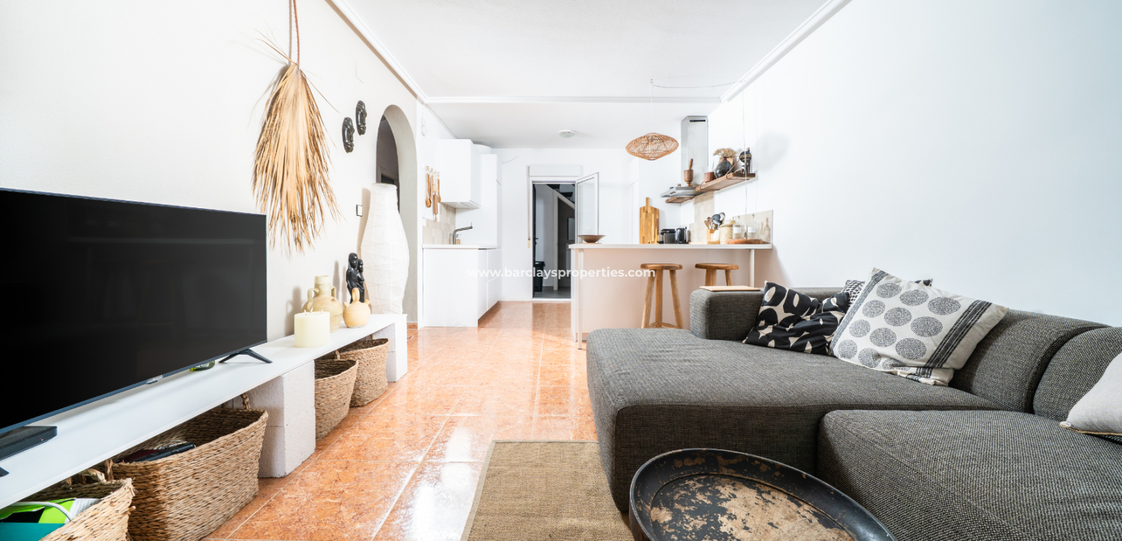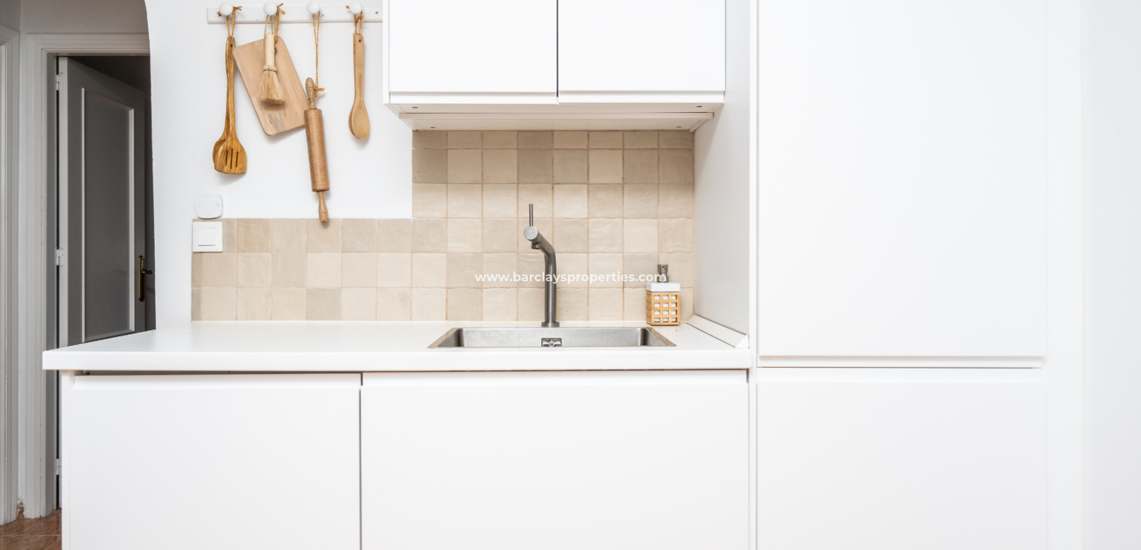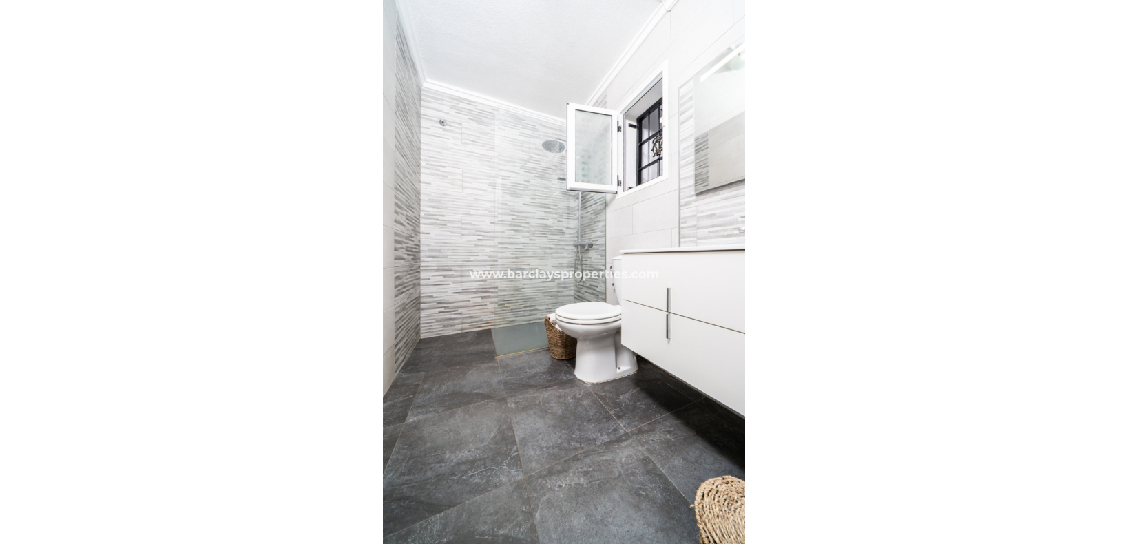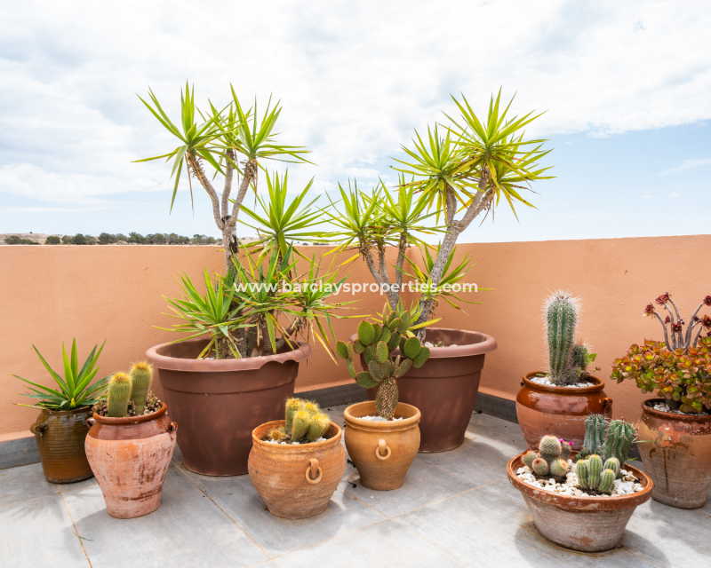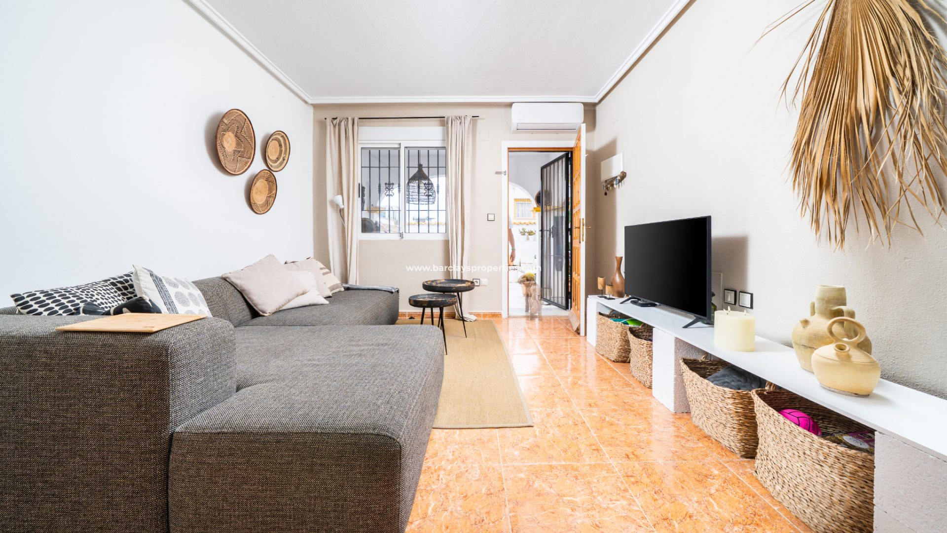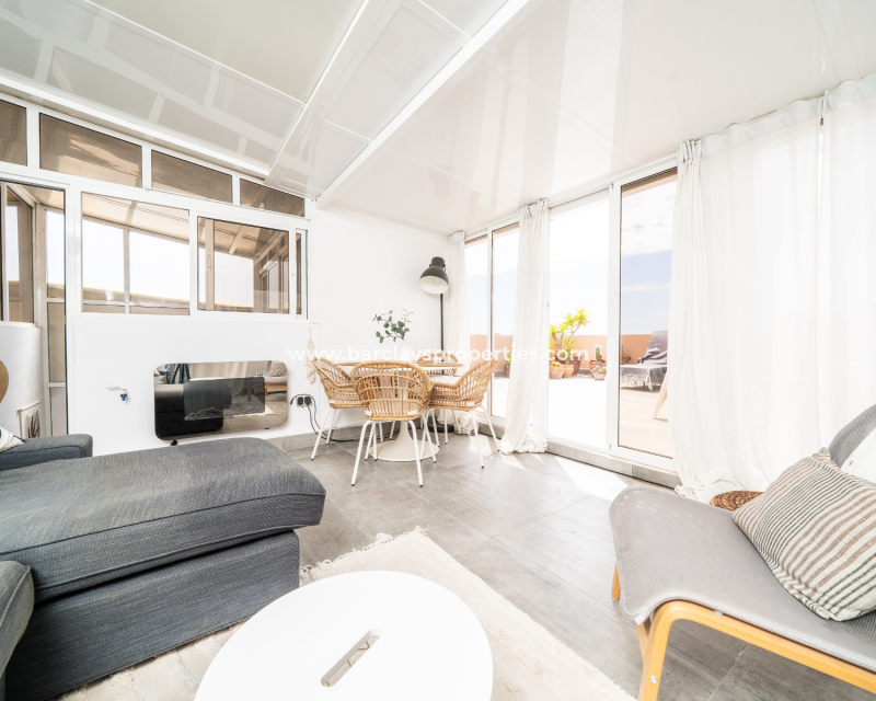 L’un des grands atouts de cette maison est la véranda spacieuse, qui a été agrandie pour offrir un espace de vie supplémentaire lumineux – idéal pour les repas, la détente ou recevoir des invités. Le solarium a été récemment carrelé et comprend un espace de rangement supplémentaire, avec une vue dégagée vers la ville voisine de Guardamar del Segura.