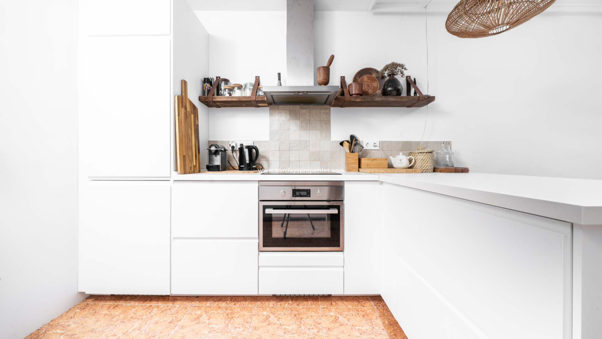 Un porche couvert mène à l’intérieur de la maison, où se trouve un salon lumineux équipé de la climatisation, qui s’ouvre sur ✅une cuisine ouverte récemment rénovée avec des appareils modernes, un pratique coin petit-déjeuner et une buanderie séparée. Des toilettes invités avec lavabo et WC sont idéalement situées sous l’escalier.