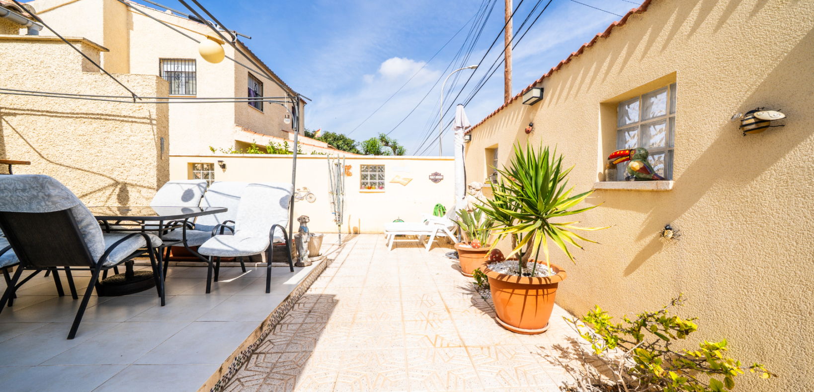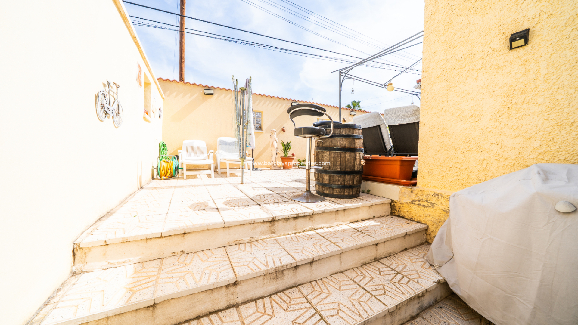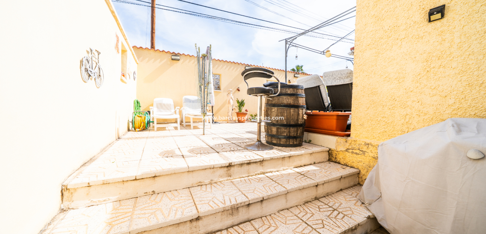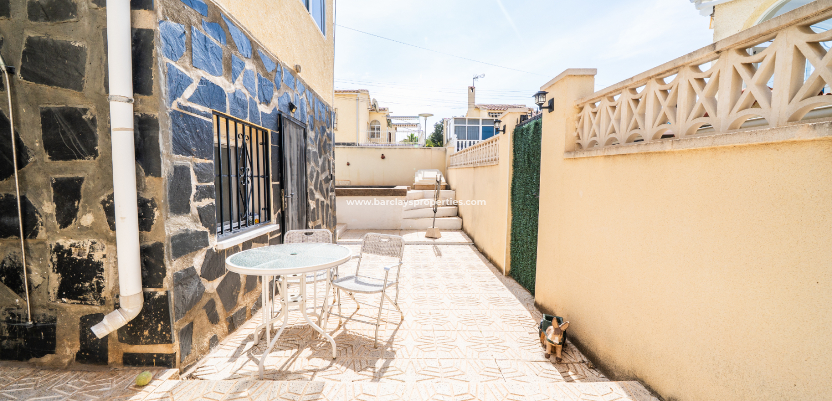 Cette charmante villa individuelle est située dans la populaire urbanisation La Marina, à seulement 5–10 minutes à pied de nombreux commerces et commodités, et à seulement cinq minutes en voiture des plages dorées de “Playa De La Marina”.