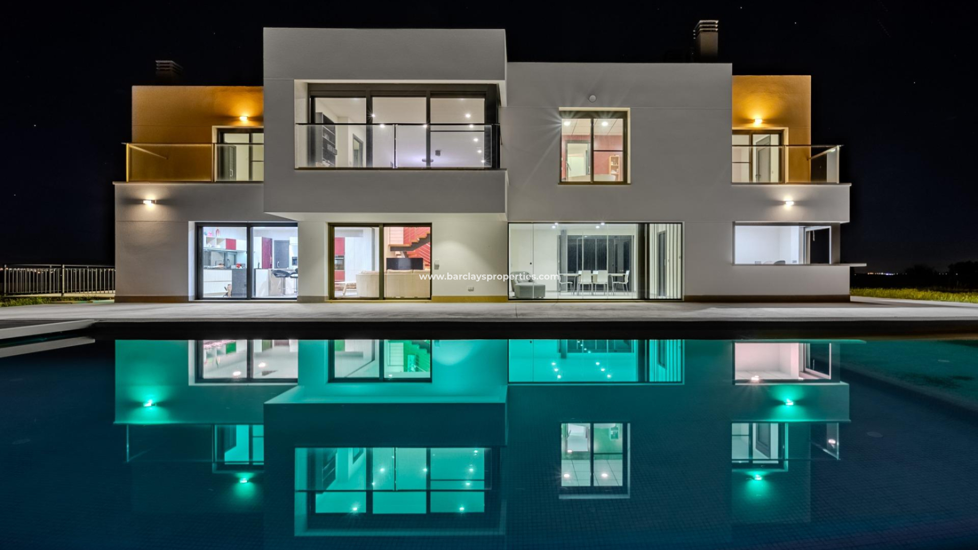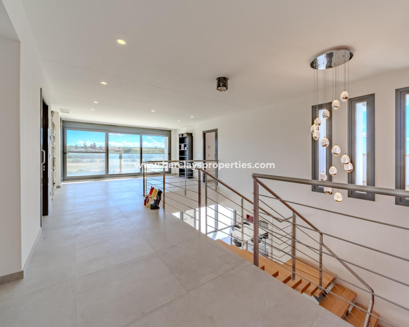 Cette extraordinaire villa de 5 chambres et 5 salles de bain à La Marina del Pinet (Elche) allie vie de luxe et fonctionnalité moderne ➡️ sur trois étages et 424 m² de surface construite, implantée sur un vaste terrain de 10 602 m². Construite en 2016 et bénéficiant d'une exposition plein sud, la maison offre une vue imprenable à 360° sur la campagne et les montagnes, à seulement 5 km de la plage et 25 km de l'aéroport d'Alicante. Le design spacieux à aire ouverte, rehaussé par des matériaux de première qualité, ➡️ un ascenseur privé, un sous-sol et des fonctionnalités d'accessibilité avancées, assure à la fois confort et élégance. Les points forts comprennent une cuisine design avec un îlot central et des appareils haut de gamme, un salon qui s'ouvre sur une vaste terrasse et une cuisine d'été avec barbecue, et ➡️ un espace bien-être complet avec une piscine de 12 x 6 m, un jacuzzi surélevé et une douche extérieure solaire.