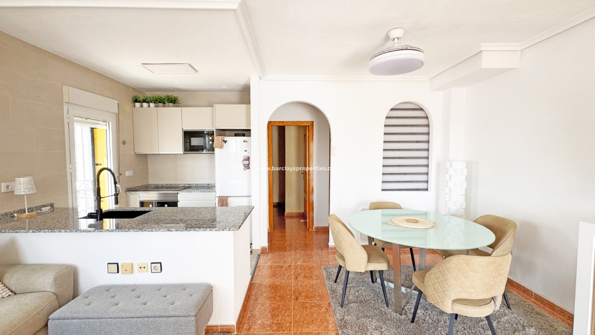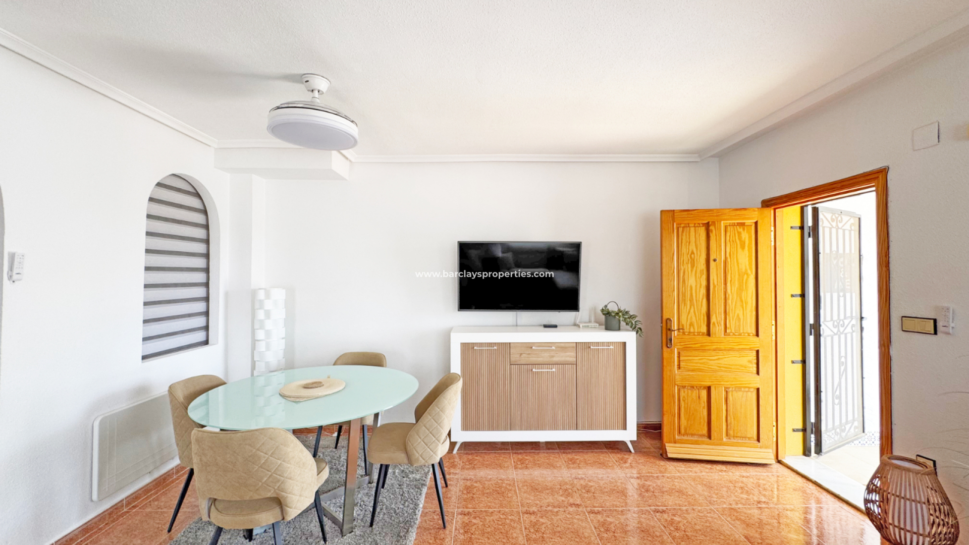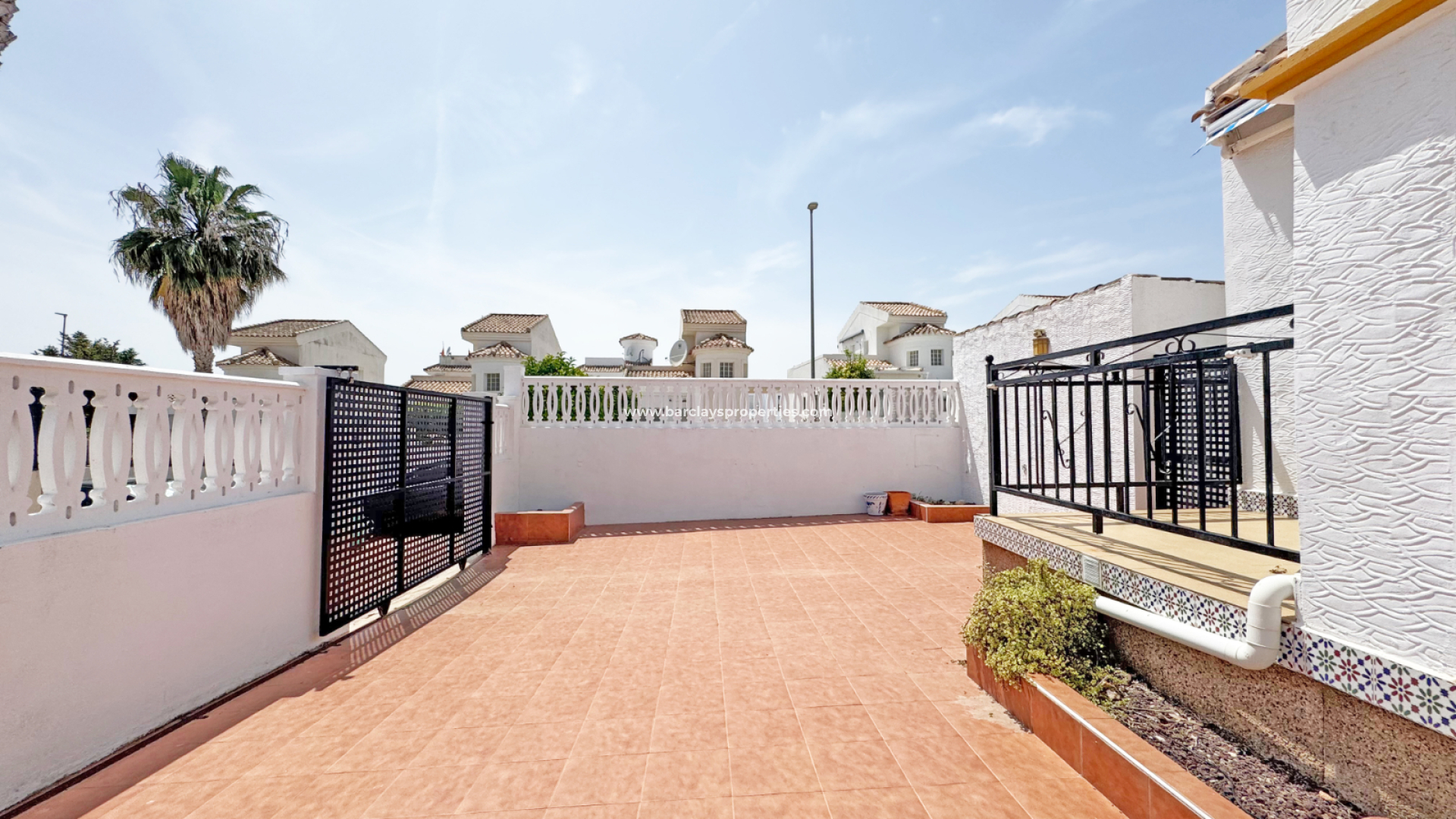 Un solarium privé situé sur le toit couronne la propriété et offre une vue imprenable sur la campagne, les montagnes et jusqu’à Guardamar. Grâce à son orientation sud-ouest, la maison bénéficie d’une excellente luminosité et d’un bon ensoleillement tout au long de la journée.