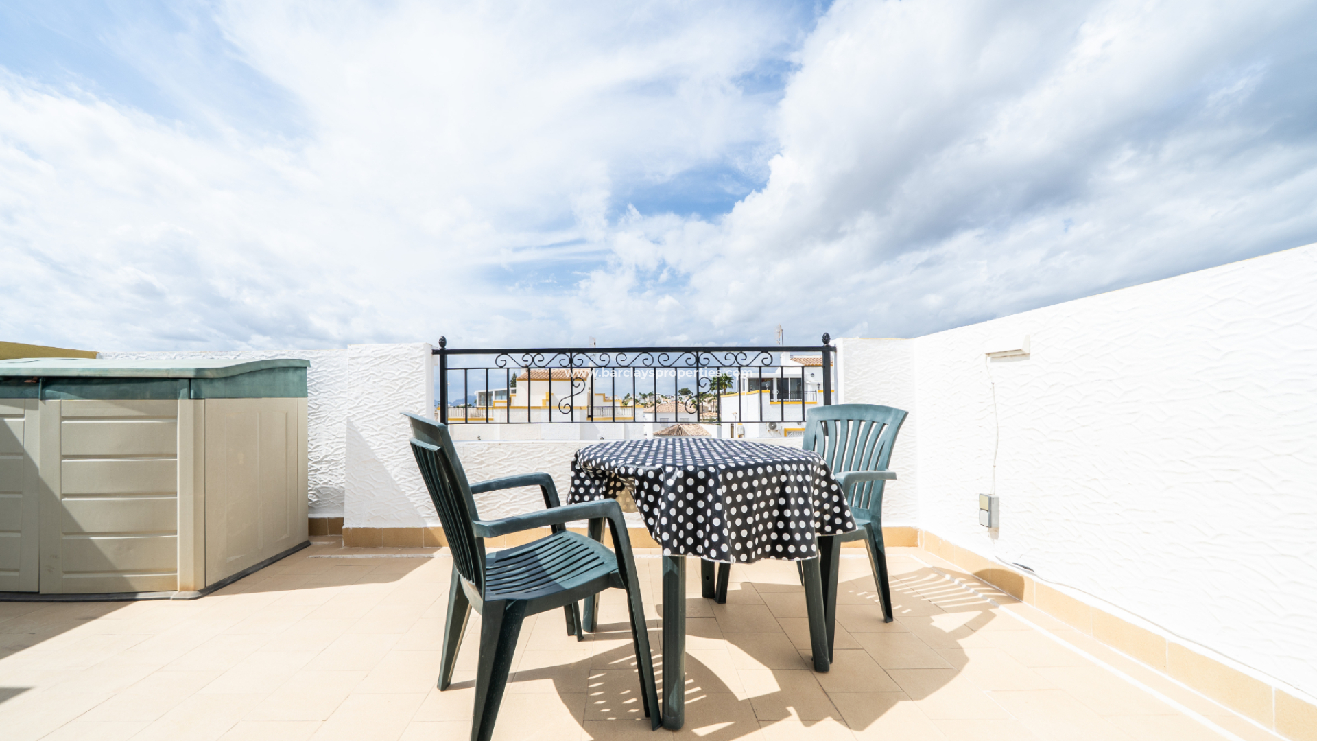 Ce quad entièrement meublé à La Marina offre 3 chambres et 2 salles de bains sur 83 m² de surface habitable sur une parcelle de 72 m². Dotée d'une cuisine rénovée, de la climatisation, de fenêtres à double vitrage, de ventilateurs de plafond et d'électroménagers inclus, la propriété dispose également d'un solarium sur le toit, d'un espace barbecue et d'un accès à une piscine communautaire. Située à seulement 3 km de la plage, 25 km de l'aéroport, 10 km des terrains de golf à proximité et à seulement 150 mètres des commodités locales, elle offre de belles vues et un cadre paisible tout en offrant un excellent potentiel locatif.