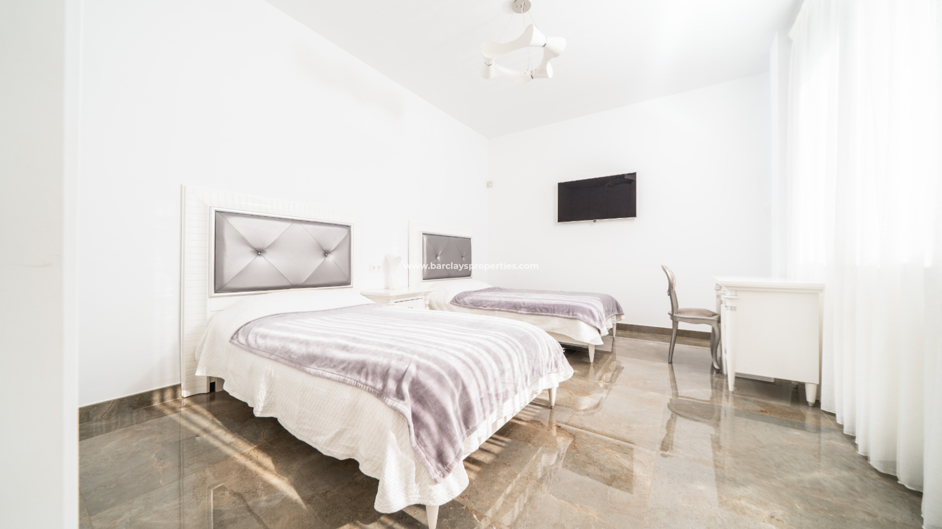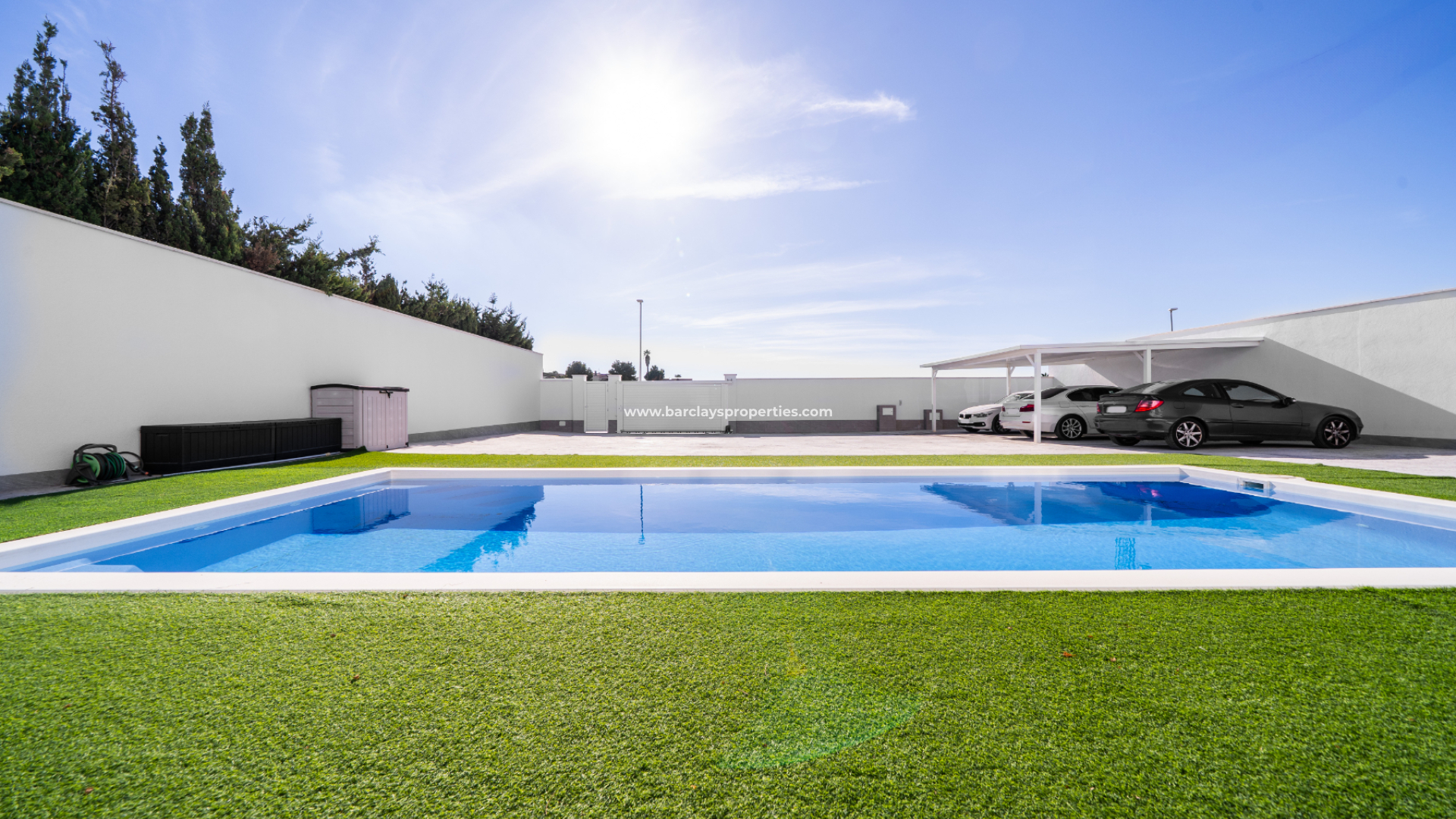 Cette villa contemporaine impressionnante, située dans l’urbanisation La Escuera à San Fulgencio, offre le parfait équilibre entre design moderne, espace et confort – à seulement trois minutes en voiture de la plage de La Marina et vingt-cinq minutes de l’aéroport d’Alicante-Elche. ✅Construite en 2021 sur un terrain de 826 m², elle bénéficie d’une superficie habitable remarquable de 404 m² ainsi que d’une piscine de 10 x 4,25 mètres entourée de gazon artificiel facile d’entretien – idéale pour se détendre et profiter des moments en plein air.