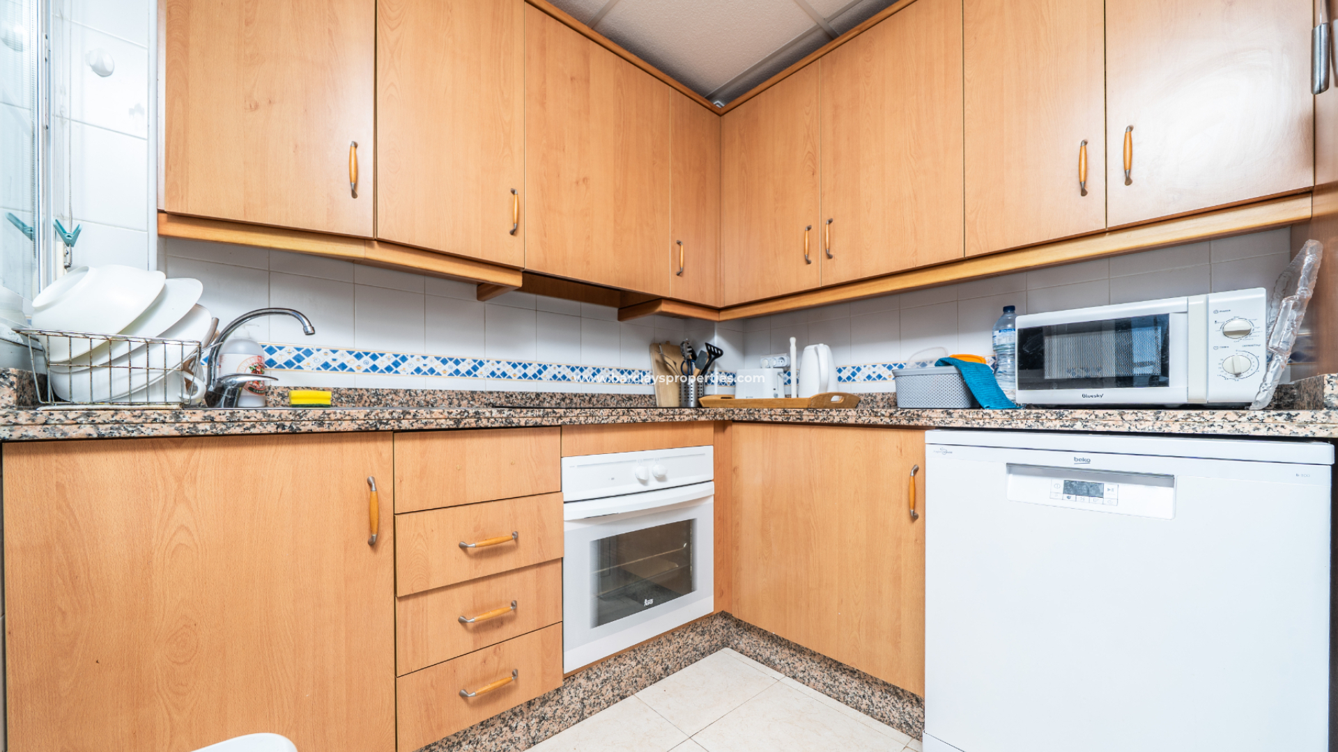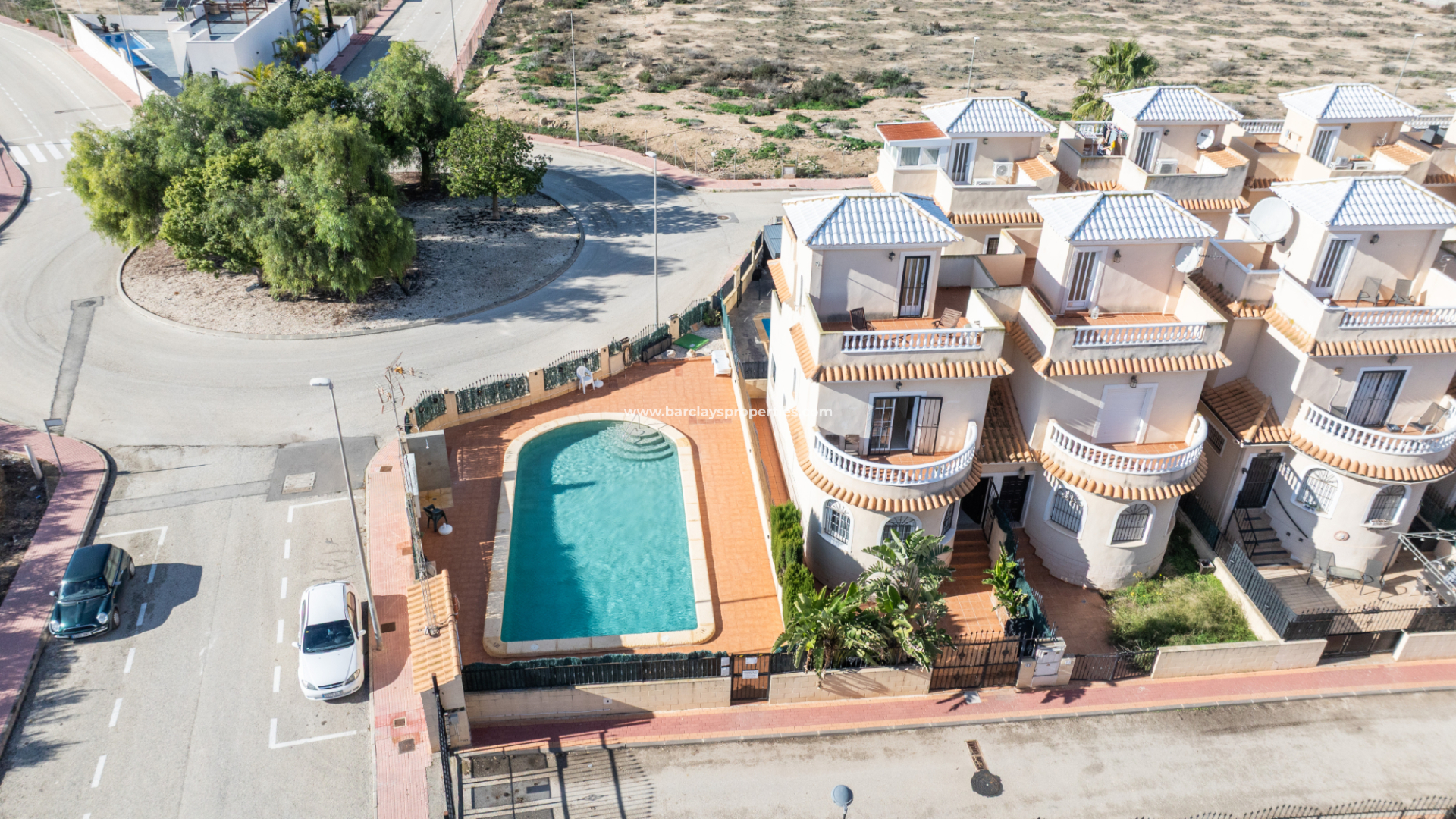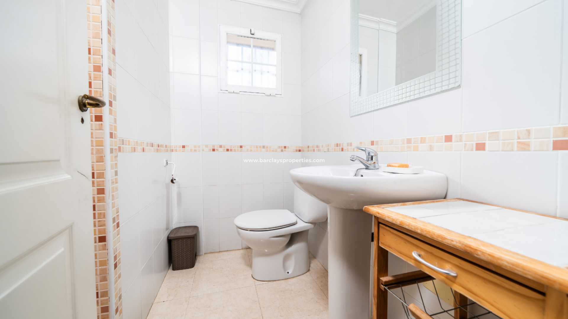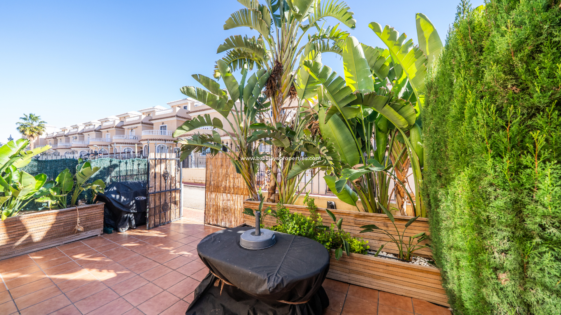 À l'extérieur, le jardin est entièrement pavé et carrelé pour un entretien facile et comprend un abri de rangement utile. Les résidents ont également ➡️ accès à une piscine communautaire bien entretenue située juste à côté de la villa, créant un cadre idéal pour profiter du climat espagnol.