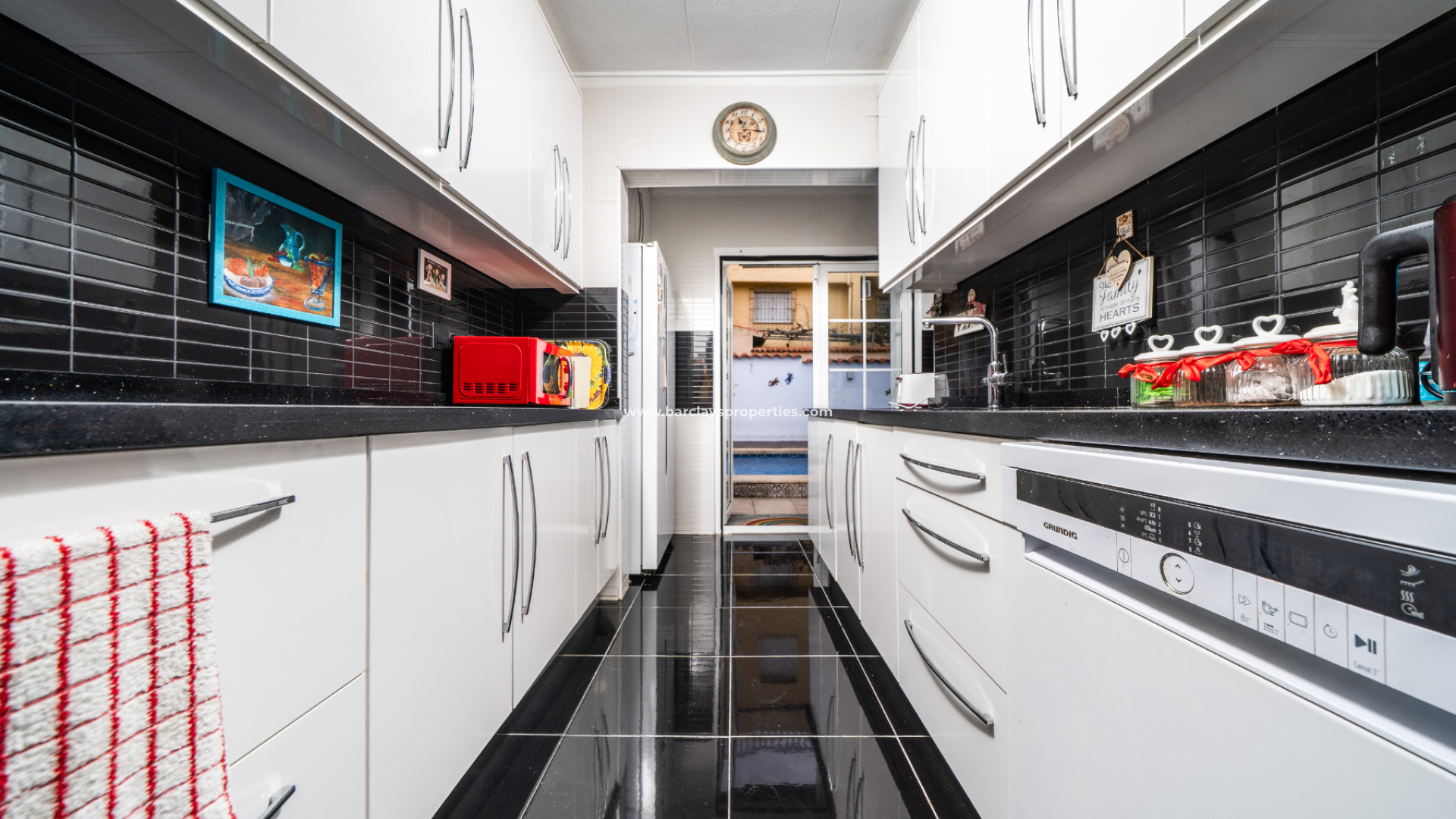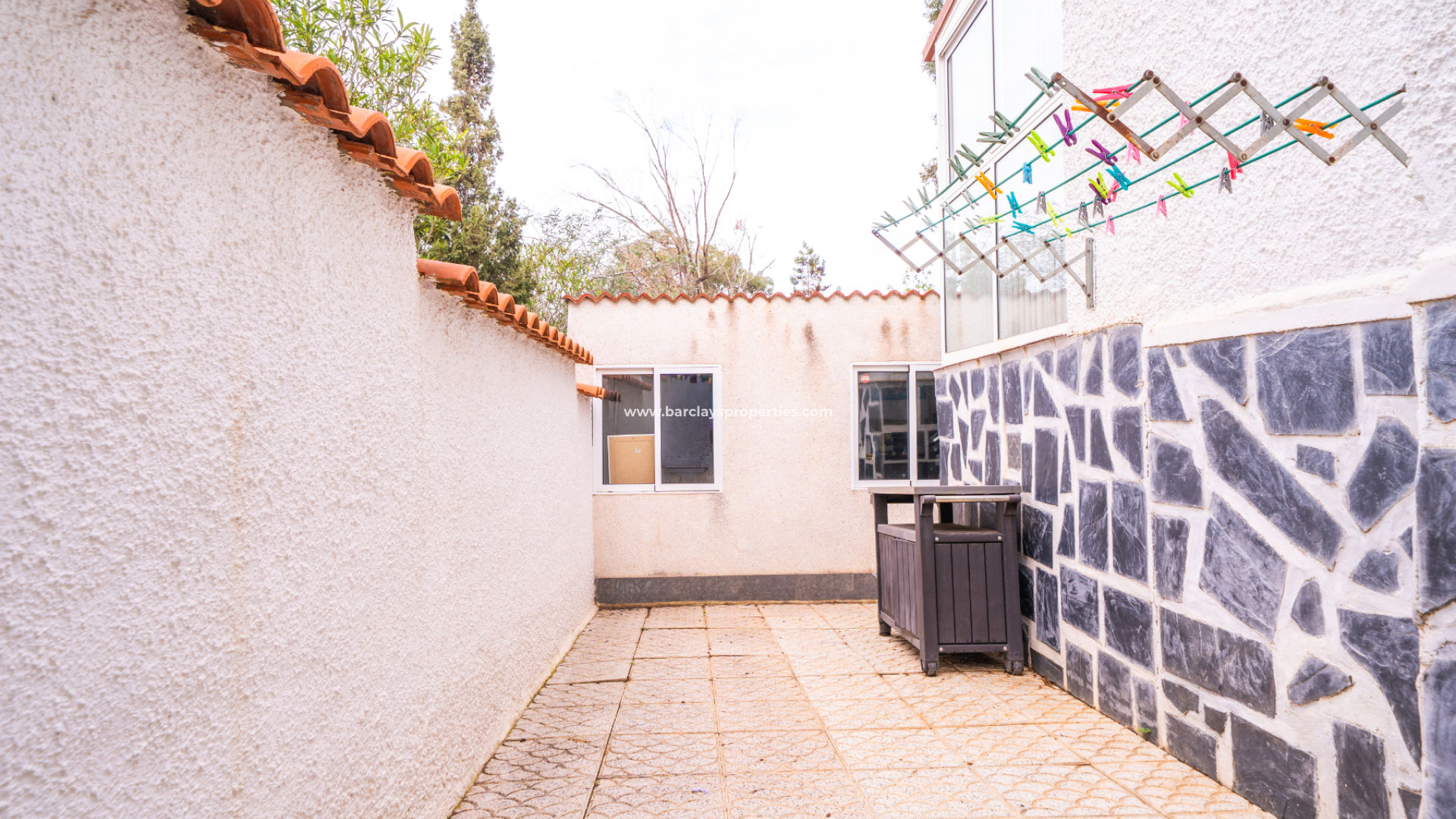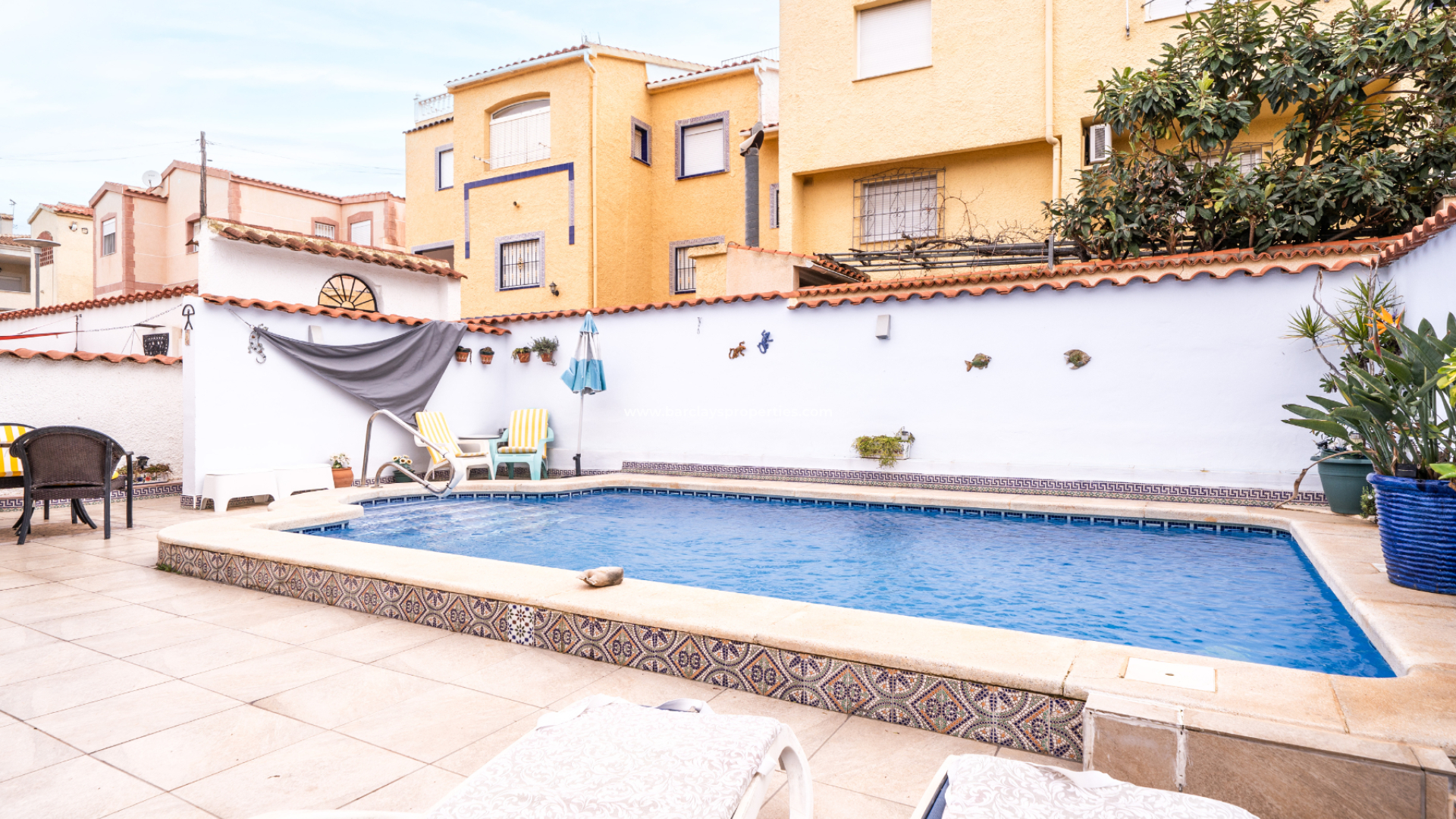 Situé dans une impasse tranquille de l'urbanisation prisée de La Marina, ➡️ ce modèle Lola individuel est implanté sur un grand terrain d'angle de 265m2 et se trouve à seulement cinq minutes à pied des commodités locales, ce qui le rend idéal pour une résidence permanente ou des vacances. Située à seulement 5-10 minutes à pied de la zone commerciale populaire « Plaza Consum » et à 5 minutes en voiture de la plage de sable locale « Playa de La Marina », cette propriété est parfaitement placée sur la côte.