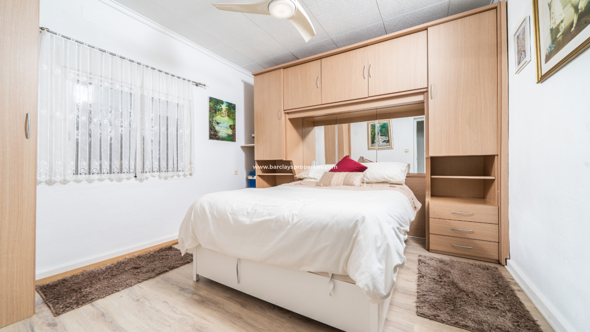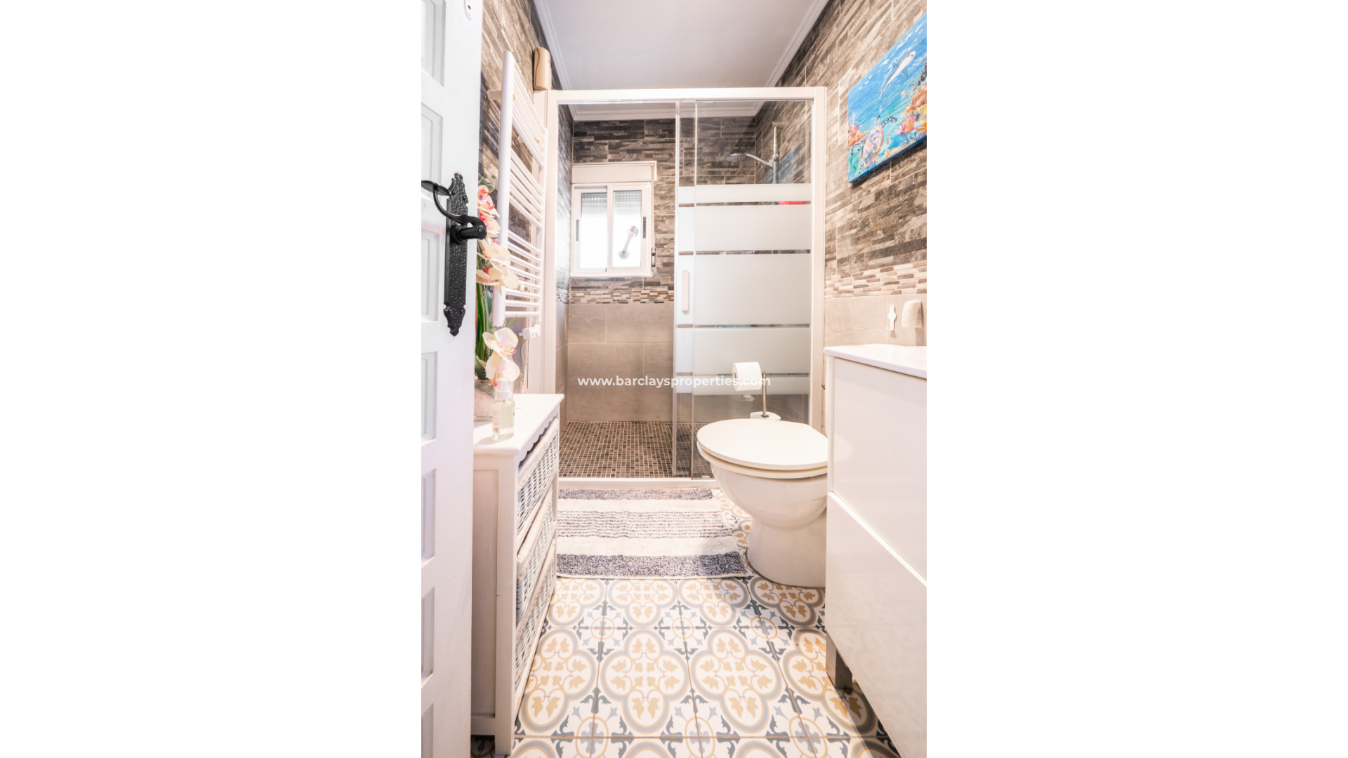 Il y a trois chambres au total. La chambre principale est une chambre double spacieuse avec ventilateur de plafond et climatisation. La deuxième chambre est une chambre avec deux lits simples et un ventilateur de plafond, tandis que la troisième chambre est une autre chambre double, bénéficiant également de la climatisation. La propriété dispose de deux salles de bains, toutes deux bien aménagées. L'une est une salle d'eau à l'italienne avec WC et meuble-lavabo, et la seconde offre une douche mur à mur avec paroi, WC, meuble-lavabo et un sèche-serviettes électrique.